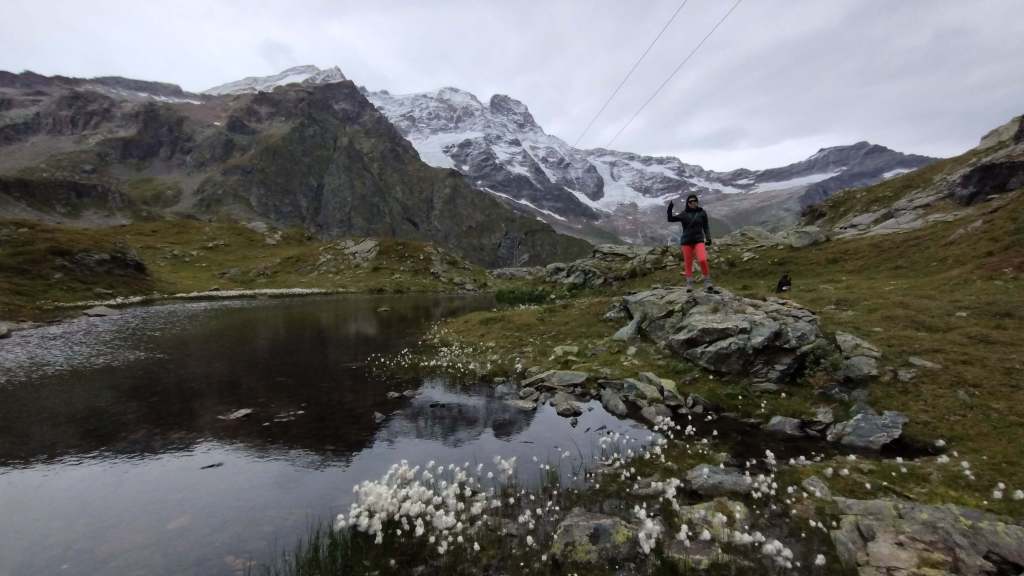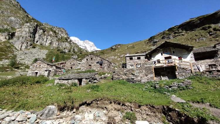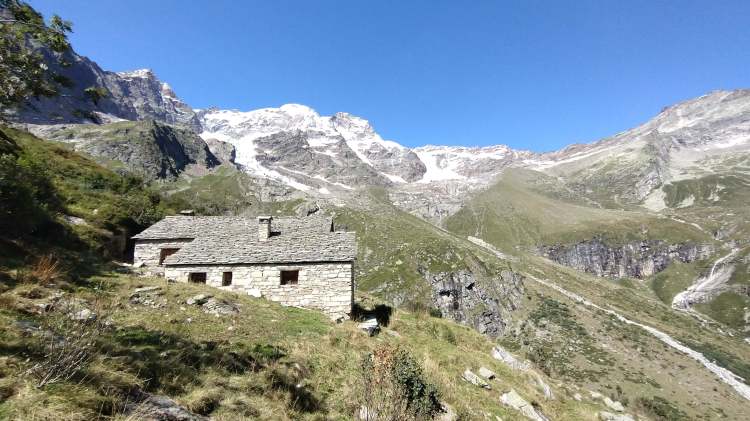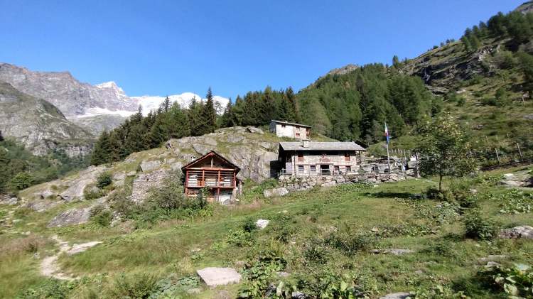 Oggi organizziamo un percorso tranquillo e non particolarmente impegnativo. Partiamo da Wold (1250 m) e saliamo alla Cascata dell’ Acqua Bianca (1500 m), alle Caldaie del Sesia e al Rifugio Fum Bitz (1590 m). Passando nei pressi del Rifugio Pastore, prendiamo il sentiero a destra (indicato dai cartelli) per salire al Rifugio Crespi Calderini (1836 m). Pausa panino e poi saliamo lungo la cresta erbosa che termina all’ Alpe Fondecco (2100 m) con strepitosa vista sul Monte Rosa. Foto su foto e poi torniamo al Rifugio Crespi Calderini (1836 m) e, doppiando il percorso della salita, torniamo a Wold (1250 m).