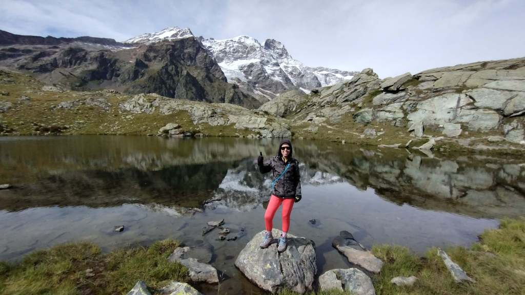 Oggi siamo ad Alagna Valsesia. Partiamo da Wold, raggiungiamo il centro di Alagna e iniziamo a salire lungo la trattorabile, con pendenza costante, fino all’ Alpe Piane e all’ Alpe Vittine per poi continuare fino al Rifugio Città di Mortara (Grande Halte) (1945 m). Proseguiamo fino alla località Pianalunga e poi alla Bocchetta delle Pisse (2400 m). Qui inizia il giro dei bellissimi Laghi del Corno (2370 m / 2420 m)… con panorama spettacolare sul Monte Rosa! Pausa panino e poi saliamo sulla cresta di alcuni speroni rocciosi stupendi senza nome… per me i “Gendarmi del Corno” e, proseguendo sulla cresta ai piedi del Corno d’ Olen, arriviamo fino alla “Finestra di roccia” (2450 m). Torniamo alla Bocchetta delle Pisse (2400 m) e iniziamo la discesa, doppiando il percorso della salita, fino a tornare a Wold (1250 m).