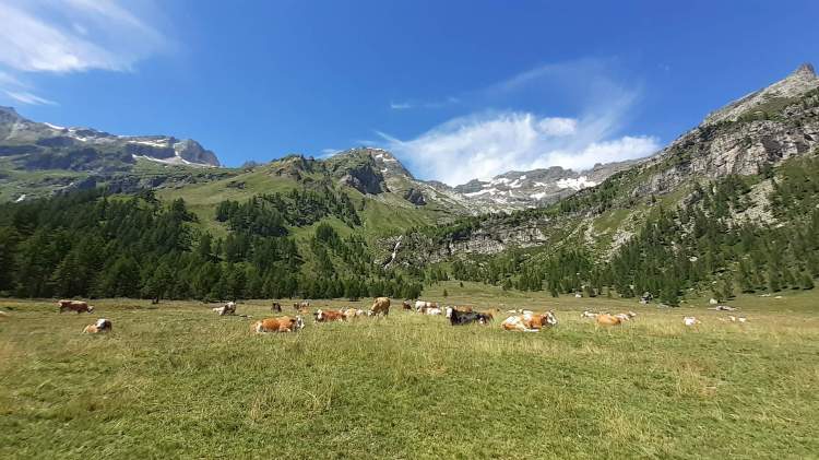 Oggi giornata extra in montagna! Bellissimo giro ad anello all’ Alpe Veglia. Arriviamo al parcheggio di Pontecampo (1320 m) abbastanza presto; superiamo il ponte : andando dritti si inizia a salire lungo la mulattiera (gippabile) ampia e comoda; prendendo a destra si sale in “direttissima” per la prima parte (più breve, ma più ripida e impegnativa). Decidiamo per la “direttissima” e, dopo un po’, incrociamo la gippabile che, con diversi tornanti con pendenza costante, ci porta fino alla staccionata dell’ ingresso dell’ Alpe Veglia. Proseguiamo e raggiungiamo il ponte in muratura, sopra un torrente, il rio Cianciavero (guardate a sinistra…. eccolo, il meraviglioso Monte Leone!) In pochi minuti siamo anche alla Piana dell’ Alpe Veglia (1730 m)… prendiamo a sinistra verso il piccolo abitato di Cianciavero (1753 m); poi, seguendo le indicazioni e su sentiero stretto e con alcuni tratti disconnesso ma fattibile, anche verso le Marmitte (1760 m) (dopo circa 20 minuti). Il paesaggio è davvero eccezionale! Foto, video… bellissimo! Torniamo a Cianciavero e, seguendo le indicazioni, prendiamo a sinistra dell’ abitato, percorrendo un sentiero nel bosco un po’ più impegnativo. Ma eccoci finalmente al Lago delle Streghe (1830 m) che è di una bellezza rara… sembra di essere al centro di una favola! Foto ad ogni angolo e ad ogni scorcio! Dopo aver percorso tutto il lato destro del lago, seguiamo l’ indicazione per il Lago delle Fate. Prima di raggiungerlo, si arriva ad un altro specchio d’ acqua molto piccolo…. a me piace chiamarlo “Lago dei Maghi”! Poco distante, ecco anche il bellissimo Lago delle Fate, immerso in una rigogliosa vegetazione. Proseguiamo quasi subito su sentiero sempre più comodo, fino a tornare alla fine della Piana di Veglia, in corrispondenza di alcune pietre e speroni rocciosi, dove ci fermiamo a mangiare. Riprendiamo il cammino in prossimità di un piccolo ponte lì vicino, lo superiamo e ci ritroviamo nella località “Isola” (1745 m), sede di pascoli e, subito dopo, nella località “Cornù”, con diverse abitazioni molto caratteristiche! Ma il giro non finisce qui! Camminiamo sempre su comoda sterrata fino a raggiungere la spettacolare Cascata della Frua…. con una potenza d’ acqua da rimanere affascinati! Ci avviciniamo per scattare foto e girare qualche video. Scendendo, vediamo il cartello con le indicazioni per “La Balma” e decidiamo di completare il nostro giro qui. La Balma (1770 m) è un alpeggio molto grande e piuttosto particolare… immerso tra le rocce e le pietre (la più grande è “spezzata” in due e presenta una croce sulla sommità). Giriamo un po’ cercando di fotografare più panorami possibili e poi scendiamo; attraversiamo il grosso ponte (con vista superlativa su tutto il panorama!) e poi ci ritroviamo sul ponte del rio Cianciavero e poi alla staccionata d’ ingresso dell’ Alpe Veglia, senza passare dalla Piana di Veglia. Ripercorriamo tutta la comoda gippabile, senza “tagliare” per la “direttissima”, e torniamo al parcheggio di Pontecampo (1320 m). Giornata spettacolare in un ambiente che è davvero straordinario e che riserva sempre meravigliose sorprese e tanta bellezza, armonia e serenità da “portare a casa” con noi.