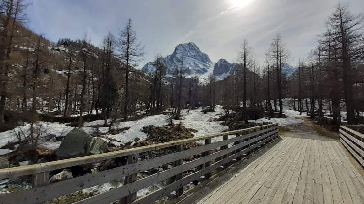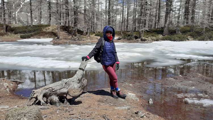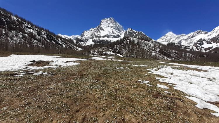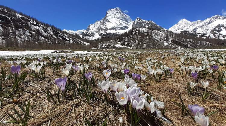 “La neve in montagna sa sempre come salutare dopo l’ inverno… lasciando lo spettacolo dei laghi in scongelamento e quel morbido ‘tappeto’ di bianchissimi crocus”.