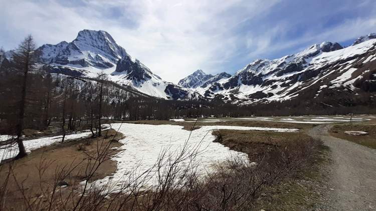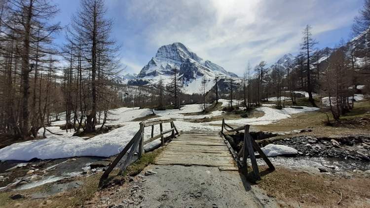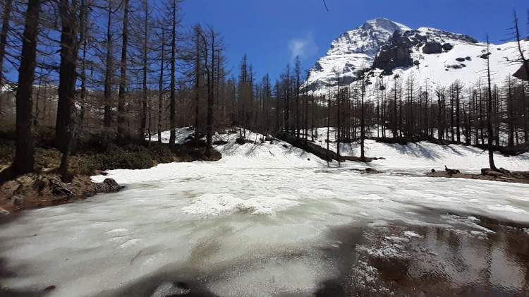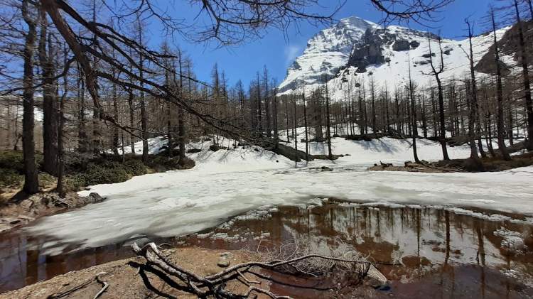 Oggi torniamo in un luogo bellissimo, che a me piace sempre tantissimo… l’ Alpe Veglia! Parcheggiamo il mattino a Pontecampo (1320 m) e da lì iniziamo a salire. Il primo tratto saliamo lungo la ‘direttissima’ a destra subito dopo il piccolo ponte; poi continuiamo seguendo gli ampi e comodi tornanti che ci portano prima alla Cappella del Groppallo e poi all’ ingresso della Piana dell’ Alpe Veglia. Il percorso è libero da neve… solo un paio di brevi passaggi su neve percorribili senza problemi. Eccoci finalmente al piccolo ponte sul rio Cianciavero con superlativa vista sul Monte Leone! Ancora pochi passi e arriviamo alla bellissima Piana dell’ Alpe Veglia (1730 m). Qui la neve, già quasi completamente sciolta, ha lasciato sul terreno un manto bianchissimo di migliaia di crocus!… foto su foto e poi percorriamo la sterrata al centro della Piana che ci porta fino ad alcune costruzioni, dove facciamo una breve pausa pranzo. Da lì prendiamo a sinistra… direzione Laghi. Il percorso, di solito facile in estate, è reso più impegnativo dalla presenza di neve in fase di scioglimento (morbida e “acquosa”) e non è sempre visibile nè segnato. Proseguiamo seguendo una debole traccia e arriviamo prima al Lago delle Fate… sorpresa spettacolare… è in scongelamento e l’ immagine che ne deriva è davvero grandiosa! Non riesco nemmeno a contare gli scatti che faccio, poi raggiungiamo il vicinissimo e piccolo specchio d’ acqua (non ha precisamente un nome… per me è il Lago dei Maghi) e, salendo ancora un po’, eccoci al più conosciuto Lago delle Streghe (1830 m)… bello come sempre! Pausa un po’ più lunga e poi scendiamo. Ma non finisce qui… oltrepassiamo il ponte e siamo alla località Isola (1745 m) e alla località Cornù. Il panorama è stupendo… con il Monte Leone che ci accompagna ancora in tutto il cammino. Sentiamo già il suono della Cascata della Frua… oggi è davvero potente e carica di acqua! Le ultime foto sul ponte di legno alla fine della sterrata e poi salutiamo l’ Alpe Veglia. Passiamo di nuovo sul ponte sul rio Cianciavero, dove salutiamo il Monte Leone e ci apprestiamo a scendere. Seguiamo tutti i tornanti della gippabile ampi e comodi e torniamo alla nostra macchina a Pontecampo (1320 m). Giornata stupenda in un luogo che riserva e mi regala sempre bellissime emozioni.