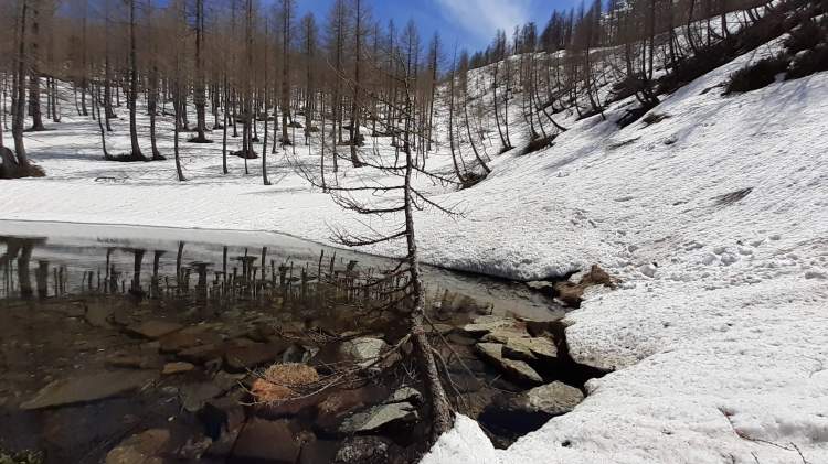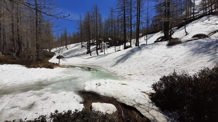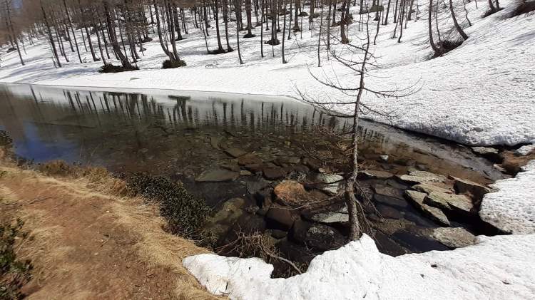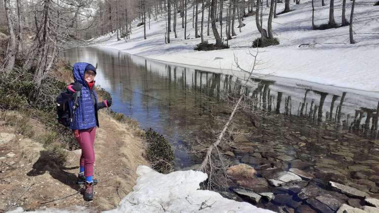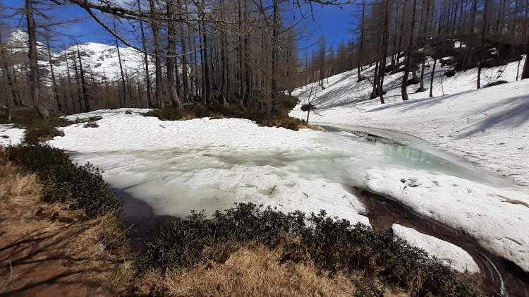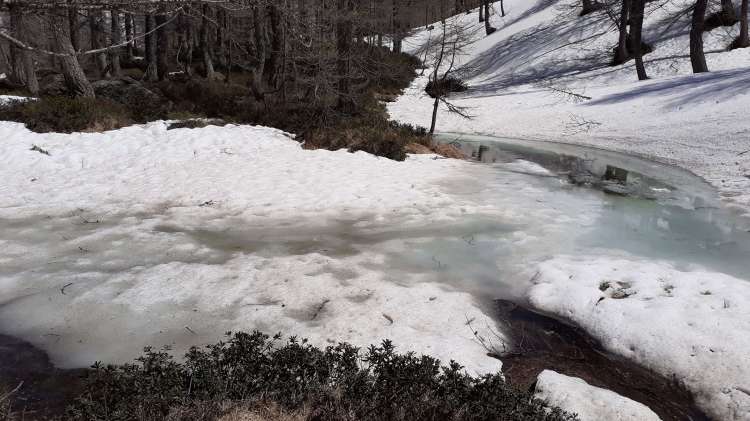 ALTITUDINE DI PARTENZA 1320 m (Pontecampo) ALTITUDINE MASSIMA 1830 m (Lago delle Streghe) DISLIVELLO 510 m (solo in salita) DIFFICOLTA’ facile (facile/media solo la salita ai Laghi per la presenza di neve a tratti in scioglimento e “acquosa” che porta a sprofondare lungo il tratto di percorso poco segnato e non sempre visibile) LUNGHEZZA DEL PERCORSO 14,5 km circa (tutto il percorso, andata e ritorno) (tenete presente che i pedometri “perdono un po’” in salita e in discesa; io aggiungo il 10% circa al conteggio finale).