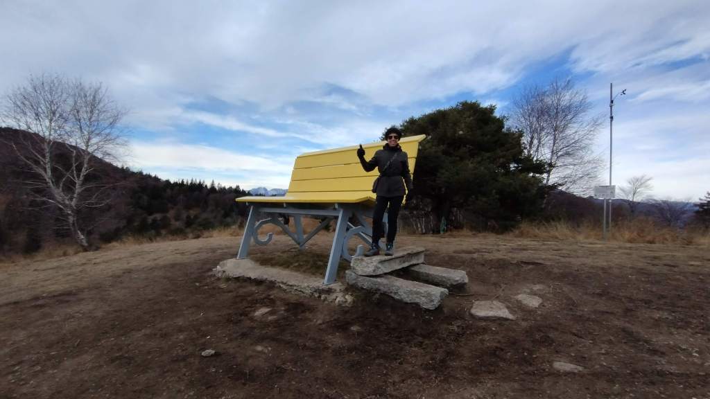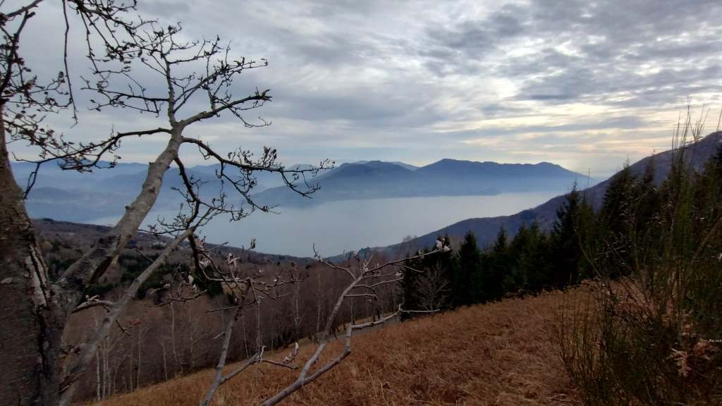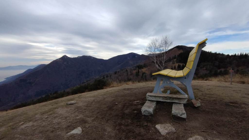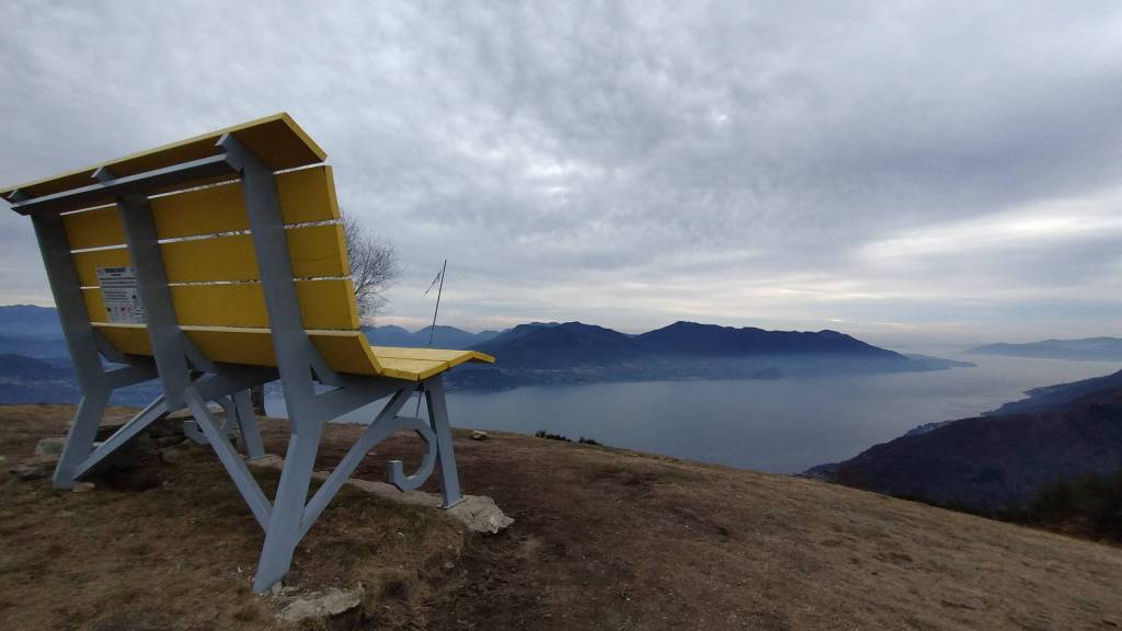 Oggi siamo nella zona dell’ Alto Verbano. Partiamo poco sopra la frazione di Cheglio (1020 m) e, seguendo un ampio e comodo sentiero, raggiungiamo la vetta del Monte Carza (1120 m) e poi la Big Bench (Panchina gigante). Proseguiamo poi verso la seconda e piccola cima, la Cima Ologno (1130 m), dove cerchiamo un posticino per mangiare il panino. Continuiamo verso la Vetta del Monte Pian Bello (1325 m) e poi la Cima Forcola (1305 m) (entrambe con un panorama piuttosto chiuso dagli alberi). Infine chiudiamo l’ anello scendendo dalla parte opposta e andando ad intercettare la strada che ci riporta al parcheggio (1020 m). Riprendiamo la macchina. Breve sosta alla cittadina di Trarego e una bella camminata a Cannero Riviera completano la giornata.
