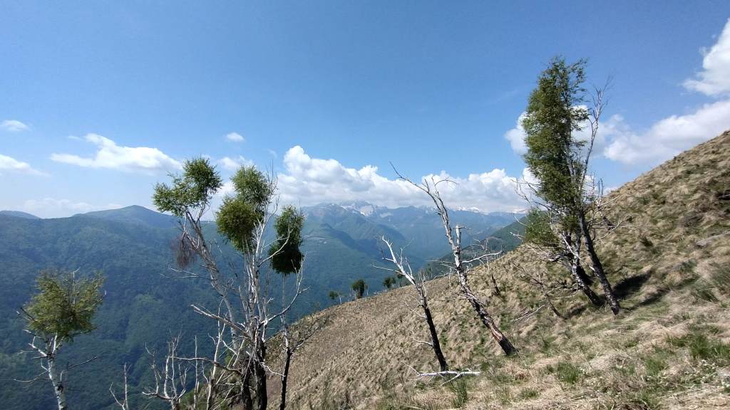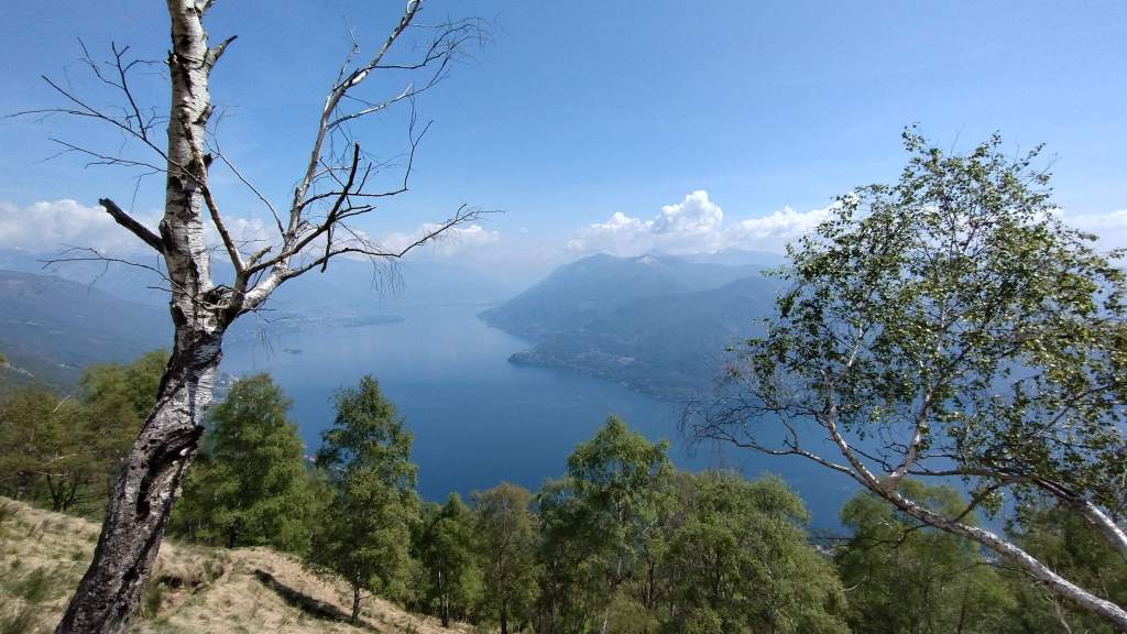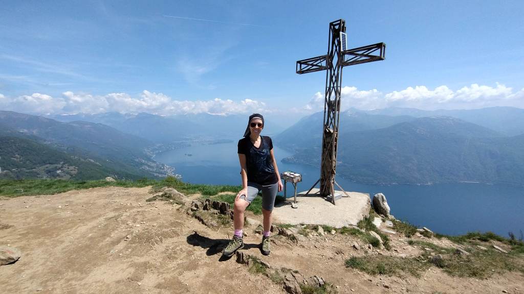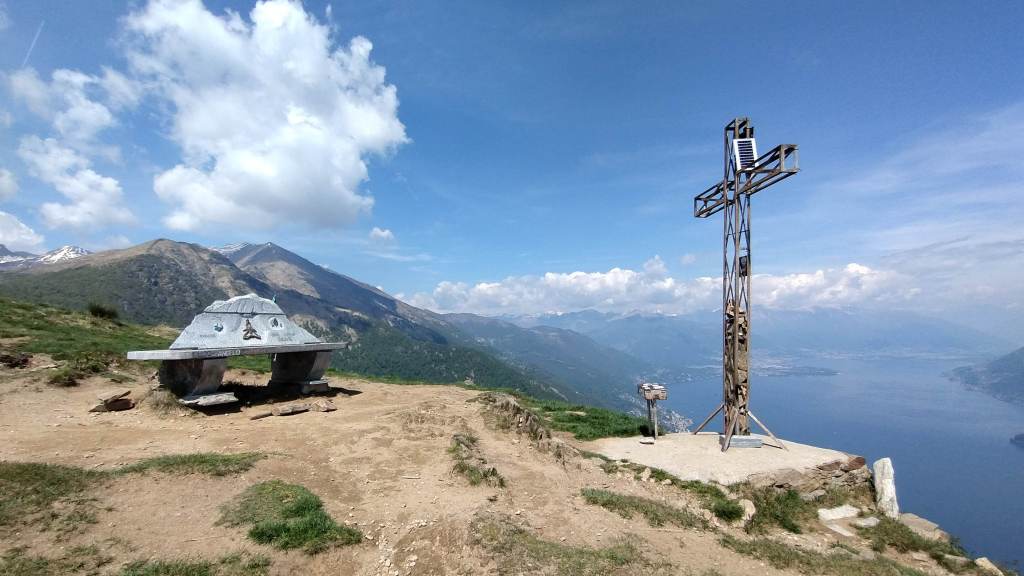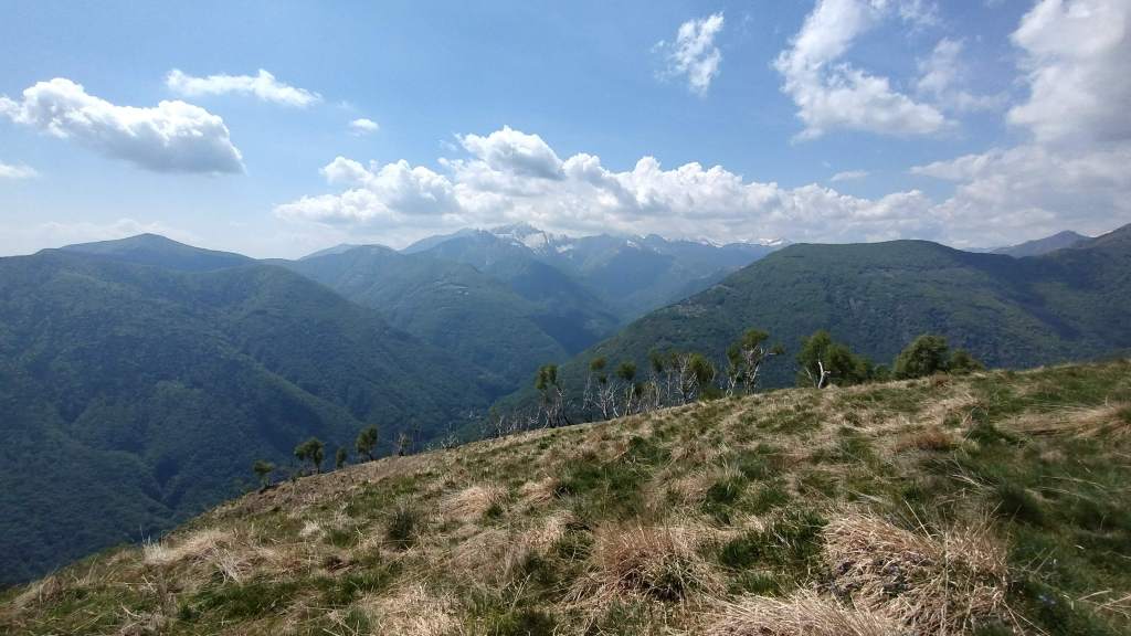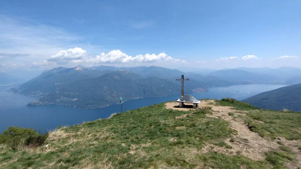 Oggi siamo in Val Cannobina, precisamente a Sant’ Agata, al di sopra di Cannobio, sul Lago Maggiore. Da Sant’ Agata (450 m) raggiungiamo la Chiesetta di San Luca (690 m) e poi, passando vicino ai resti di vecchie costruzioni di pietra, andiamo ad intercettare il comodo sentiero (piuttosto ripido!) che sale a tornanti prima alla località Monti Marcalone (870 m) e poi ai piedi del Monte Giove. Ultimo strappo un po’ ripido e disconnesso ed eccoci sulla Vetta del Monte Giove (1300 m)… panorama spettacolare!! Pausa panino più lunga del solito (al sole si sta benissimo!) e poi scendiamo dalla parte opposta, verso l’ Alpe Rombiago che, però, vediamo solo dall’ alto. Proseguiamo alle pendici del Monte Giove e andiamo a prendere di nuovo il sentiero a tornanti della salita ma, dopo la località Monti Marcalone (870 m), prendiamo a sinistra e raggiungiamo le due piccole frazioni di Cinzago (500 m) e Socragno (470 m). Piccola sosta fotografica e poi torniamo a Sant’ Agata (450 m). Bellissima giornata in un ambiente sempre stupendo!