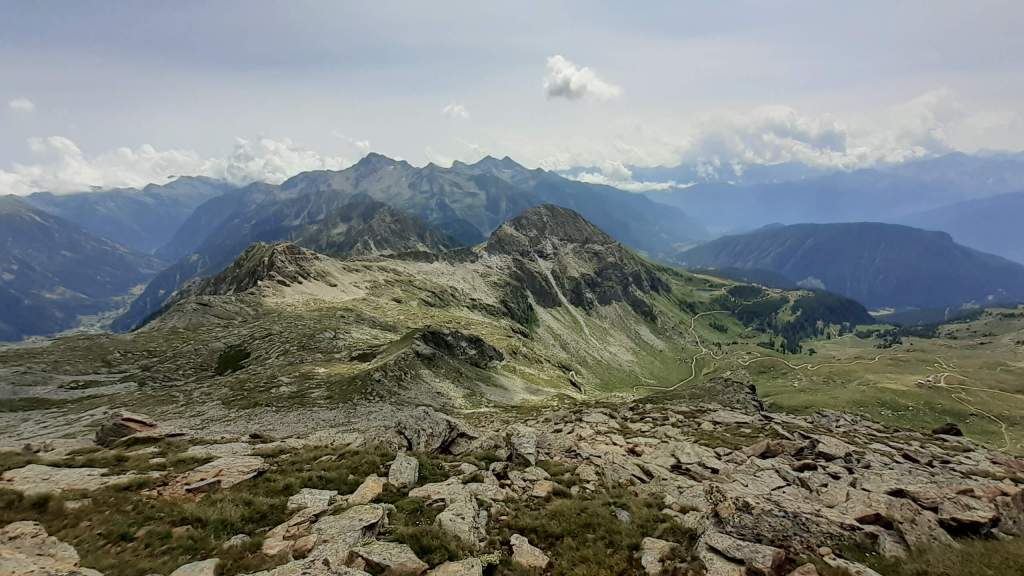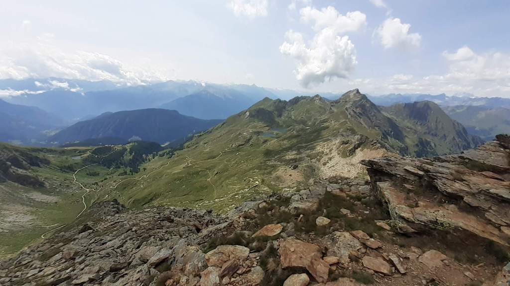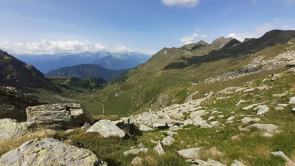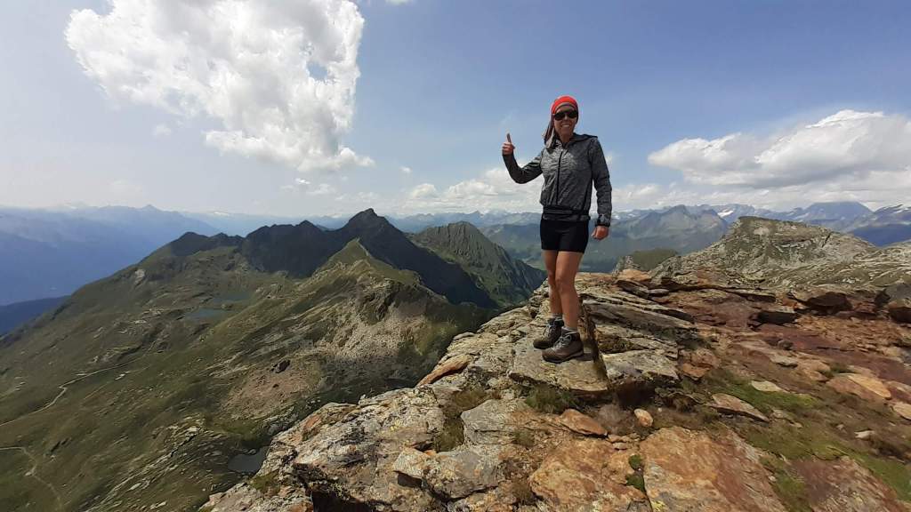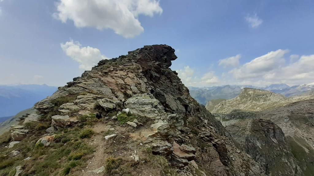 Oggi siamo in Val d’ Aosta, nella meravigliosa Val d’ Ayas. Partamo da Estoul (1840 m) e, su percorso mai difficile e con pendenza mai accentuata, arriviamo al Rifugio Arp (2440 m). Da qui, seguendo le indicazioni “Punta Valfredda”, saliamo ancora e raggiungiamo i bellissimi Laghetti di Valnera (2630 m)… foto su foto e poi proseguiamo verso il Colle Valnera (2676 m). Si tratta di una bocchetta molto ampia e con strepitosa vista su valli e montagne. Qui mangiamo il panino e poi proseguiamo portandoci sulla sinistra del Colle Valnera…. direzione Punta Valfredda. Il percorso non è semplice e inizia subito con un passaggio su pietre, massi e sassi non facili… scegliamo la via migliore e ci portiamo sul sentiero. Da qui il percorso alterna tratti terrosi a tratti pietrosi e sassosi (diversi tratti sono piuttosto esposti e in altri serve l ‘aiuto delle mani). Calma… cautela… attenzione… e siamo in vetta alla Punta Valfredda (2945 m)!!! Ed è uno spettacolo! Il panorama è decisamente infinito e bellissimo! Foto su foto… tanta ammirazione e poi iniziamo la discesa. Stessa cautela ma evitiamo l’ ultimo passaggio su pietre e massi, improvvisando una discesa su erba ripida, che ci porta al Lago di Valnera Superiore. Da qui in breve torniamo al Colle Valnera (2676 m), ai Laghetti di Valnera (2630 m) e poi al Rifugio Arp (2440 m). Piccola pausa e poi giù, fino a Estoul (1840 m). Giornata spettacolare in un ambiente unico!