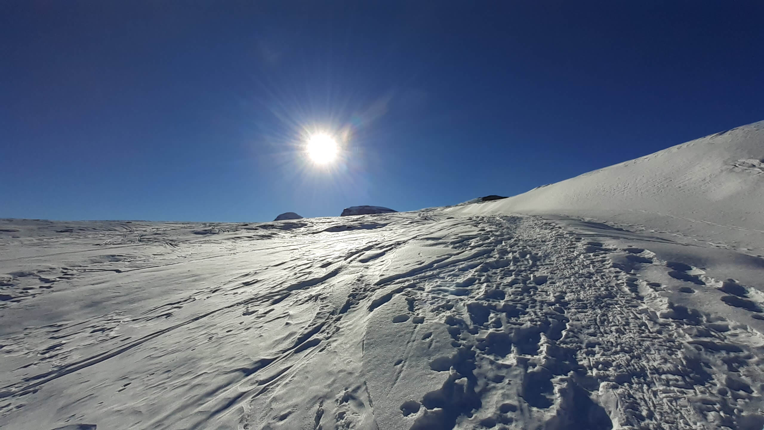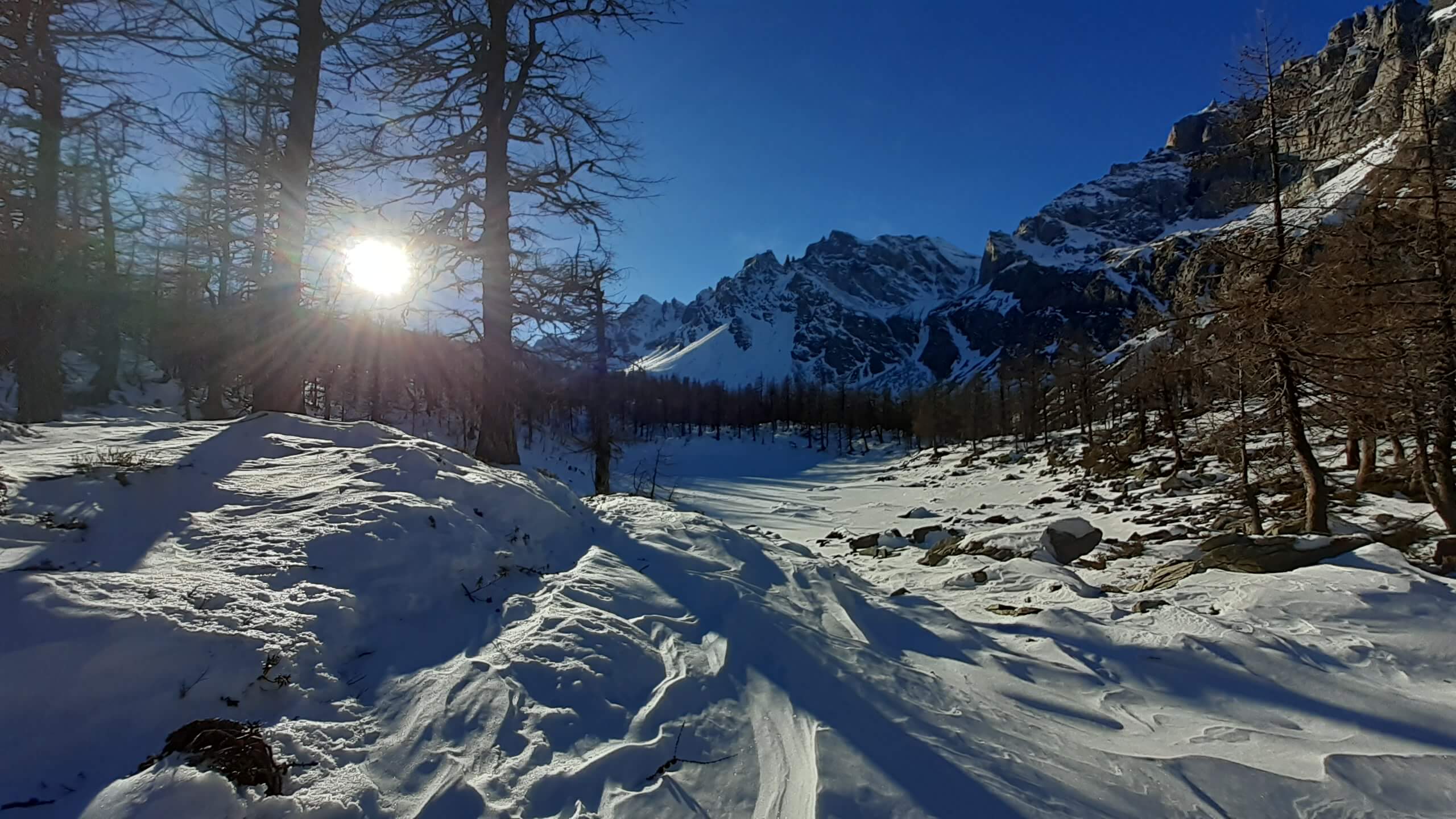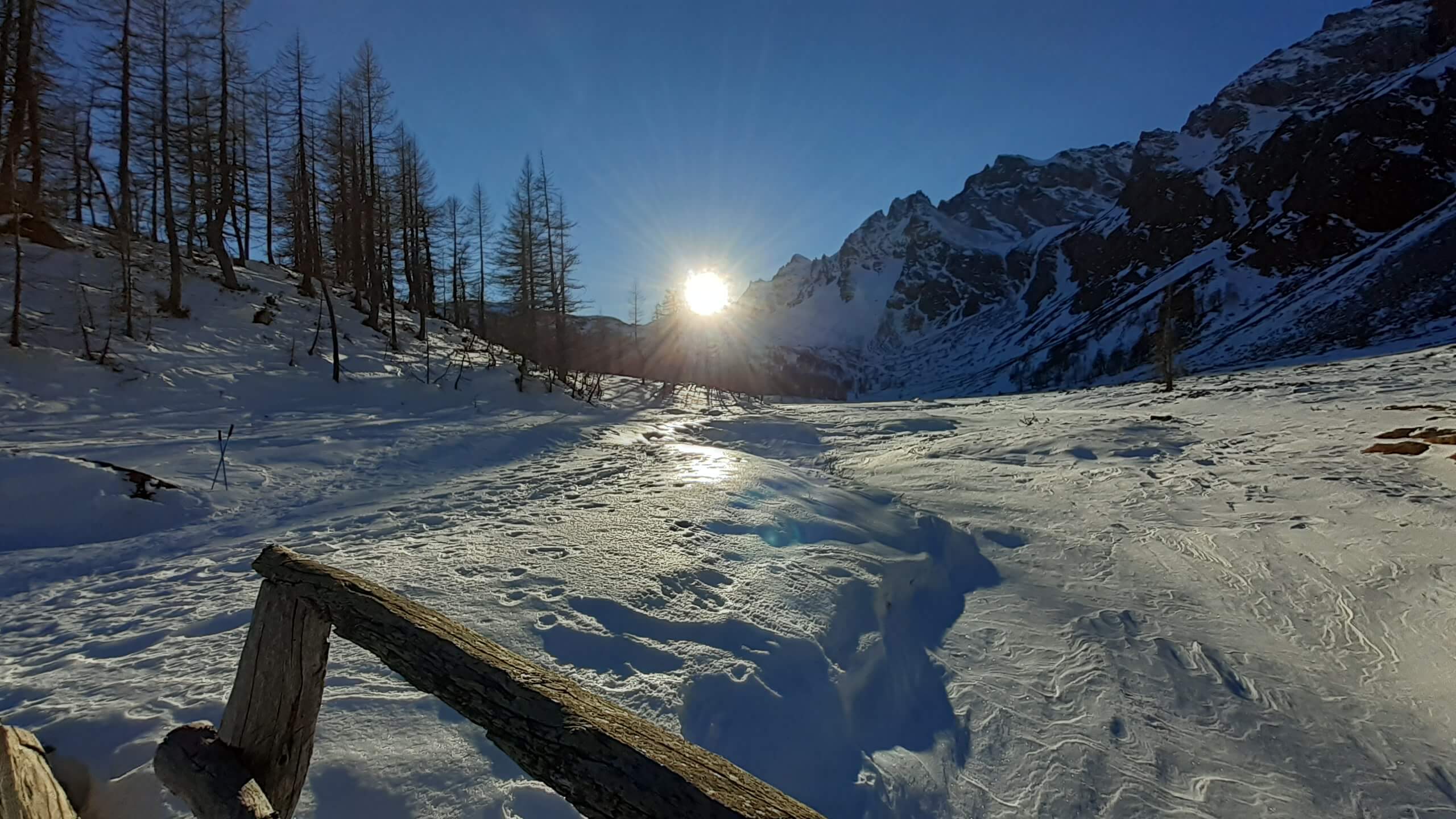 Il bianco della neve e la luce del sole che si riflette creando “puntini di diamante” sulla sua superficie modellata dalle onde del vento… non c’ è niente di più bello che camminare d’ inverno in questa infinita distesa di bellezza.