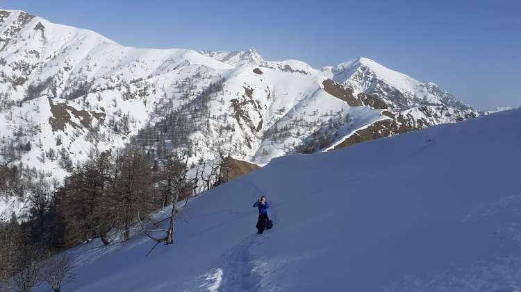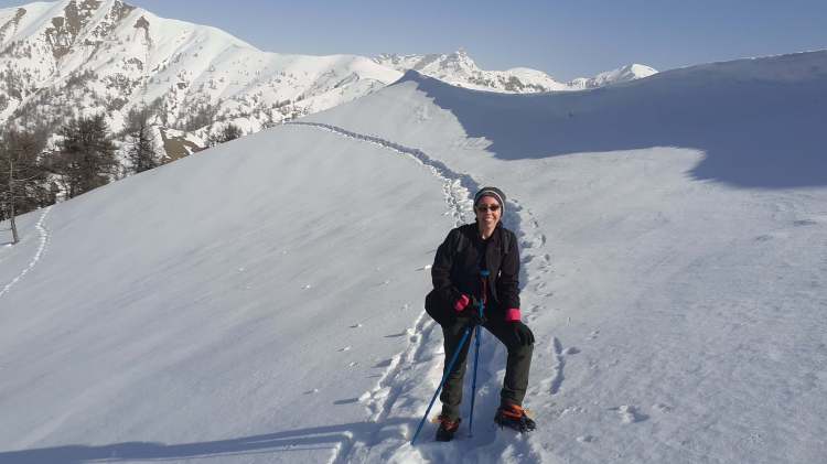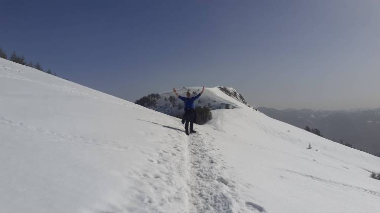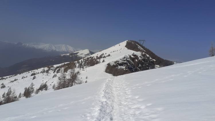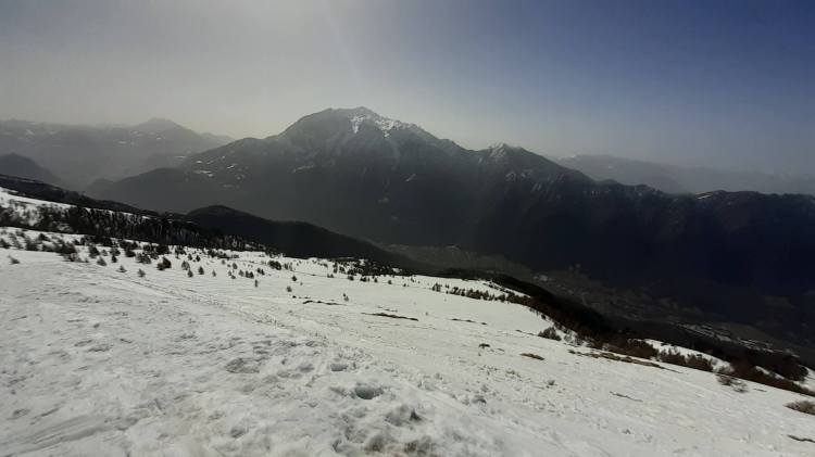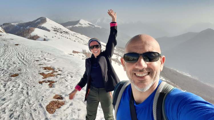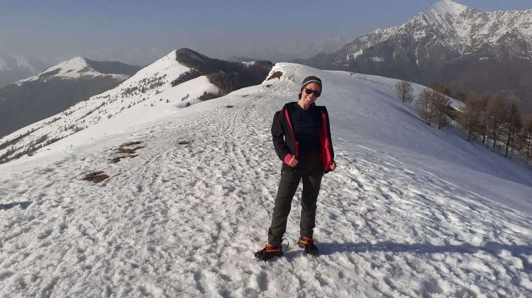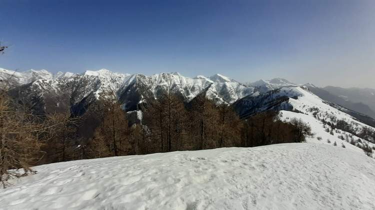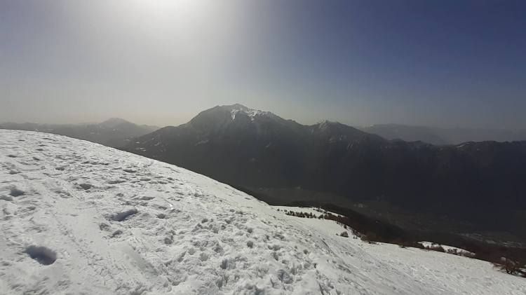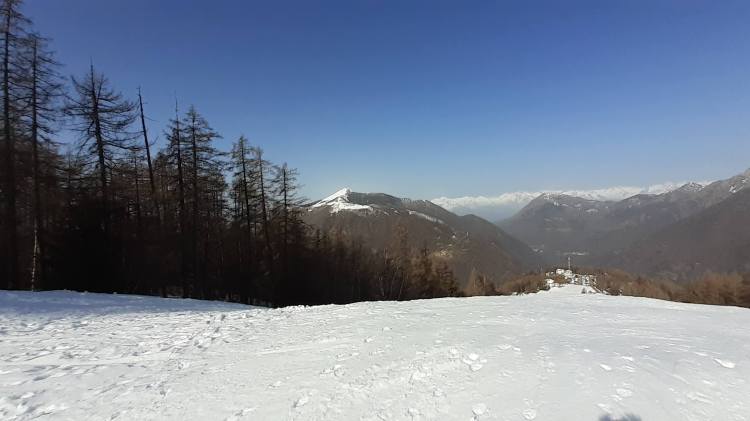 Oggi giornata extra in montagna!! Decidiamo di tornare in Valsassina, in un luogo al quale avevamo dovuto rinunciare, qualche settimana fa, per l’ affollamento e il parcheggio strapieno. Arriviamo all’ Alpe di Paglio (1400 m) e, calzati i ramponi, ci portiamo sotto la pista da sci (vuota e con gli impianti fermi e chiusi). Saliamo su ripido pendio che, in prossimità della Cima del Laghetto, diventa più dolce. Ancora un piccolo tratto e siamo alla Cima del Laghetto (1730 m)… piccola pausa per “riprendere fiato” e poi si continua verso il Cimone di Margno. Il panorama è molto bello, anche se “rovinato” in parte dalla presenza dei tralicci. Proseguiamo e arriviamo al Cimone di Margno (1800 m)… brevissima sosta e poi scendiamo verso Cantone Grande (1740 m), una piccola altura dove ci fermiamo a mangiare. Pausa pranzo, foto su foto… non ci sono più i tralicci che “disturbano” il paesaggio! Continuiamo verso il Larice Bruciato (1708 m), in prossimità del quale è posizionato un piccolo monumento, dove non ci fermiamo… un po’ troppa gente, ci fermeremo al ritorno. Saliamo, con ripidità costante, verso la Cima di Olino (1780 m) e qui si apre un panorama eccezionale! La vista della Grigna, che sembra quasi di toccare, apre la visuale a un alternarsi di vette, cime, pendii… semplicemente uno spettacolo! Qui il nostro percorso si dovrebbe fermare, ma siamo attratti dalla cresta di collegamento che procede oltre la Cima di Olino e che mostra un passaggio sotto il “filo di cresta” davvero bellissimo, ma molto esposto e che può anche risultare pericoloso in alcuni punti. Decidiamo di percorrerne almeno un tratto e, con molta attenzione e prudenza, procediamo per circa 400 m…. stupendo, bellissimo, emozionante! Torniamo poi alla Cima di Olino (1780 m)… pausa e decine e decine di altre foto! E’ arrivato il momento di salutare questo posto incredibilmente bello e scendiamo di nuovo in direzione del Larice Bruciato (1708 m). Da qui scegliamo di proseguire verso Pian delle Betulle per chiudere così un bellissimo percorso ad anello. La discesa è piuttosto tranquilla, su comodo sentiero quasi sempre ampio che ci porta a Pian delle Betulle (1470 m). Ancora qualche foto e poi raggiungiamo l’ Alpe di Paglio (1400 m) e la nostra macchina. Emozione, soddisfazione, gioia… un’ altra meravigliosa giornata in montagna!
