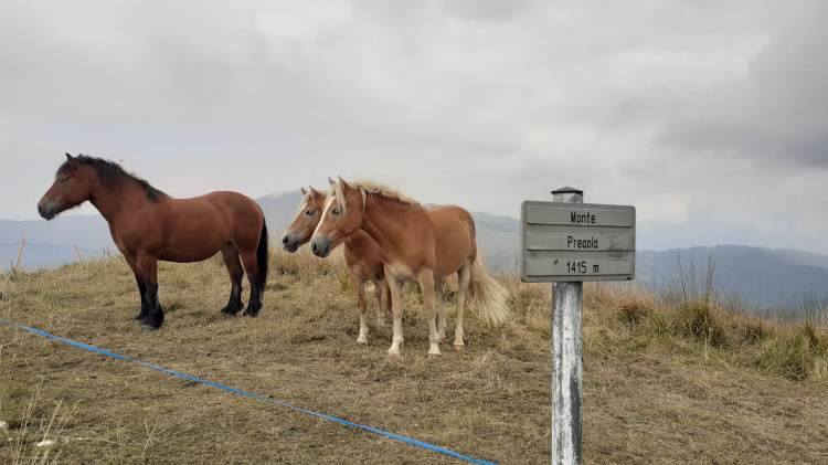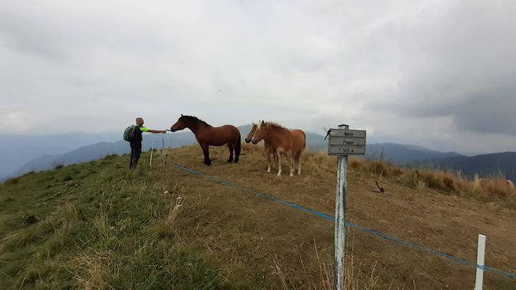 Oggi il tempo non è molto bello, quindi scegliamo un percorso dove il meteo e le webcam sono un po’ più “promettenti”. Rimaniamo in Lombardia, precisamente nel Triangolo Lariano, destinazione Monte Palanzone; arriviamo alla Colma di Sormano (1125 m) dove parcheggiamo. Il percorso parte dietro il cartello della Colma (quello con tanti adesivi attaccati!). Proseguiamo su sentiero comodo e ampio fino alla Colma di Caglio (1129 m) e da qui proseguiamo dritti… si inizia a salire, ma tranquillamente. Bisogna solo prestare attenzione al fondo del sentiero, adesso più ripido e stretto, che presenta tratti di fango compatto e scivoloso. Passiamo all’ interno del bosco e, quando il panorama si apre, prendiamo a sinistra… prima piccola altura la Braga di Cavallo (1350 m), seconda piccola altura il Monte Croce (1350 m). Raggiungiamo la Bocchetta di Caglio (1290 m) (P.S. il cartello riporta un’ altitudine di 1124 m, ma è “cancellata”, perché l’ altitudine corretta è 1290 m). Dal Monte Croce proseguiamo lungo la dorsale per cresta… il Monte Palanzone è sempre visibile (almeno quando le nuvole non lo coprono!). Passiamo per il Monte Bul (1410 m) ma senza fermarci… solo qualche foto e poi proseguiamo verso il Monte Palanzone…. siamo in vetta (1435 m) (un po’ troppo affollata!) Non ci fermiamo e decidiamo di scendere al Rifugio Riella. Il percorso è abbastanza ripido e la presenza dello strato di fango “compatto e scivoloso” ci rallenta abbastanza. Arriviamo al Rifugio Riella (1280 m)… anche qui parecchia gente! Così proseguiamo sul sentiero, adesso ampio e comodo, fino alla Grotta Guglielmo (una piccola grotta chiusa, per sicurezza, da un cancello in ferro) e poi al Cippo Marelli e alla Bocchetta di Nesso (1300 m). Il tempo sembra mantenere e, quindi, decidiamo di proseguire verso altre due vette… arriviamo quindi alla Bocchetta di Sciff (1260 m), dove facciamo una veloce pausa pranzo per poi proseguire fino alla Bocchetta di Lavignacc (1330 m). Da qui saliamo a destra fino alla vetta del Monte Preaola (1415 m); scendiamo ancora alla Bocchetta di Lavignacc (1330 m); poi saliamo a sinistra sul Monte di Palanzo (1390 m) per poi tornare di nuovo alla Bocchetta di Lavignacc (1330 m). Torniamo verso la Bocchetta di Sciff (1260 m) e poi, passando vicino alla Bocchetta di Nesso (1300 m), proseguiamo su ampio sentiero fino alla Bocchetta di Caglio (1290 m), sotto il Monte Croce (1350 m). Da qui intercettiamo lo stesso percorso dell’ andata… torniamo quindi alla Braga di Cavallo (1350 m), poi giù fino alla Colma di Caglio (1129 m) e, infine, torniamo alla Colma di Sormano (1125 m). Giornata iniziata “così così” a causa del brutto tempo… poi la montagna ha saputo come elevare il mio umore ad un livello piuttosto alto e a regalarmi un gran bel percorso… costituito dall’ unione di due percorsi, che ho sempre fatto singolarmente!