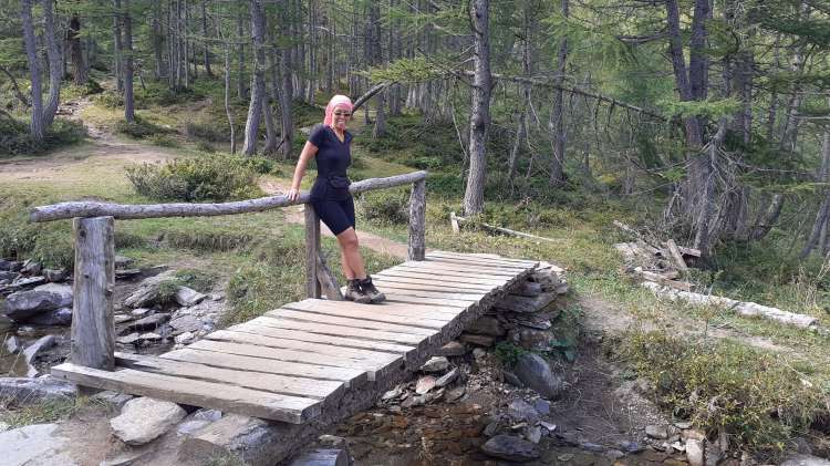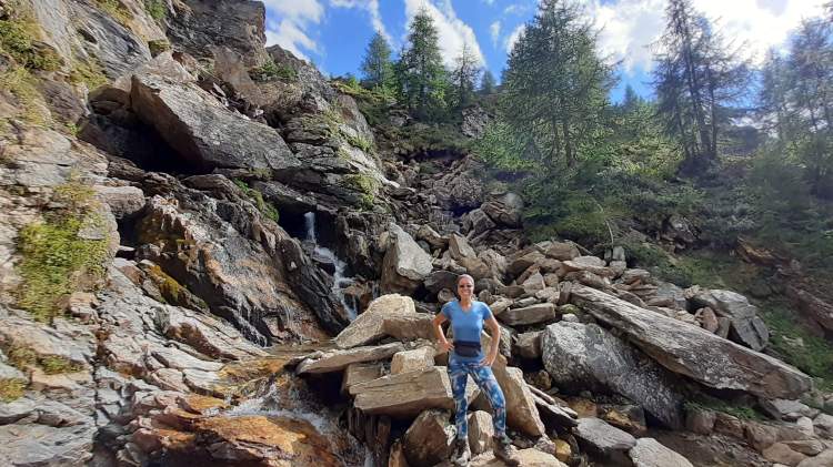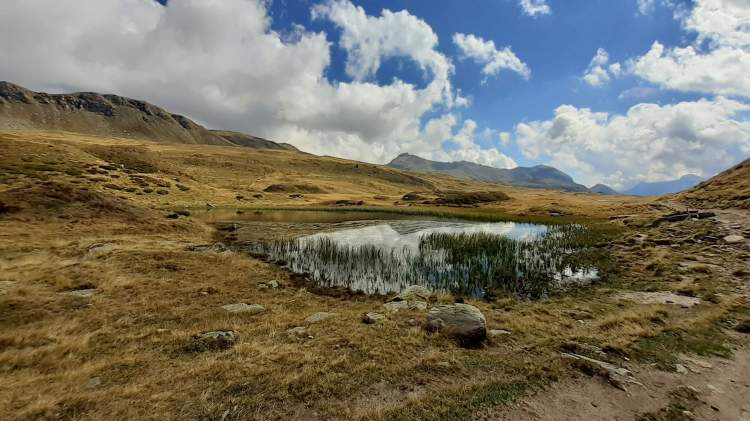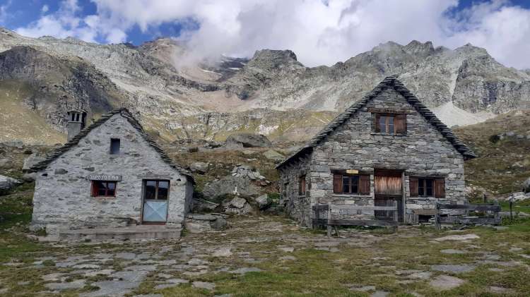Ci svegliamo… a Devero! Che meraviglia! Oggi decidiamo di salire al Lago Nero e, così, partiamo dal parcheggio di Cologno (1580 m) e raggiungiamo prima la Piana di Devero (1631 m) e, seguendo la sterrata a sinistra, arriviamo al piccolo abitato di Pedemonte (1644 m) (il Lago Nero è sempre ben indicato). Giretto veloce a Pedemonte e poi passiamo sul ponte sul rio Buscagna e iniziamo a salire. Il percorso non è difficile, non è impegnativo e la ripidità si mantiene sempre abbastanza costante. Arriviamo all’ Alpe Misanco (1907 m)… veloce pausa e poi proseguiamo sopra l’ alpeggio, dove è posto un cartello di legno che riporta la scritta ‘LAGO NERO’. Seguendo le indicazioni, arriviamo nella meravigliosa conca che ospita questo incantevole lago…. il Lago Nero (1990 m)….bellissimo! Foto su foto e poi decidiamo di farne il giro completo, giro possibile perchè oggi il livello dell’ acqua del lago è basso. Non esiste un vero e proprio sentiero, bisogna procedere tra i sassi e le pietre. Ci sediamo a mangiare su alcune pietre un po’ più grosse in fondo a questo stupendo specchio d’ acqua, ma non possiamo fermarci molto perché nuvole grigie minacciose si stanno avvicinando e, quindi, ultimi scatti e giù…. ma la pioggia è più “veloce” di noi! Dopo l’ Alpe Misanco (1907 m) iniziano le prime gocce; infiliamo la giacca antipioggia e proseguiamo giù per il sentiero. Arrivati nella Piana di Devero (1631 m) la pioggia aumenta e, con l’ ombrello, raggiungiamo l’ inizio della Piana e, poi, il parcheggio di Cologno (1580 m). Un paio d’ ore di rilassamento sul camper, mentre guardiamo subito le foto scattate da poco…. luoghi meravigliosi, che anche oggi hanno saputo donarci splendide emozioni.