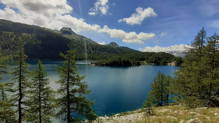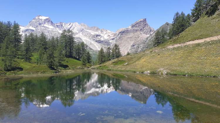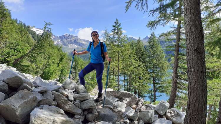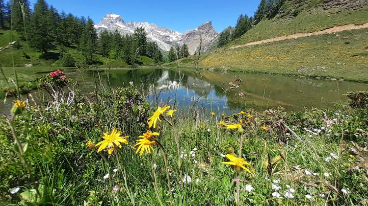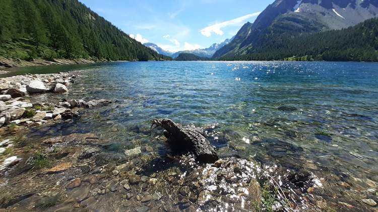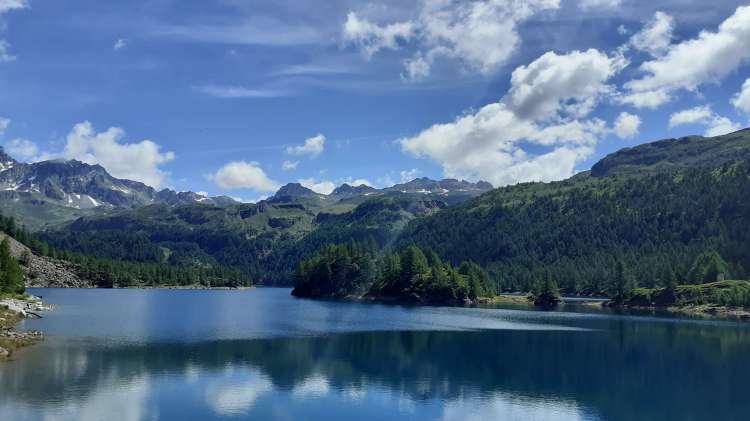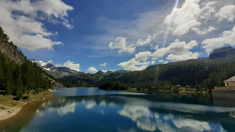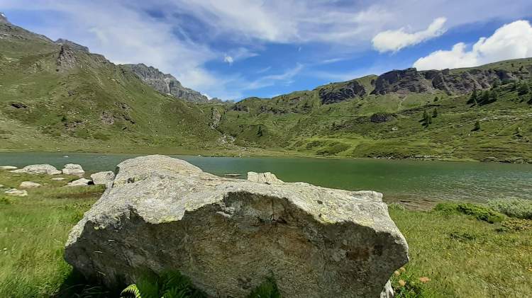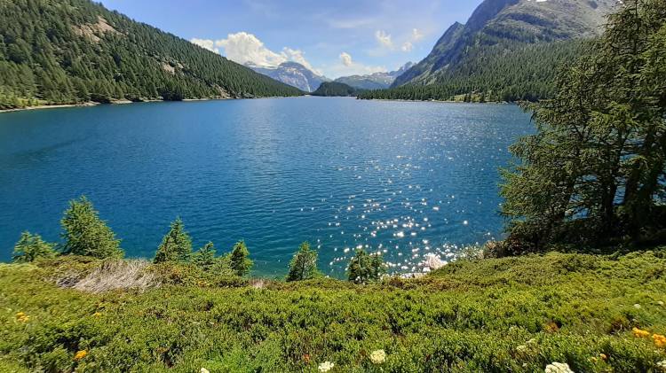 Hymer…. scalda i motori!! Si parte! Destinazione… Alpe Devero. Il sabato mattina siamo già lì e, quindi, partiamo presto per il nostro percorso. Iniziamo dal parcheggio di Cologno (1580 m) (area sosta camper) e raggiungiamo la Piana di Devero (1631 m)… è sempre stupenda! Proseguiamo verso Crampiolo… ci sono vari percorsi che si possono seguire, tutti indicati e piuttosto semplici. Arrivati a Crampiolo (1780 m), in questo bellissimo villaggio alpino scattiamo qualche foto (più di qualche!!) e poi saliamo al Lago di Devero (Codelago) su comoda mulattiera alla sinistra del ponte alla fine di Crampiolo. Piccola sosta sulla diga di Codelago (o Lago di Devero) (1856 m) e poi si continua alla sinistra della diga, verso il Lago di Pianboglio. Il percorso diventa più impegnativo per i lunghi e numerosi tratti su pietra, ma il panorama ha dell’ incredibile! Costeggiamo così tutto il versante del Lago e, alla fine di quest’ ultimo, continuiamo dritti lungo il percorso che “corre parallelo” al torrente. Anche questa parte del tragitto è abbastanza impegnativa, ma si arriva senza grossi problemi alla piccola e vecchia diga del Lago di Pianboglio (1990 m). Davanti a me si apre uno spettacolo spendido… un lago dall’ acqua cristallina e dai colori incredibili tra ripidi versanti di roccia e di erba! Cerchiamo un posto tranquillo dove mangiare e poi restiamo ad ammirare tutta questa generosa bellezza… complice anche il tempo sereno e la temperatura gradevole. Per scendere ripercorriamo il sentiero che ci porta di nuovo alla fine di Codelago, ma proseguiamo lungo il versante opposto, così da completare il periplo (giro completo) di Codelago. Qui il percorso è un po’ meno difficile e ci consente di arrivare anche fino alla riva, dove le fotografie e i video riempiono il cellulare e la macchinetta fotografica! Il percorso non torna sulla diga di Codelago, ma prosegue direttamente fino a Crampiolo (1780 m); da qui seguiamo per la Piana di Devero (1631 m) e, dopo aver ammirato ancora tutte le montagne, scendiamo fino al parcheggio, dove ci aspetta Hymer!