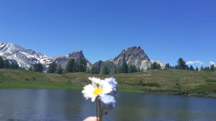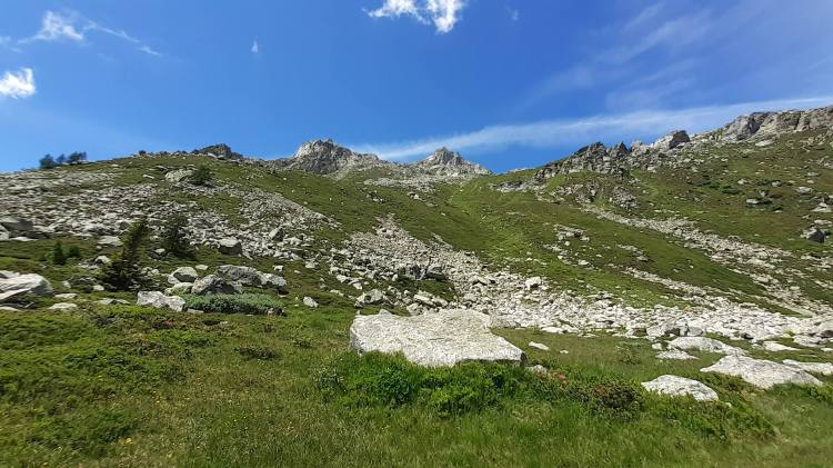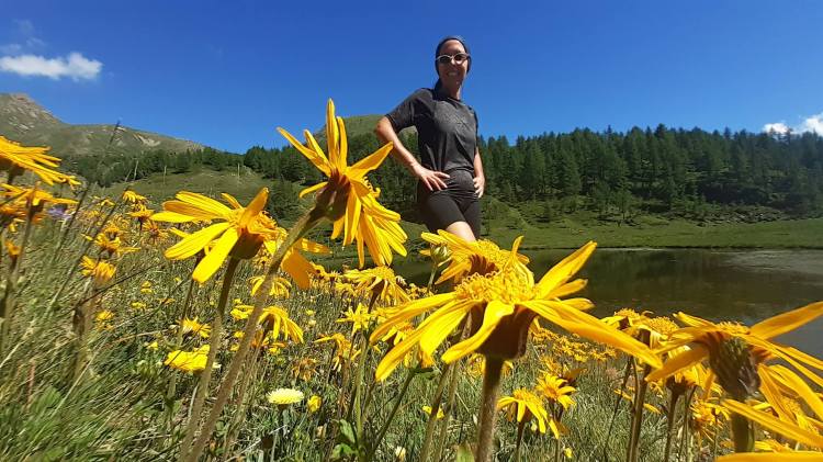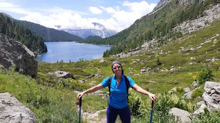 Comincia un’ altra giornata a Devero!! Svegliarsi tra queste montagne è davvero un incanto! Ci prepariamo e… si parte! Oggi scegliamo un percorso lontano dall’ affollamento che di sicuro ci sarà alle altitudini più basse… saliamo ai 3 Laghi del Sangiatto. Dal parcheggio di Cologno (1580 m) saliamo alla Piana di Devero (1631 m). Qui, in prossimità del primo piccolo ponte, prendiamo a destra (il percorso è indicato). Seguiamo la comoda sterrata (più ripida e più stretta solo in alcuni tratti) e arriviamo alla Corte d’ Ardui (1748 m); poi saliamo ancora fino agli ultimi tornanti, che ci permettono di arrivare al Primo Lago del Sangiatto (1990 m). Il panorama è incredibile! Il Lago riflette tutta la bellezza circostante… il Monte Sangiatto, il Monte Corbernas e, dalla parte opposta, il Monte Cervandone e la Punta della Rossa! Giriamo un po’ scattando tantissime foto da varie angolazioni e poi cerchiamo un posticino tranquillo dove mangiare. Subito dopo, su sentiero più stretto, raggiungiamo l’ Alpe Sangiatto e il Secondo Lago del Sangiatto (2000 m) (poco distante)… un piccolo specchio d’ acqua davvero caratteristico. Proseguiamo, sempre su stretto sentiero, anche verso il Terzo Lago del Sangiatto (2040 m)… agli occhi arriva in pochissimi secondi la meraviglia dei colori che vanno dall’ azzurro al celeste! Decidiamo di compierne il giro completo e, alla fine di questo, ci sediamo su alcune rocce per una pausa un po’ più lunga… il sole e l’ arietta fresca portano a rimanere qui! Ma adesso è ora di tornare giù! Torniamo al Primo Lago, ammirando solo da lontano il Secondo; poi ci fermiamo per l’ ultima sosta fotografica al Primo Lago. Infine, ripercorrendo la stessa strada dell’ andata, torniamo alla Piana di Devero (1631 m) e poi al parcheggio di Cologno (1580 m).