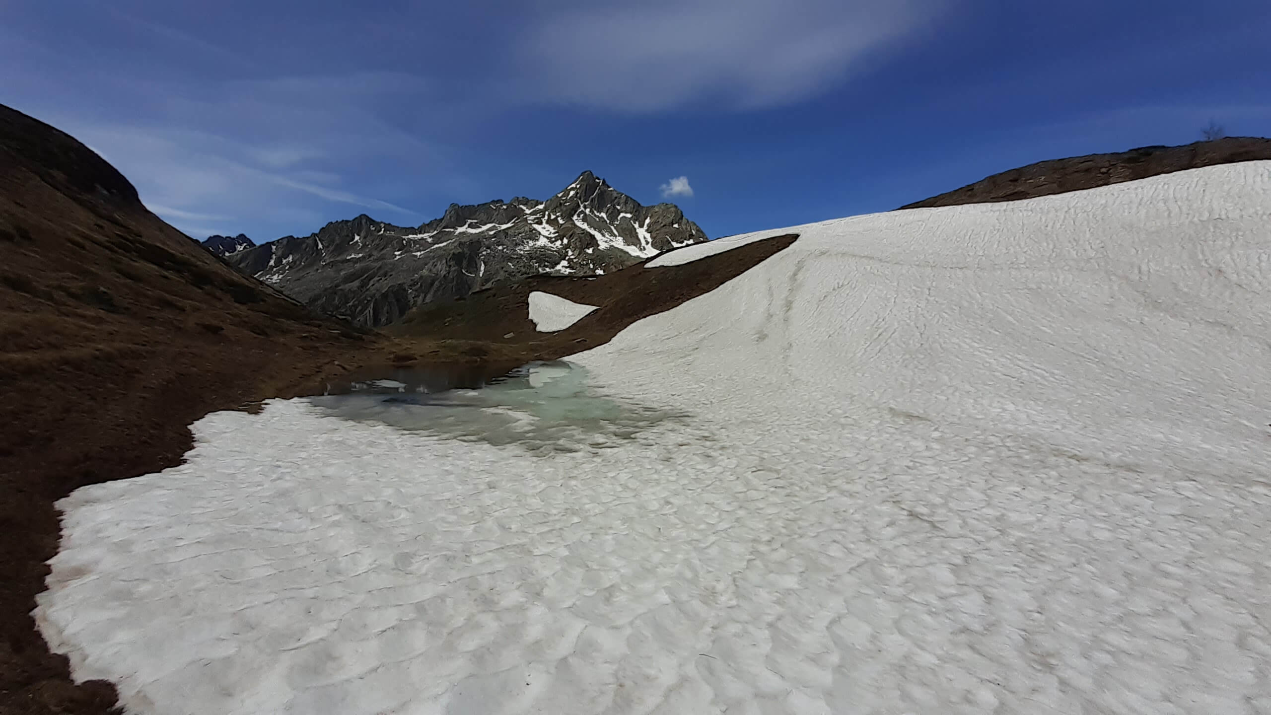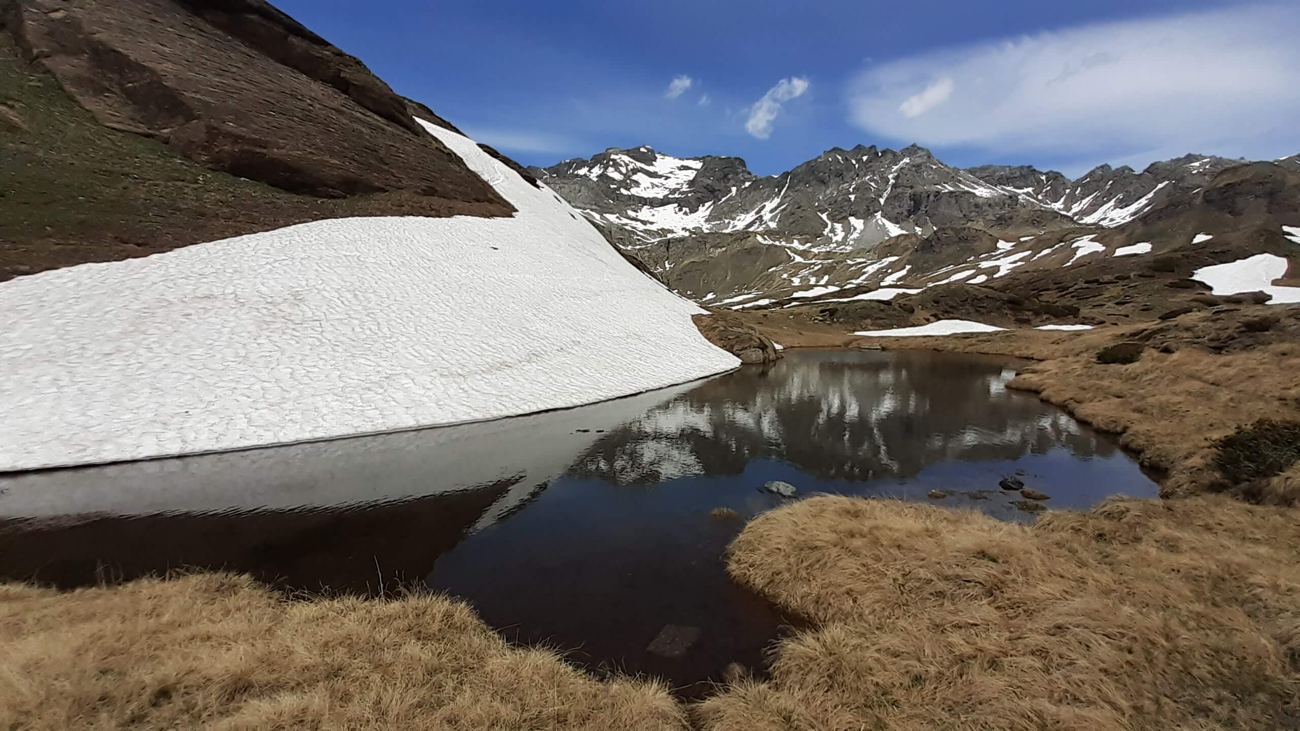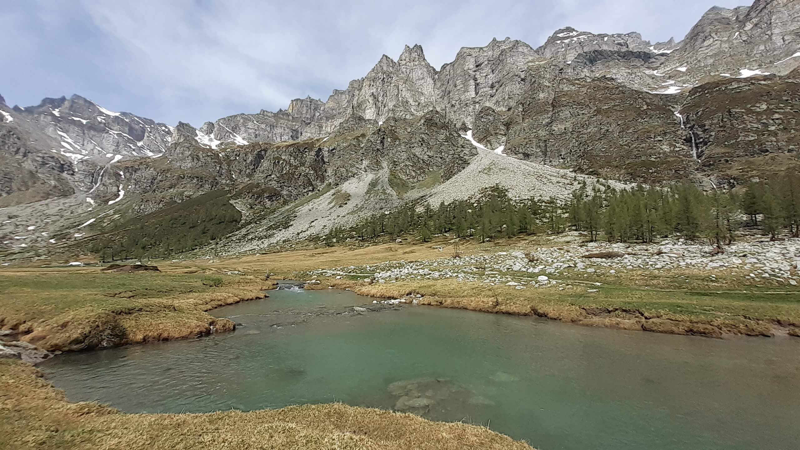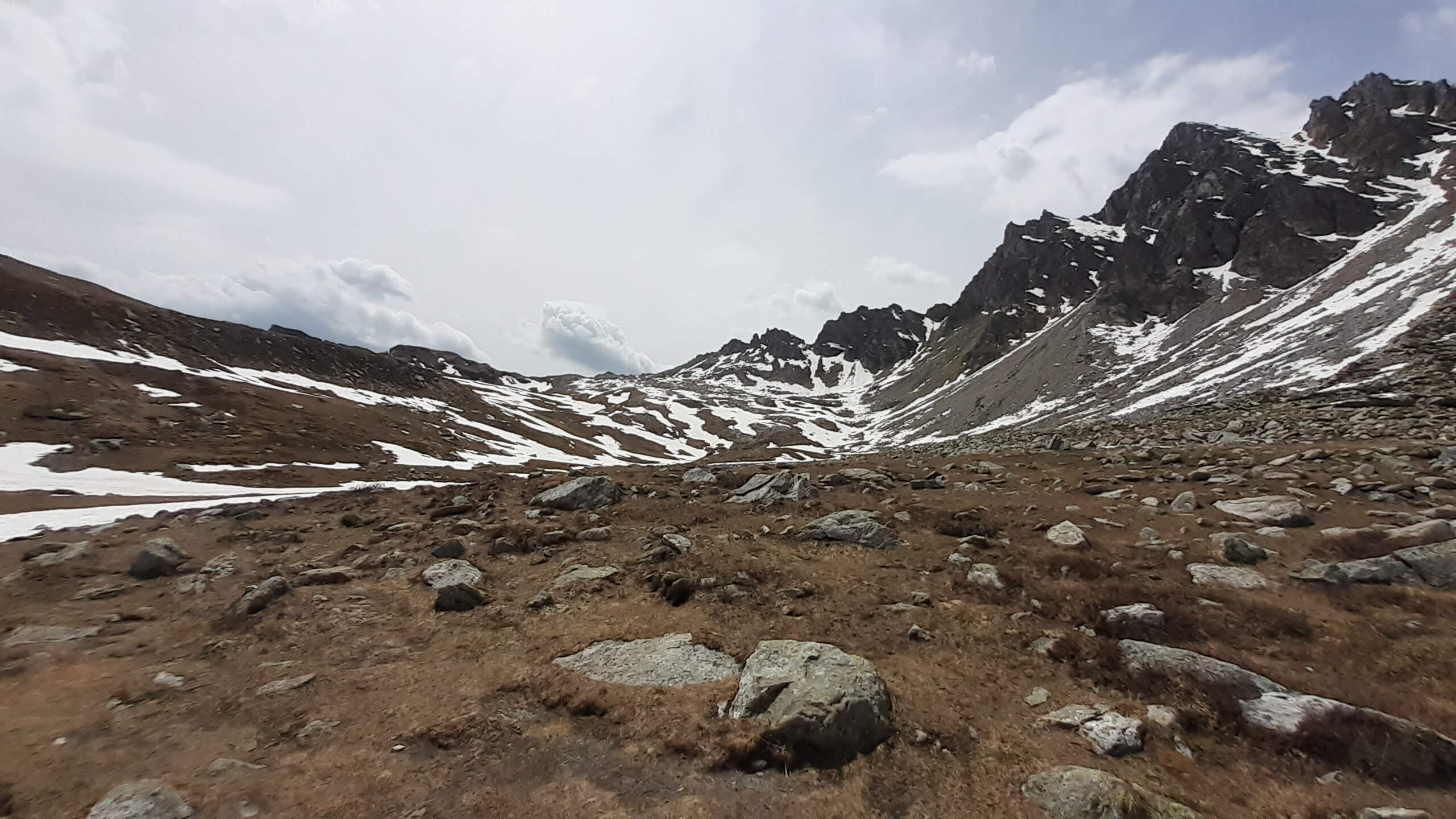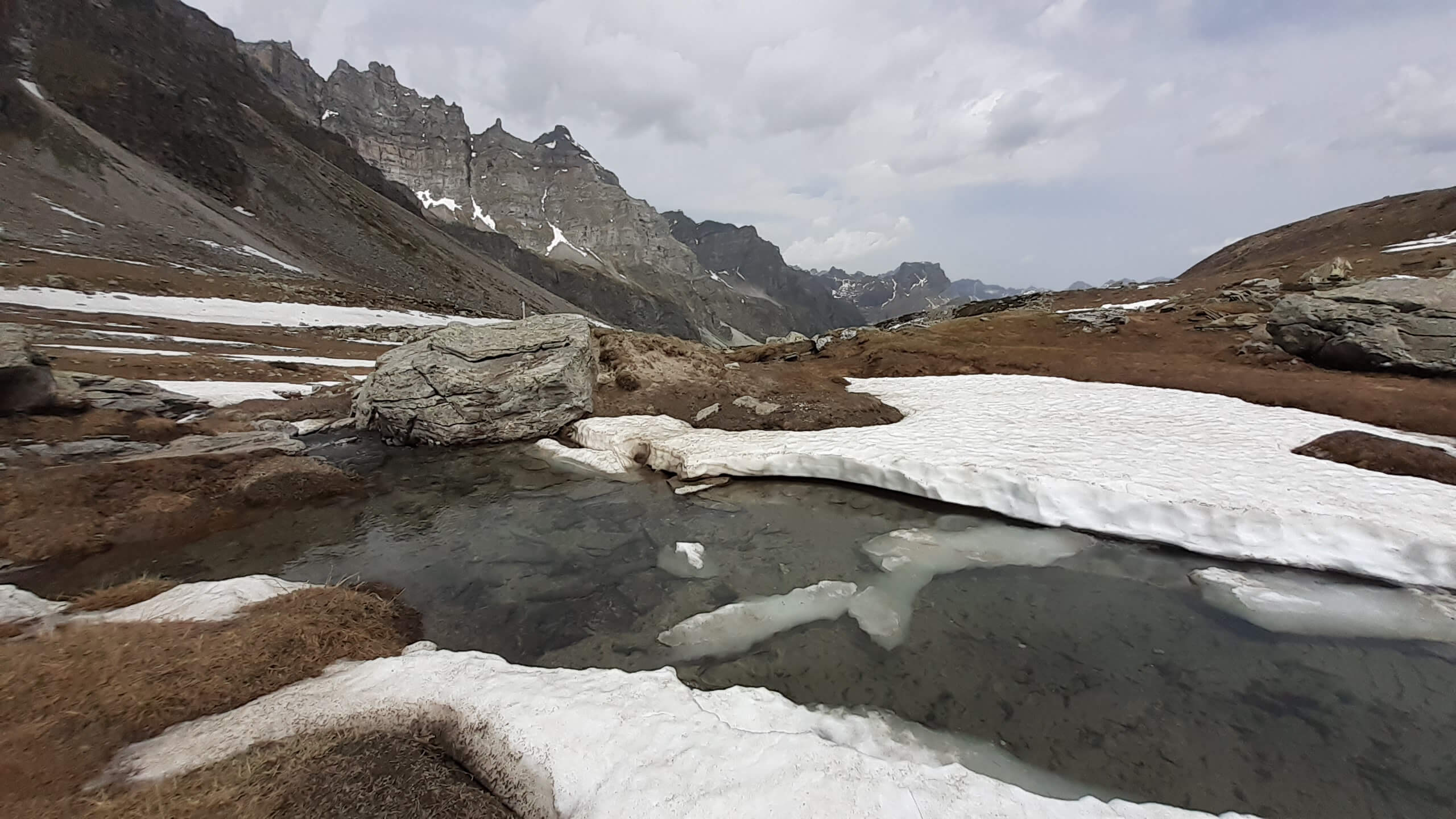 Oggi ci svegliamo a Devero! E… si parte di nuovo. Dal parcheggio di Cologno (1580 m) saliamo alla Piana dell’ Alpe Devero (1630 m) e, prendendo a sinistra, arriviamo alla località Pedemonte (1645 m), oltrepassiamo il ponte sul rio Buscagna e saliamo sul percorso a sinistra (indicazione “Lago Nero”). Arriviamo così all’ Alpe Misanco (1907 m), dove facciamo una piccola pausa-barretta. Lasciandoci poi l’ Alpe Misanco alle spalle e seguendo l’ indicazione su un cartello di legno, arriviamo al bellissimo Lago Nero (1990 m)… anche con poca acqua è uno spettacolo stupendo! Foto su foto e poi, percorrendone il versante a destra, arriviamo alla fine del lago e scendiamo a destra, verso la Val Buscagna che è una immensa valle dai colori rigogliosi. Al piccolo ponte poco distante ci dirigiamo a sinistra e arriviamo all’ Alpe Buscagna (1967 m), un rudere abbandonato. Decidiamo di proseguire, tra nevai residui e passaggi su sassaie e pietraie non semplici; su una roccia un po’ più “comoda” ci fermiamo a mangiare il nostro panino e poi continuiamo il percorso fino a Curt Vita (2230 m). Curt Vita è un piccolo “angolo di paradiso” immerso tra neve e ghiaccio in scioglimento, roccia che fuoriesce e il torrente Buscagna che delinea cascatelle e curve di acqua e neve molto caratteristiche. Il panorama è davvero superlativo! E’ arrivato il momento di scendere e, ripercorrendo lo stesso itinerario della salita, torniamo in Val Buscagna, proseguiamo verso la località Buscagna (1950 m), con l’ alpeggio più recente. Da qui scendiamo direttamente alla Piana dell’ Alpe Devero (1630 m) e poi al parcheggio di Cologno (1580 m). Un’ altra splendida giornata in montagna… da vivere e poi ricordare a lungo.