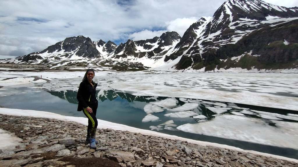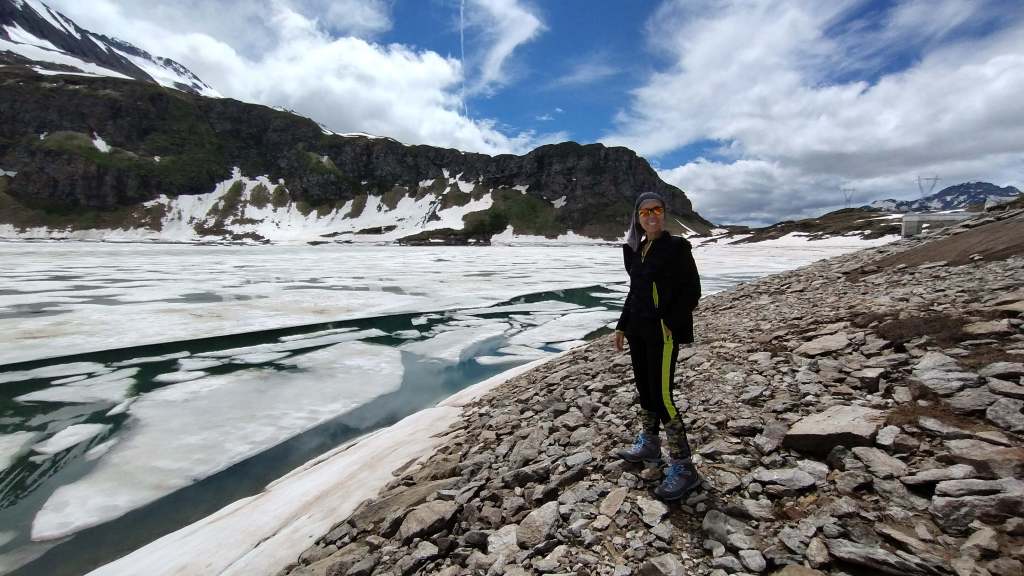 Oggi siamo in Val Formazza per andare ad ammirare il disgelo al Lago Kastel! Partiamo da Riale (1740 m) e, percorrendo tutti i tornanti panoramici (solo alcune delle direttissime, perché la pioggia dei giorni precedenti ha “compromesso” il terreno), arriviamo al bellissimo Laghetto Roni (2130 m) (un piccolo laghetto non molto conosciuto, che si trova poco prima del bivio Kastel/Toggia)… foto su foto e poi proseguiamo fino al bivio, dove saliamo a destra verso il Lago Kastel (2230 m) che ci aspetta con lo spettacolo del suo disgelo…. FAVOLOSO!! Percorriamo tutto il versante a destra della diga, fino alla fine del lago, e saliamo sulla piccola altura panoramica… da una parte il Lago Kastel, dall’ altra il Lago di Morasco da lontano! Pausa panino e poi scendiamo di nuovo al bivio Kastel/Toggia e raggiugiamo il vicino Rifugio Maria Luisa (2150 m) e la Diga del Lago Toggia (2190 m), dove rimaniamo solo il tempo di qualche foto perché inizia a piovere! Quindi… apriamo l’ ombrello e giù veloci fino a tornare a Riale (1740 m).