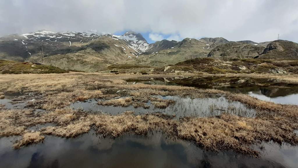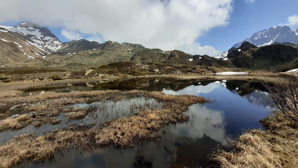 E’ iniziato il disgelo in Val Formazza! E oggi non potevamo che essere qui. Partiamo da Riale (1740 m) e, un po’ su direttissima un po’ su tornanti, arriviamo al piccolo Laghetto Roni (2120 m)… un laghetto effimero e “nascosto”, ma molto bello! Proseguiamo fino al bivio Kaste/Toggia e saliamo a destra fino alla Diga del Lago Kastel (2230 m). Il Lago Kastel è in disgelo! Un disgelo davvero spettacolare! Scendiamo in riva… foto su foto e poi saliamo verso l’ Alpe Kastel ma, dopo l’ alpeggio, iniziano i nevai (con neve primaverile in scioglimento!… si inizia a sprofondare!) Torniamo al Lago Kastel… altre foto al lago e alla bellissima Punta Kastel e poi torniamo al bivio Kastel/Toggia; proseguiamo verso il Rifugio Maria Luisa e saliamo anche alla Diga del Lago Toggia (2190 m). Anche il Lago Toggia è in disgelo… fantastico! Foto su foto e poi scendiamo ma, poco prima del Rifugio Maria Luisa, prendiamo a destra e saliamo nella vicina Piana di Valrossa… breve camminata fino al piccolo alpeggio e scendiamo (i sentieri sono ancora troppo bagnati dalla neve in scioglimento!) Torniamo al bivio Kastel/Toggia e poi, passando di nuovo per il Laghetto Roni (2120 m), scendiamo fino a Riale (1740 m). Giornata spettacolare… disgelo indimenticabile!