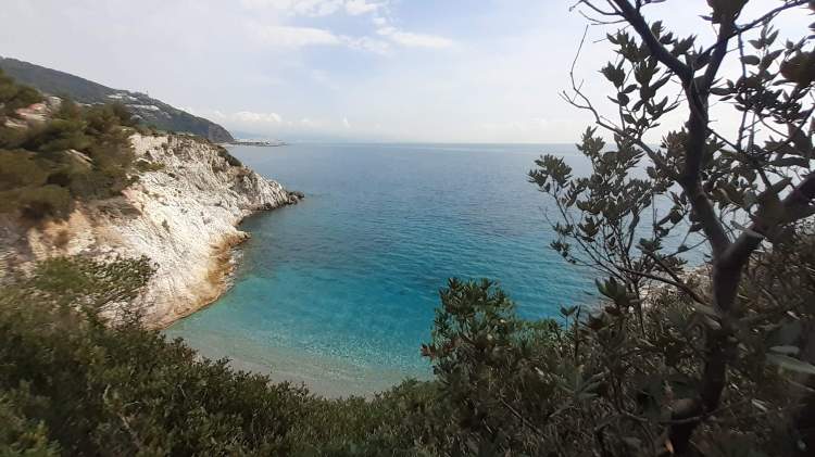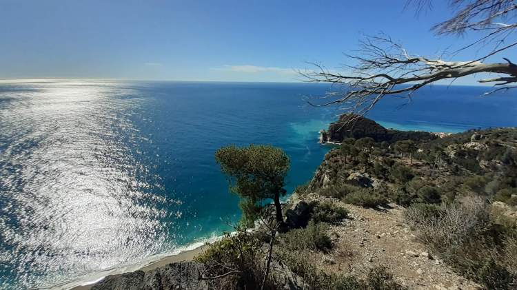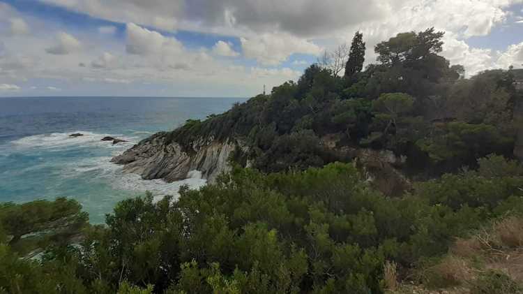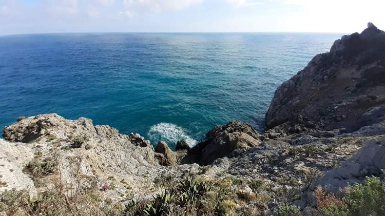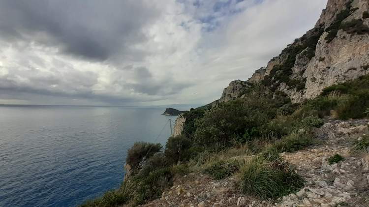 Il Sentiero del Pellegrino è un percorso che sale da Varigotti verso l’ entroterra ligure, ma restando sempre molto vicini alla costa. Raggiungendo prima due stupendi belvedere, il secondo è il Promontorio della Falesia di Malpasso, si arriva alla Grotta dei Briganti (o dei Falsari)… con panorama straordinario sul mare dalla sua cavità.