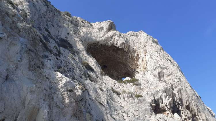 Promontorio roccioso sopra la Grotta dei Briganti e Grotta dei Briganti (ultime 2 foto spiaggia di Noli)