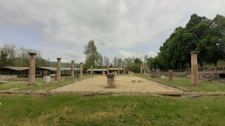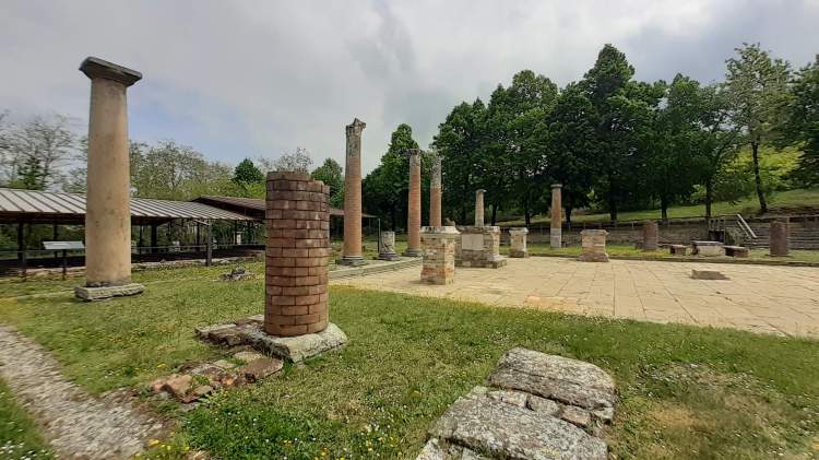 IL FORO ancora ben mantenuto, presenta serie di colonne e pilastri. Ai lati i resti delle botteghe. Era un edificio pubblico molto frequentato per le diverse funzioni pubbliche.