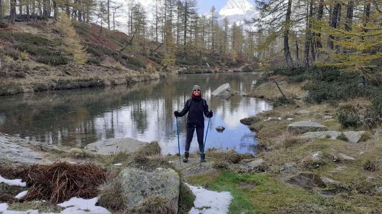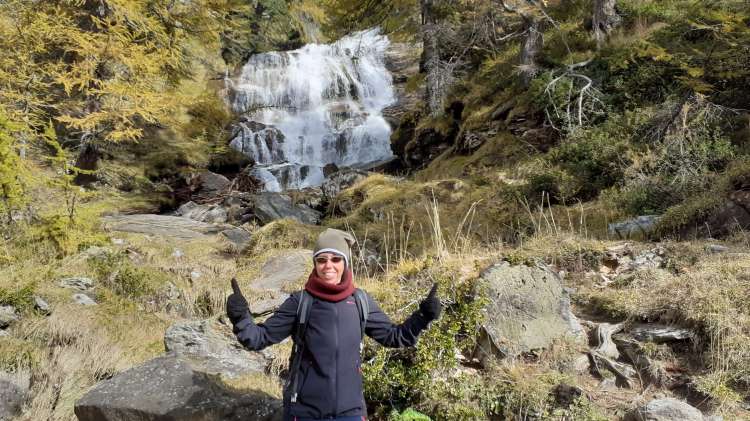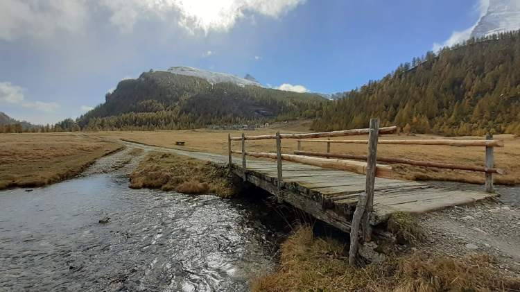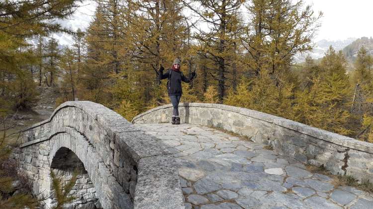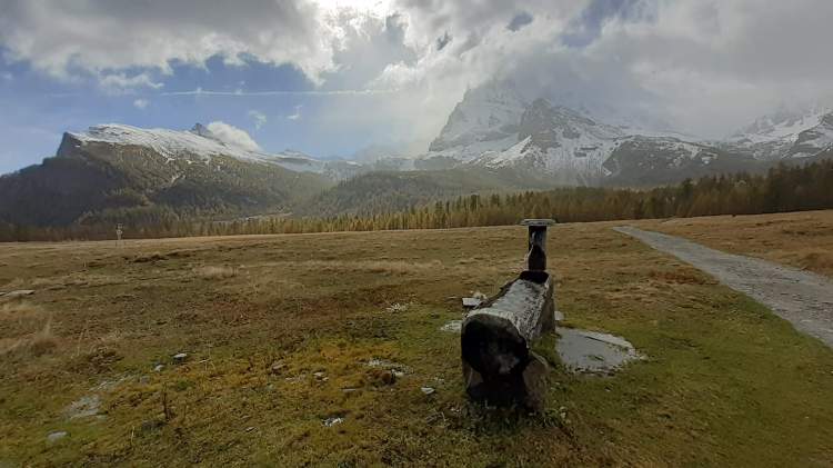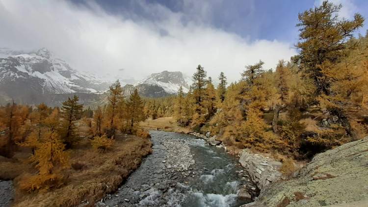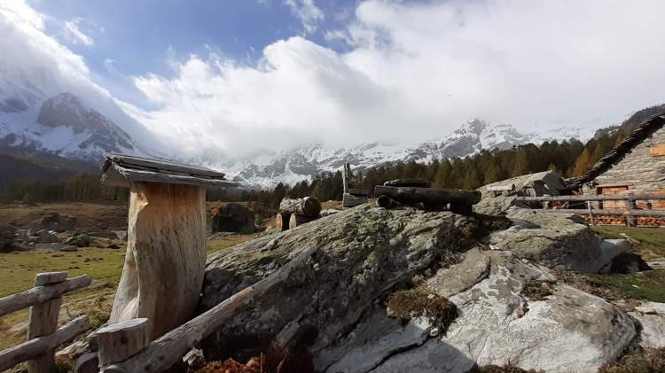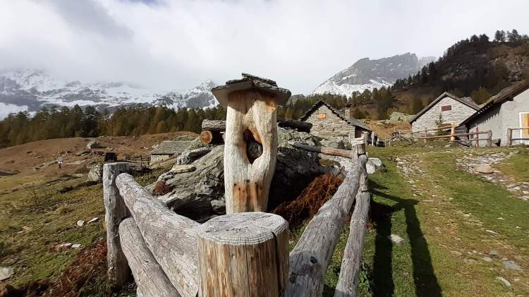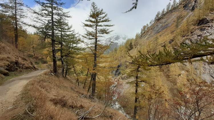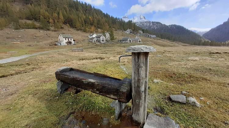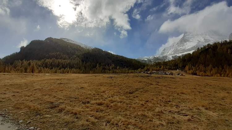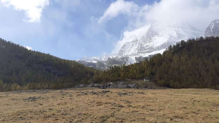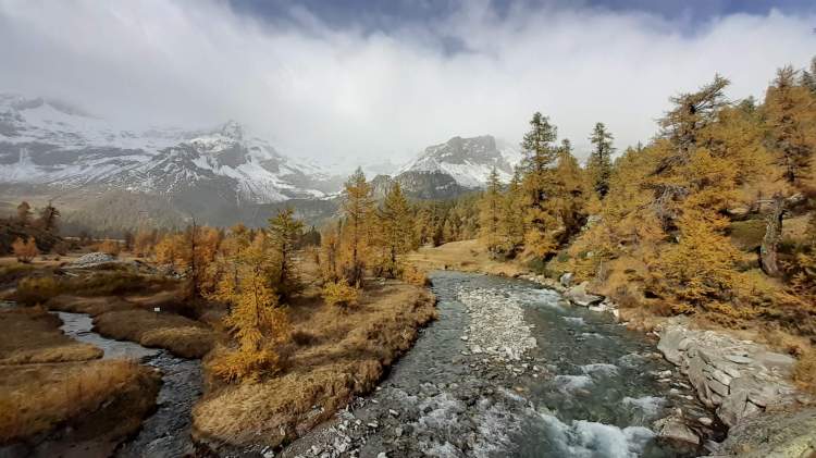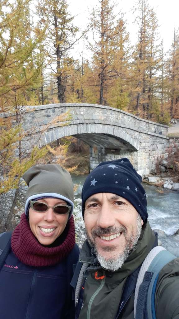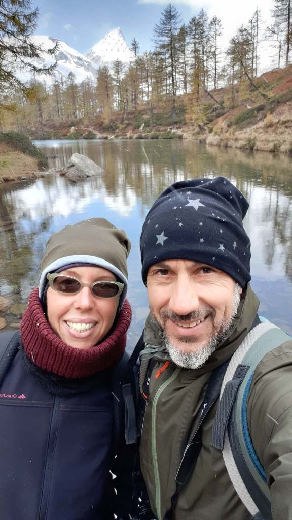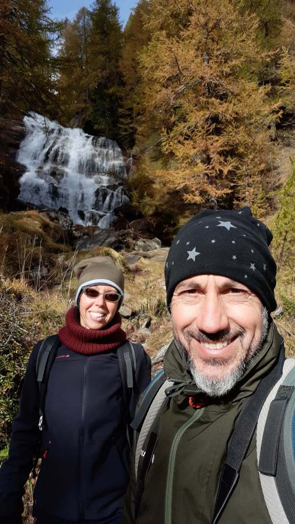 Dopo alcune settimane di tempo non troppo “clemente”, finalmente una giornata di sole!… almeno così dice il meteo! Partiamo la mattina presto, arriviamo a Pontecampo (1320 m) dove parcheggiamo la macchina e iniziamo a salire. La strada è una gippabile ampia e comoda che inizia dopo il ponte (in alternativa, si possono evitare i primi tornanti prendendo a destra, dopo il ponte… il sentiero, più ripido e un po’ più impegnativo, va ad intercettare la gippabile dopo circa 20 minuti di salita). Procediamo con il vento, piuttosto forte, anche a sfavore.. arrivano raffiche potenti, una delle quali ci costringe a fermarci, portare il viso nel giubbotto per respirare e aspettare che finisca. Nonostante questo proseguiamo… il desiderio di raggiungere l’ Alpe Veglia è davvero immenso! Siamo così alla staccionata dell’ ingresso dell’ Alpe Veglia e, subito dopo, sul ponte sul Rio Cianciavero. Ancora pochi passi ed eccoci alla Piana dell’ Alpe Veglia (1730 m), che si presenta con la veste autunnale! Tinte tiepide e colori che scaldano il paesaggio…. una meraviglia di foliage che, anche se non è ancora completo, si manifesta già in tutto il suo splendore! Proseguiamo sulla sterrata al centro della Piana, ammirando da lì il piccolo abitato di Cianciavero, sovrastato dal bellissimo Monte Leone. Arriviamo alla fine della Piana, con il vento costante ad accompagnarci… ma non solo! Iniziano a scendere anche dei piccoli “filini di neve”… il vento forte porta via la neve dalle alte vette e la trascina fino a noi! Cerchiamo un posticino dove mangiare… riparati dal vento, dal nevischio e dal freddo. Veloce pausa pranzo e poi prendiamo a sinistra verso i Laghi. Il primo che incontriamo è il bellissimo Lago delle Fate… uno specchio d’ acqua, un po’ in secca, circondato da parecchi alberi; il secondo, molto vicino al primo, è un piccolissimo laghetto (senza nome) che a me piace chiamarlo Lago dei Maghi; il terzo, forse quello più spettacolare, è il Lago delle Streghe (1830 m)… uno splendido e piccolo lago dall’ acqua cristallina contornato dal foliage che ne arricchisce la bellezza. Innumerevoli foto e poi si torna giù; passiamo sopra il ponte alla fine della Piana e raggiungiamo prima la località Isola (1745 m) e poi la località Cornù… il vento tenta di placarsi e il sole tenta di uscire! Raggiungiamo poi, proseguendo sulla sterrata principale, anche la bellissima Cascata della Frua, oggi carica di acqua! Anche qui scatti su scatti e poi ci dirigiamo verso La Balma (indicata dal cartello poco distante). La Balma (1770 m) è un alpeggio con diverse case, adesso ormai disabitate per la fine dell’ estate… bellissimo e molto caratteristico! Ma adesso è ora di tornare giù… seguiamo la stessa sterrata che ci ha portato a La Balma e ci ritroviamo prima su un grande ponte con l’ ultimo panorama spettacolare sull’ Alpe Veglia e poi sul ponte sul Rio Cianciavero e, successivamente, all’ ingresso dell’ Alpe Veglia. Un ultimo saluto al Monte Leone e poi, seguendo tutta la gippabile, ci ritroviamo al parcheggio di Pontecampo (1320 m). Giornata ventosa, con tempo non propriamente bello e soleggiato… ma un’ altra giornata in montagna ed è questo l’ importante!