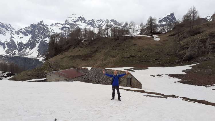 Ci svegliamo…. ancora a Devero!!! E quindi…. si parte anche oggi! Saliamo dal parcheggio di Cologno (1580 m) alla Piana dell’ Alpe Devero (1631 m) e qui prendiamo a sinistra (indicazione ‘Lago Nero’). Arriviamo alla località Pedemonte (1645 m) e oltrepassiamo il ponte di legno sul rio Buscagna. Il percorso si presenta subito più impegnativo del solito per la presenza di tanti rami tagliati o spezzati che abbondano sul sentiero… a volte dobbiamo uscire dal sentiero stesso! Saliamo e, dopo aver fatto una piccola pausa in prossimità di un altro ponte sotto il quale scende una bellissima cascata, raggiungiamo l’ Alpe Misanco (1907 m). Da qui inizia anche la neve! Saliamo prestando molta attenzione e arriviamo al Lago Nero (1990 m)…. spettacolare! Il disgelo disegna forme e colori incredibilmente belli… foto su foto… e tanta ammirazione! Oggi decidiamo di tornare giù non ripercorrendo lo stesso itinerario della salita ma scendendo dalla parte della Val Buscagna. Ci portiamo alla fine del Lago Nero e da lì iniziamo a scendere. Per noi la Val Buscagna è nuova…. ed è una splendida sorpresa! Un’ immensa valle circondata da altissime montagne, sulle quali primeggia e si distingue tutto il complesso del Cervandone. Nei pressi del caratteristico ponte ci fermiamo a mangiare. Ci siamo solo noi…. pace, tranquillità, silenzio e tantissima ammirazione ad un luogo davvero spettacolare! Arriviamo fino a Buscagna (o Alpe Buscagna) e poi ci apprestiamo a scendere verso la Piana dell’ Alpe Devero, località Pedemonte (1645 m). Un altro saluto a Devero e poi torniamo al nostro camper al parcheggio di Cologno (1580 m)…. veloce cena e poi si torna a casa… felici, soddisfatti, arricchiti da un’ altra esperienza stupenda e unica!