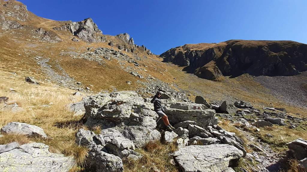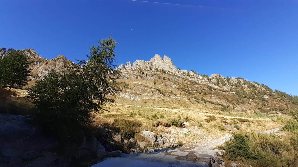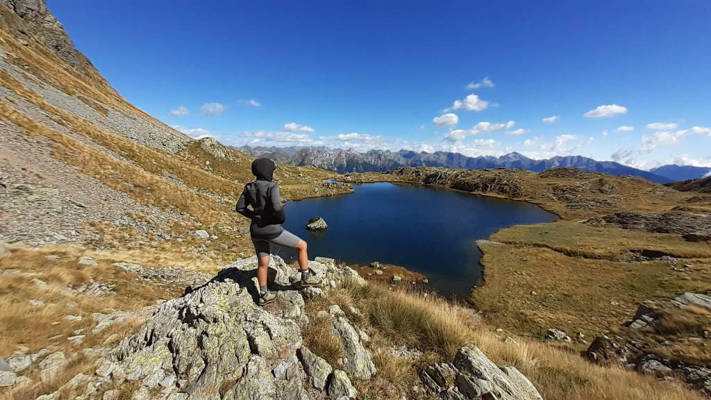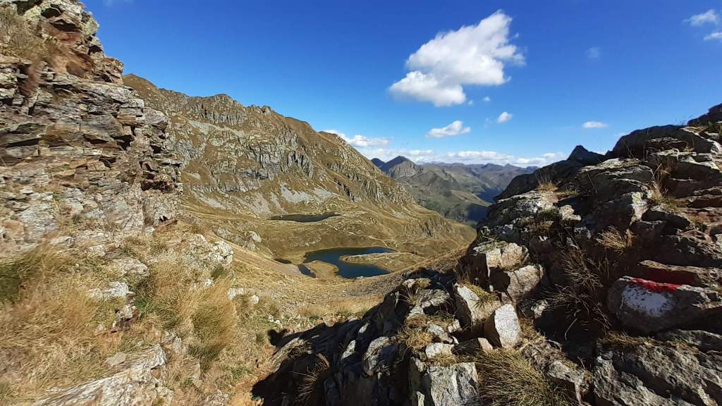 Ci svegliamo a Pescegallo! Partiamo anche oggi per un gran bel percorso. Dalla località Pescegallo (1430 m) saliamo, un po’ su direttissima e un po’ su tornanti, al bellissimo Lago di Pescegallo (1850 m), purtroppo con un livello di acqua davvero basso! Piccola pausa… qualche foto e poi proseguiamo sul versante del lago opposto alla diga e, subito dopo il grosso abete verde, al bivio saliamo a sinistra su percorso non proprio semplice… ripido, passaggi su roccette e a tratti disconnesso ma mai esposto… fino al Passo del Forcellino (2050 m). Panorama incredibile… ci fermiamo a mangiare il panino e poi proseguiamo. Al di là del Passo del Forcellino scende un sentiero, abbastanza ripido e disconnesso, che perde parecchia quota (circa 100 m) e che ci porta ad un bellissimo pianoro dove spuntano speroni rocciosi davvero molto caratteristici. A poca distanza da qui c’ è anche il bellissimo Lago del Verrobbio (2000 m)… un gioiello tra le montagne, “ai piedi” delle Cime di Ponteranica. Saliamo poi anche al Passo di Verrobbio (2030 m) dove sono presenti anche i resti di trincee militari, alcune gallerie e una “roccia forata”, ovvero una piccola parete rocciosa con due aperture dal panorama fantastico! Raggiungiamo i due piccoli Laghetti del Passo di Verrobbio… stupendi! Foto si foto e poi torniamo al Lago del Verrobbio (2000 m) e da qui, lungo lo stesso percorso dell’ andata, torniamo prima al Passo del Forcellino (2050 m) e poi al Lago di Pescegallo (1850 m). Infine, su comodo sentiero alternato alla direttissima, eccoci di ritorno alla località Pescegallo (1430 m). Un’ altra giornata fantastica… che chiude un bellissimo ed emozionante weekend nella splendida Val Gerola!