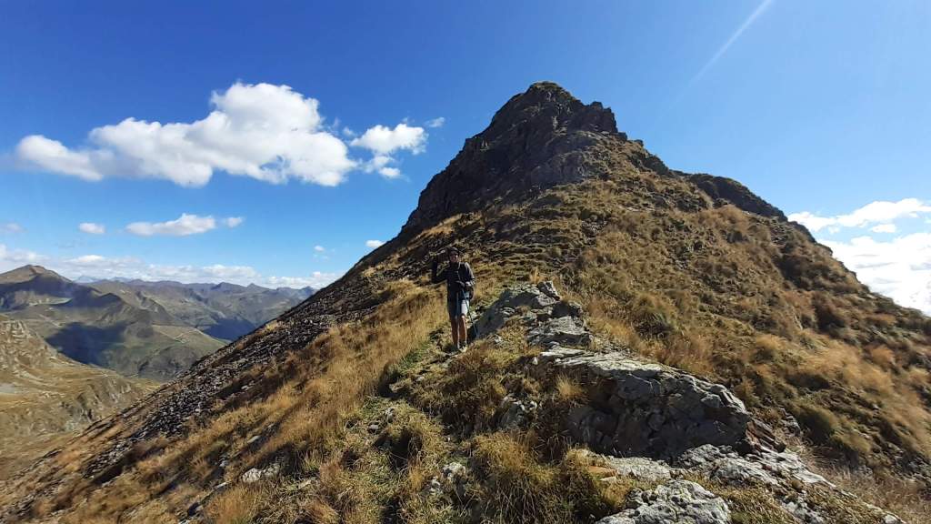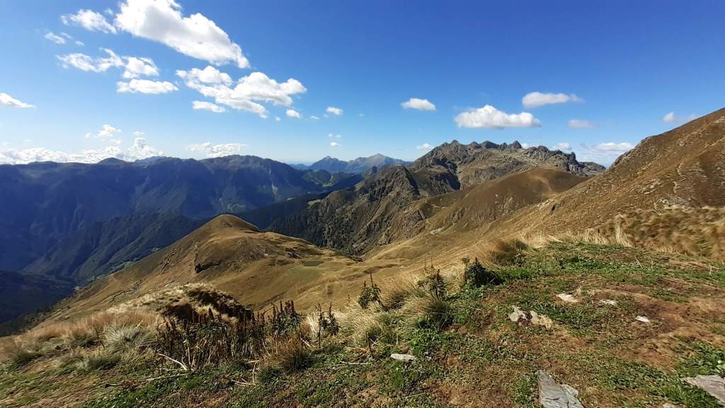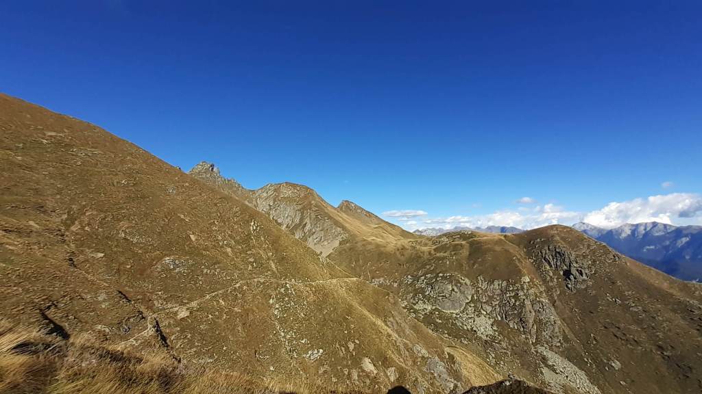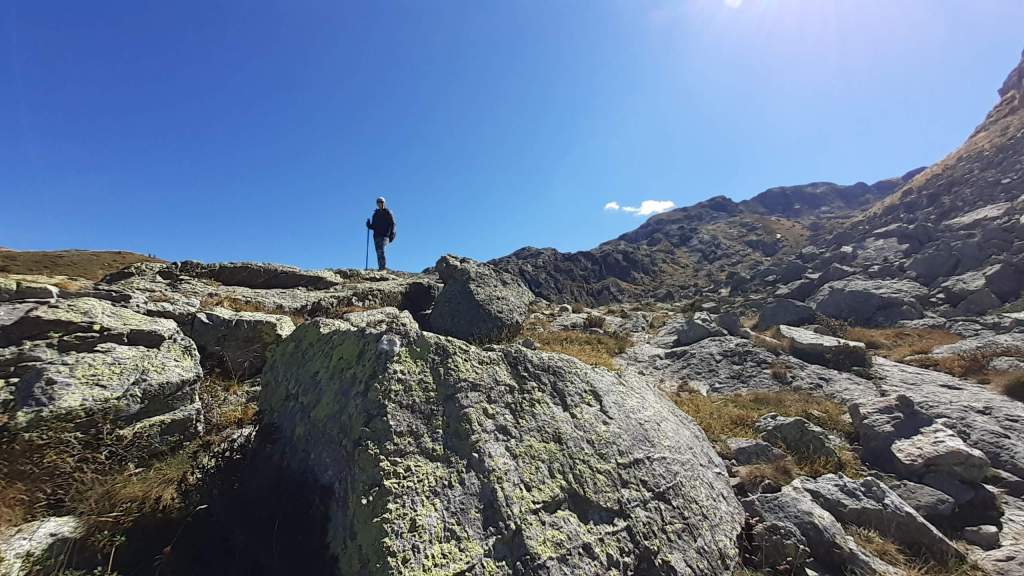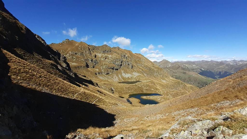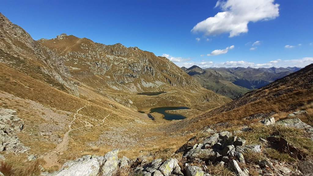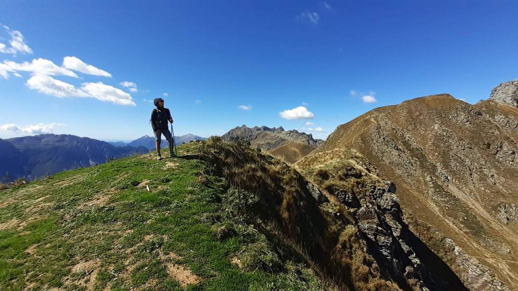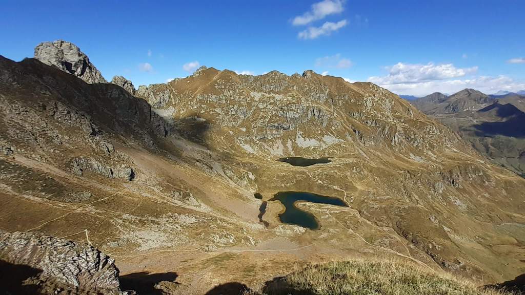 Oggi siamo in Val Gerola… una valle bellissima che conosciamo poco. Partiamo dalla località Pescegallo (1430 m) e, un po’ su direttissima e un po’ seguendo i tornanti, arriviamo nei pressi del Rifugio Salmurano (1840 m) e, da qui, prendiamo lo stretto sentiero a destra, già visibile, che porta al Passo Salmurano (2017 m). Guardando in direzione della croce, prendiamo a destra il sentiero n. 101 che, con piccoli saliscendi e una perdita di quota di circa 100 m, ci porta al Colletto del Monte Avaro (2050 m)… piccola pausa al suo piccolo laghetto e poi saliamo verso il Passo di Triomen (2200 m). E qui le parole iniziano a mancare… davanti a noi si apre un panorama spettacolare sui Laghi di Ponteranica dall’ alto, esattamente due gioielli incastonati tra le montagne! A destra del passo “svetta” la sagoma del Monte Triomen… decidiamo di salire. Il percorso è molto impegnativo e difficile… tratti molto ripidi, disconnessi, con passaggi su roccette e fortemente esposti! Con calma, prudenza e attenzione… un passo dopo l’ altro e… siamo in vetta al Monte Triomen (2250 m)! E anche da qui lo spettacolo del panorama è infinito! Torniamo al Passo di Triomen (2200 m) e scendiamo ai Laghi di Ponteranica… giro completo di entrambi i laghi : Lago di Ponteranica Inferiore e Lago di Ponteranica Superiore (2100 m /2120 m). Saliamo su vari promontori intorno ai laghi per ammirarli dall’ alto… uno spettacolo indescrivibile! Salutiamo i Laghi di Ponteranica e saliamo di nuovo al Passo di Triomen (2200 m); scendiamo al Colletto del Monte Avaro (2050 m) e decidiamo di raggiungere anche la vetta arrotondata del vicino Monte Avaro (2090 m). Torniamo al Colletto del Monte Avaro (2050 m) e da qui ripercorriamo il sentiero che ci riporta nei pressi del Passo Salmurano ma, prima di raggiungerlo, pieghiamo a destra e scendiamo direttamente al Rifugio Salmurano (1850 m). Da qui, seguendo i comodi tornanti, torniamo alla località Pescegallo (1430 m). Giornata straordinariamente bella, impegnativa ma soddisfacente a livello di percorso… una giornata davvero indimenticabile!!
