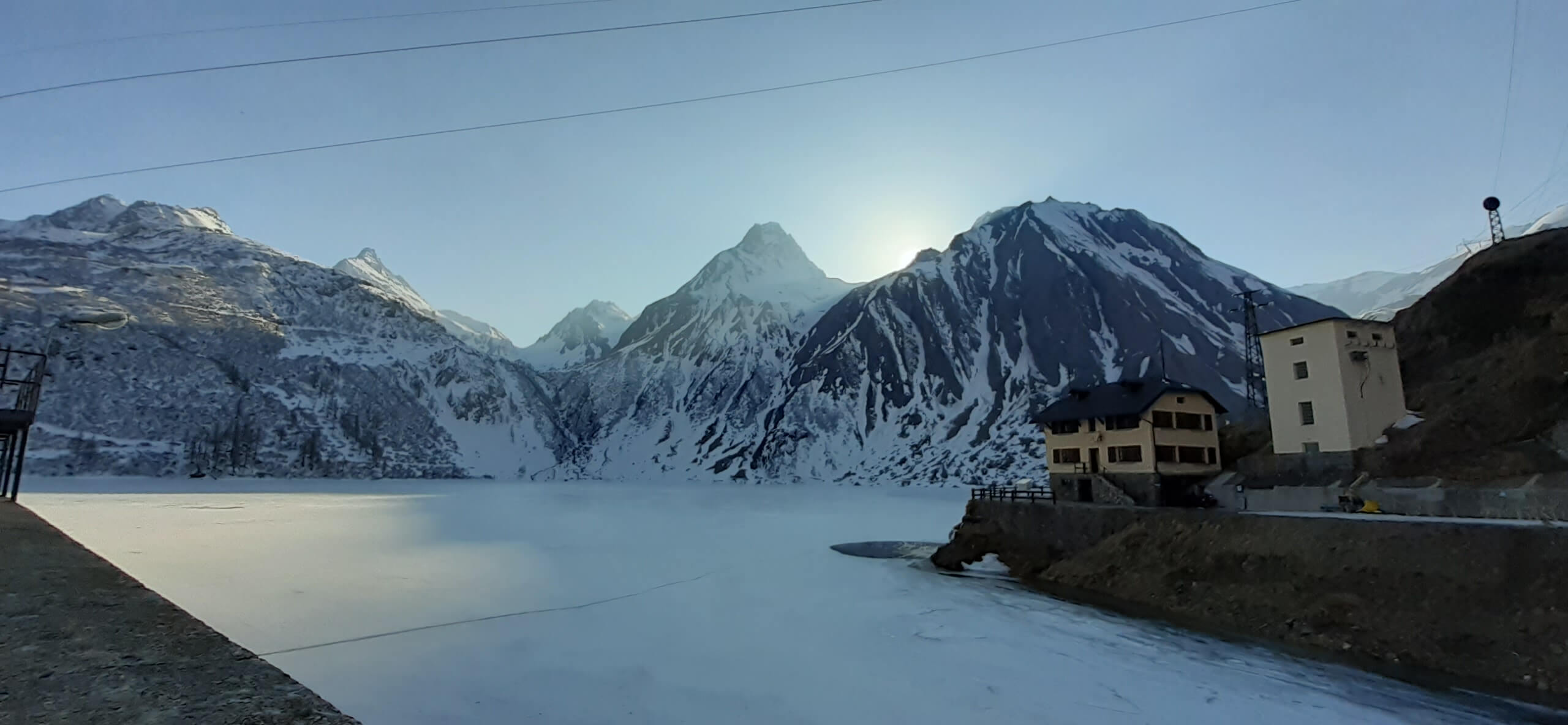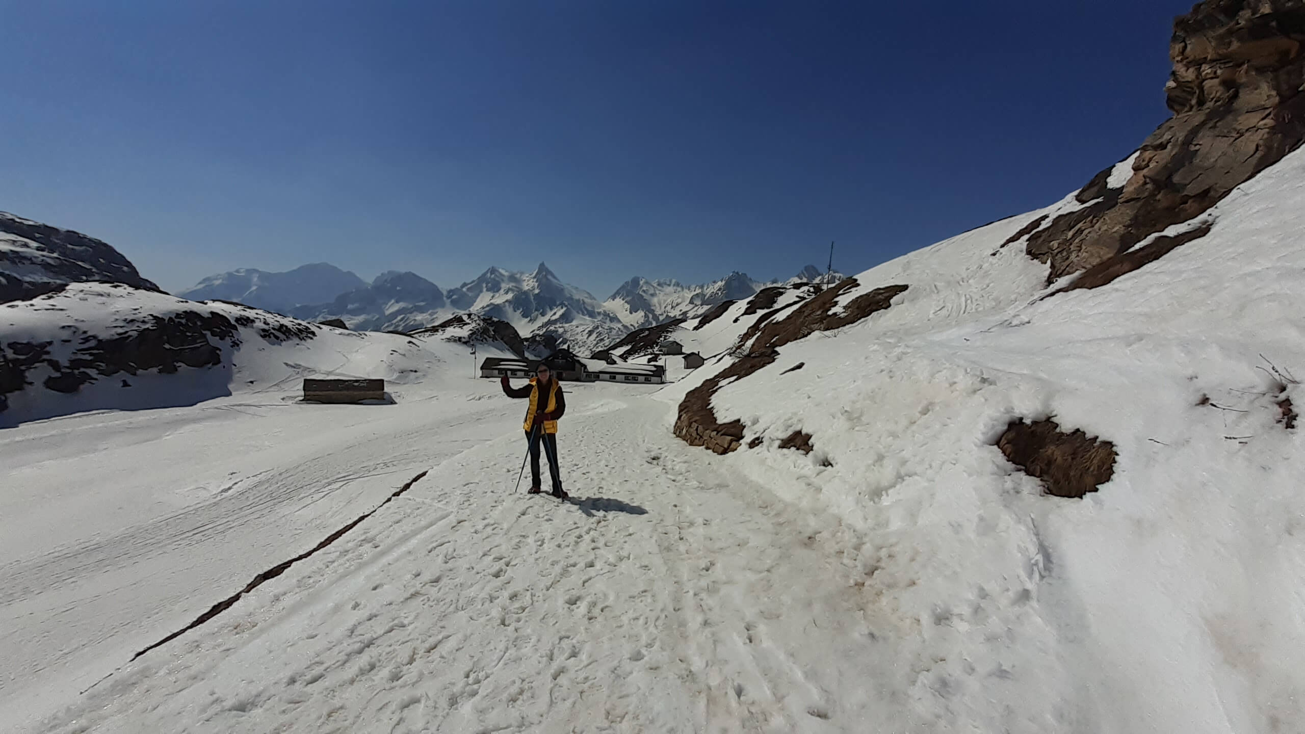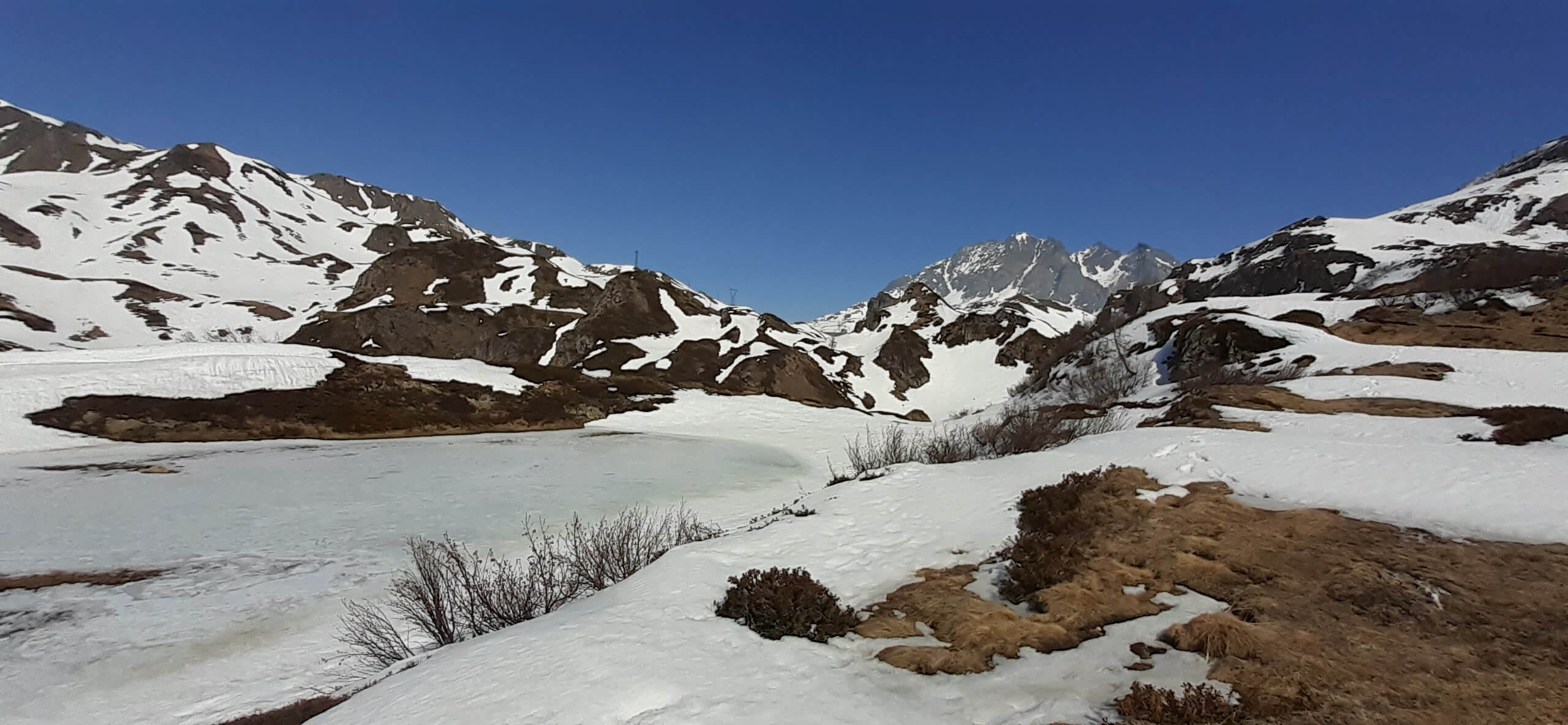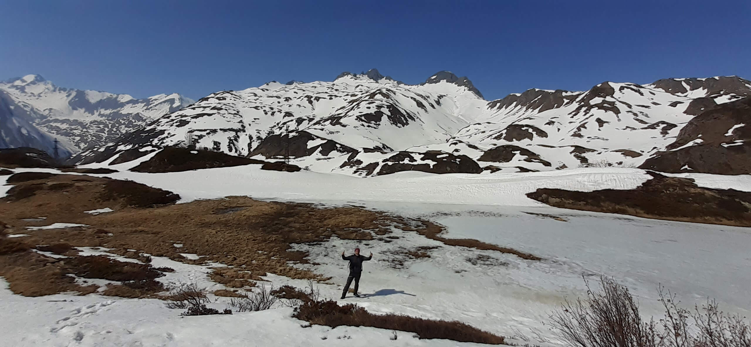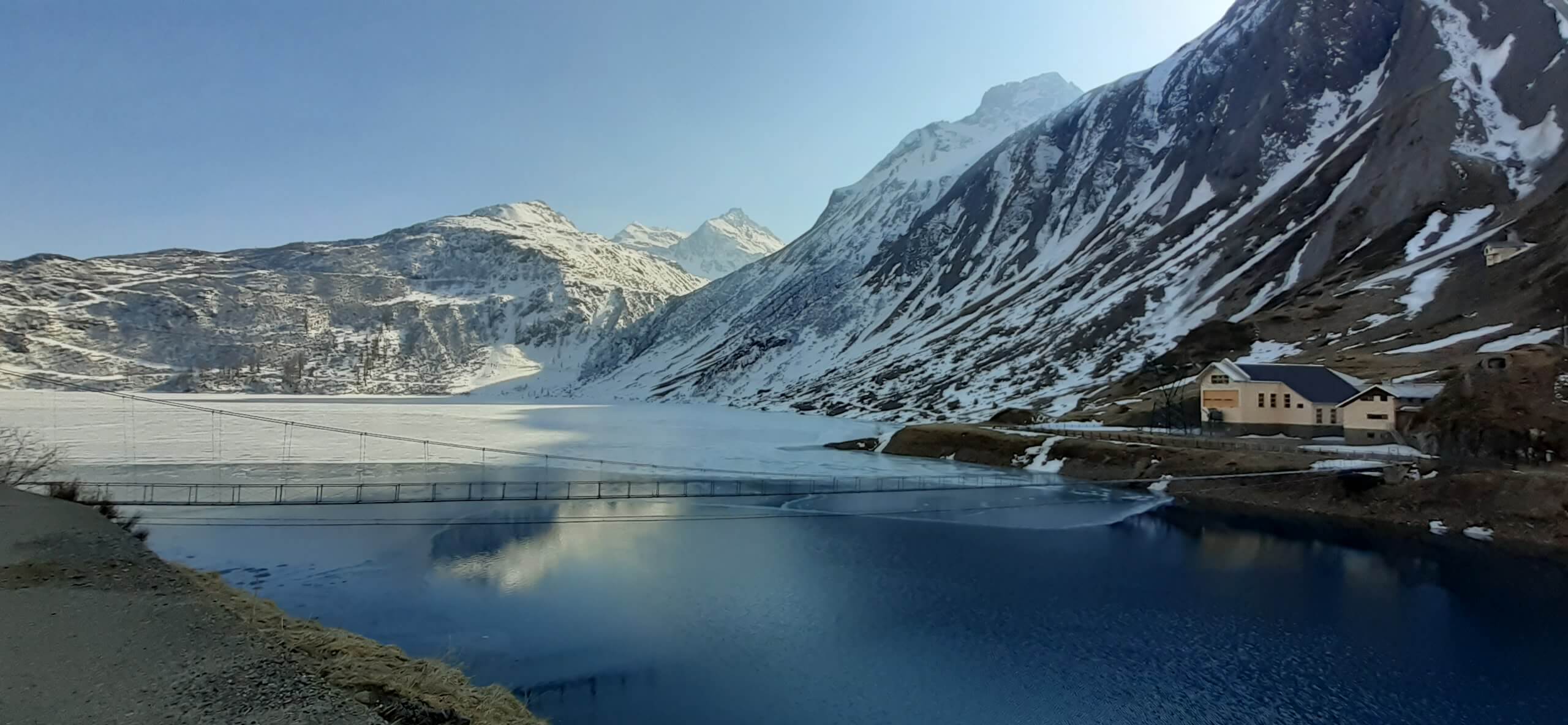 Inizia il weekend e finalmente riusciamo a organizzare e a partire per 2 giorni con il nostro camper! Parcheggiamo il camper a Passo (790 m), frazione del comune di Premia, perché a Riale le temperature scendono ancora sotto lo zero di notte e l’ area sosta camper sotto la Diga del Lago di Morasco è ancora destinata alla pista da sci di fondo. Sabato mattina ci spostiamo e raggiungiamo il piccolo borgo di Riale (1730 m). Saliamo lungo il versante del Lago Kastel (le indicazioni sono sempre presenti) seguendo tutti i numerosi e lunghi tornanti (la “direttissima” presenta un mix di neve, fango e terra; la neve lungo i tornanti invece è poca ma battuta, quindi molto più agevole). Arriviamo al bivio Kastel/Toggia e prendiamo a destra fino alla Diga del Lago Kastel (2230 m)…. il Lago Kastel è stupendo come al solito e, sulla riva, si vedono i primi accenni di scongelamento! Percorriamo il versante a destra della diga fino alla piccola chiesetta… panorama super! Torniamo alla diga e scendiamo fino alla riva… foto su foto e poi ci apprestiamo a scendere in direzione del Rifugio Maria Luisa (2150 m) e poi saliamo alla Diga del Lago Toggia (2190 m). Il disgelo al Lago Toggia è già iniziato e, al centro del lago, si può ammirare una “macchia di un blu intenso” dell’ acqua che fuoriesce dal ghiaccio e dalla neve! Qui ci fermiamo a mangiare il nostro panino e poi scendiamo di nuovo verso il Rifugio Maria Luisa (2150 m) e, dopo essere passati dal bivio Kastel/Toggia, facciamo una piccola deviazione per raggiungere il piccolo Laghetto Effimero poco distante… anche lui in scongelamento e davvero bellissimo! Riprendiamo i lunghi e numerosi tornanti che ci riportano a Riale (1730 m). Il percorso non finisce qui; decidiamo di raggiungere il versante opposto al Kastel e salire anche alla Diga del Lago di Morasco (1820 m), dalla quale ci incamminiamo lungo tutto il versante a destra della diga fino alla fine del lago. Anche qui possiamo ammirarne il disgelo, soprattutto nella sua parte finale. Torniamo poi all’ inizio della diga e iniziamo la discesa prima fino a Riale (1730) e poi al parcheggio. Giornata spettacolare con un percorso molto molto lungo ma davvero stupendo… 3 laghi… 3 disgeli differenti l’ un l’ altro ma tutti e 3 da rimanere senza parole… oggi uno spettacolo dietro l’ altro!