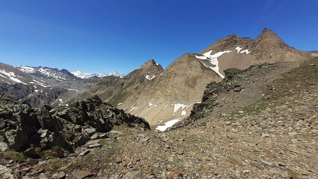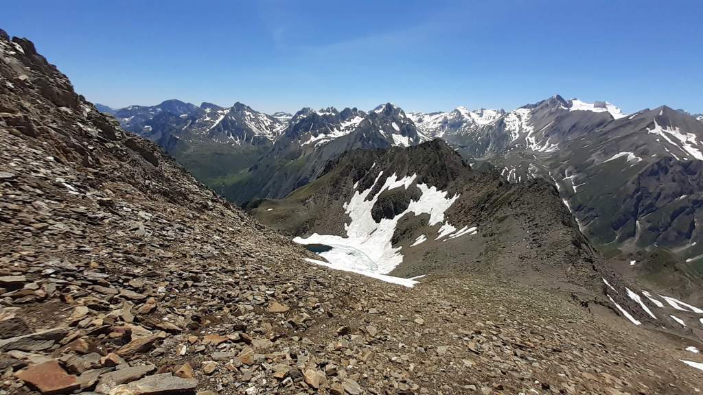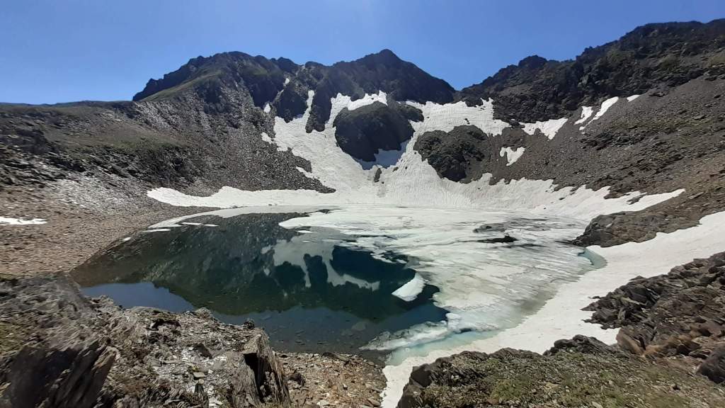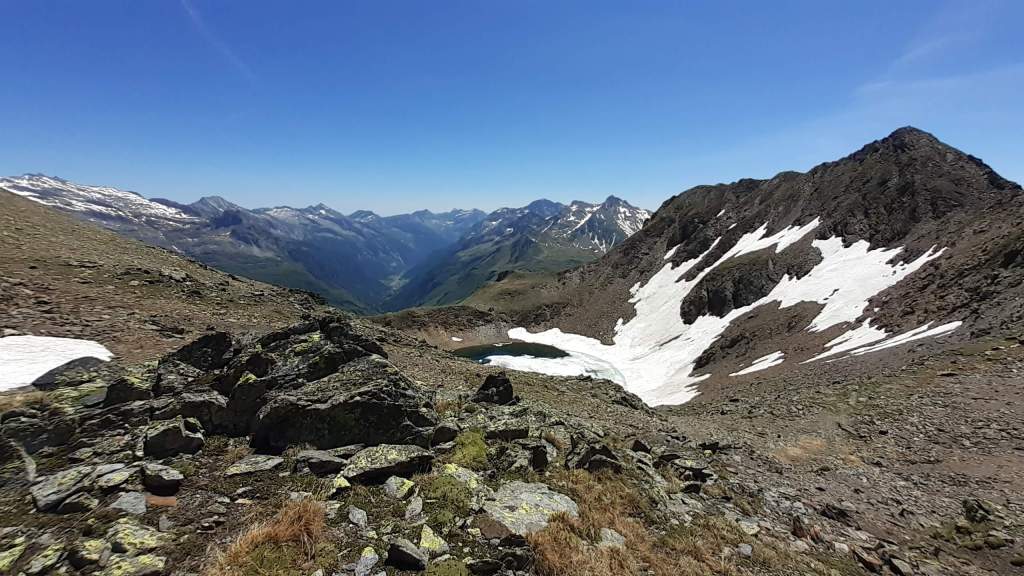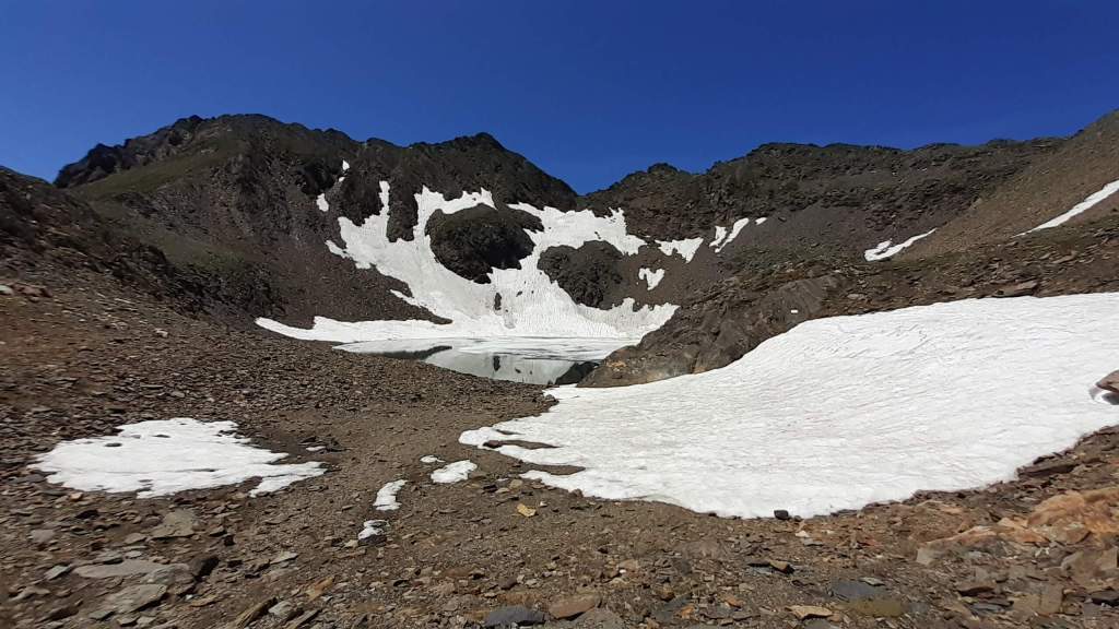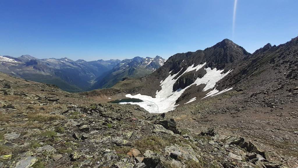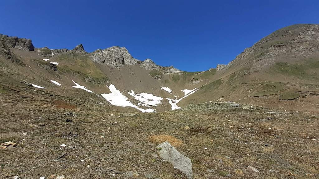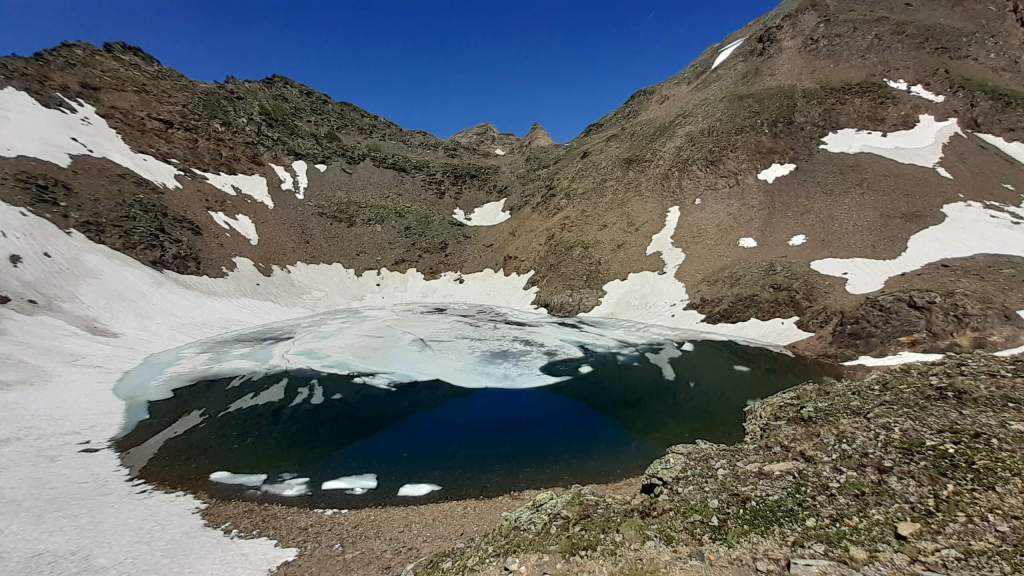 Oggi siamo in Val Formazza! Partiamo da Riale (1740 m) e iniziamo a salire sul versante del Kastel. Arriviamo al bivio Kastel/Toggia e seguiamo a sinistra la strada che ci porta al Rifugio Maria Luisa (2150 m). Subito dopo il rifugio, parte un piccolo sentiero sulla sinistra… lo prendiamo e iniziamo a salire nella Piana di Valrossa, ampia e stupenda. In prossimità della piccolissima dighetta guadiamo il torrente e continuiamo a salire su pendii sempre più ripidi ma erbosi/terrosi. Un su e giù continuo fino ad un lungo traverso che si mantiene sulla sinistra e che ci porta all’ ultimo tratto, che un po’ spiana e che arriva fino al bellissimo Lago Brunni (2680 m)… in parziale disgelo! Spettacolare!! Raggiungiamo diversi scorci e punti panoramici… foto su foto… e poi ci sediamo su alcune pietre per mangiare il panino. Decidiamo di salire anche al Corno Brunni, già ben visibile dal lago. Tenendo il Lago Brunni sulla sinistra, saliamo su sentiero stretto, passiamo un piccolo nevaio residuo, superiamo qualche tratto roccioso e pietroso ed eccoci ad una piccola bocchetta con un piccolo omino di pietra. Da qui inizia la salita vera e propria! Molto ripida, pendenza accentuata, tratti pietrosi/rocciosi che si alternano a tratti franosi… fino alla Vetta del Corno Brunni (2870 m)! E qui inizia lo spettacolo! Da qui il panorama è immenso : Lago di Morasco, Lago Kastel e Punta Kastel, zona del Passo San Giacomo, Cima di Valrossa, Punta d’ Elgio e tanti altri! Foto su foto e poi “attacchiamo” la discesa. Con molta attenzione e prudenza torniamo al Lago Brunni (2680 m)… qualche altra foto… e poi giù fino alla Piana di Valrossa, dove guadiamo ancora il torrente ed eccoci davanti al Rifugio Maria Luisa (2150 m). Da qui una tranquilla e panoramica discesa fino a tornare a Riale (1740 m). Giornata spettacolare in un ambiente superlativo!