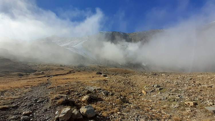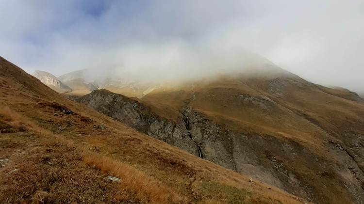 Discesa tra nebbia e nuvole fino al Lago di Morasco