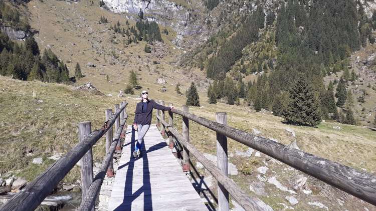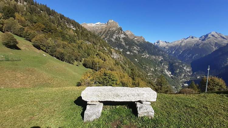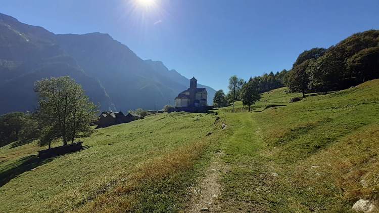 Ci svegliamo in una Riale soleggiata, ma molto molto ventosa. Decidiamo di scendere a Passo (790 m) (frazione di Premia), dove il vento è assente, il cielo sereno e un bellissimo sole. Parcheggiamo in prossimità dell’ inizio del percorso per Salecchio (indicato da un cartello). Saliamo su tornanti in asfalto, comodi ma con ripidità costante. Attraversiamo la galleria (circa 315 m) scavata nella montagna. (ATTENZIONE : la galleria non è illuminata, ricordatevi di portare una torcia!) Nell’ ultimo tratto si possono “tagliare” alcuni tornanti, procedendo su brevi direttissime nel bosco, fino ad arrivare a Salecchio Inferiore (1320 m). Abitazioni abbandonate, altre in ristrutturazione e una chiesa costituiscono questa piccola frazione walser. Proseguiamo oltre la chiesa e oltre le ultime costruzioni e saliamo su sentiero sempre comodo, ma un po’ ripido; passiamo una piccola cappella e arriviamo a Salecchio Superiore (1530 m). Il nucleo abitativo è più grande e più “attivo” e, sicuramente, più abitato (almeno nella stagione estiva). Camminiamo tra le case, i colori dei fiori esposti sui piccoli balconcini, il panorama stupendo sulle montagne; scattiamo tantissime foto e poi proseguiamo oltre. In breve arriviamo anche a Case Francoli (1570 m)… un piccolo abitato molto grazioso e molto caratteristico. Cerchiamo un posto isolato dove mangiare e poi, in prossimità del cartello che indica l’ Alpe Vova, scendiamo nel bosco per poi risalire verso la località I Motti (1600 m). Da lì prendiamo l’ ampia e comoda mulattiera che scende verso l’ Alpe Vova (1500 m)… una immensa piana con al centro un bellissimo ponte di legno. Camminiamo tra le poche case, ammirando tutte le montagne circostanti e poi ci prepariamo a tornare indietro, lungo lo stesso percorso dell’ andata. Quindi raggiungiamo di nuovo I Motti (1600 m), Case Francoli (1570), Salecchio Superiore (1530 m) dove ci fermiamo per una pausa-barretta. Lasciamo Salecchio Superiore e, lungo la strada per Salecchio Inferiore in prossimità del cartello che indica ‘Passo’, prendiamo a sinistra e scendiamo senza passare per Salecchio Inferiore. Intercettiamo la strada asfaltata che, seguendo i numerosi tornanti (passando di nuovo per la galleria “non illuminata”), ci riporta a Passo (790 m). Un’ altra stupenda giornata in montagna… con il valore aggiunto della storia, del passato e di quel tocco di arte che abbelliscono un paesaggio di per sé già unico e interessante.