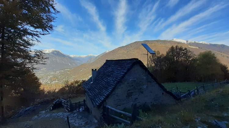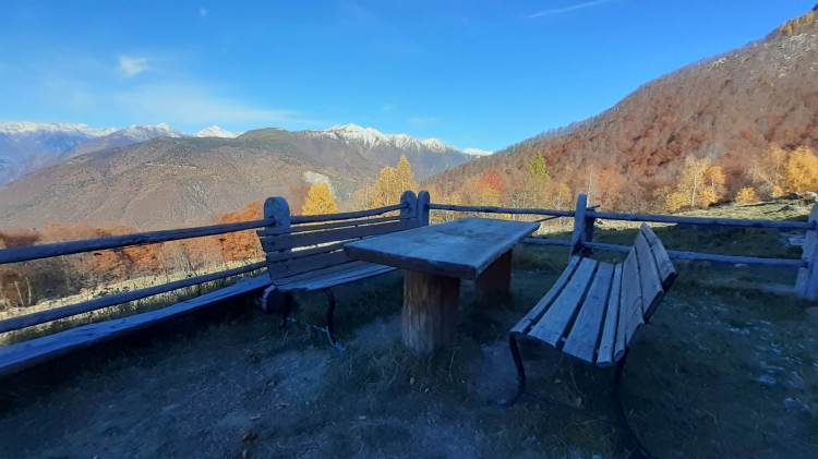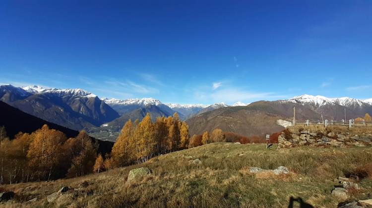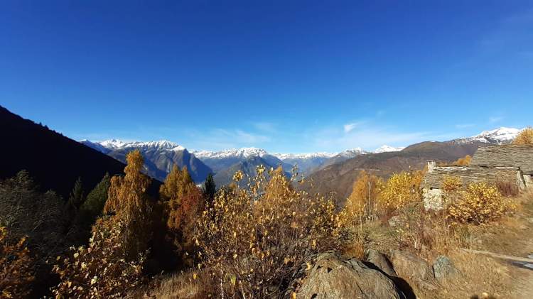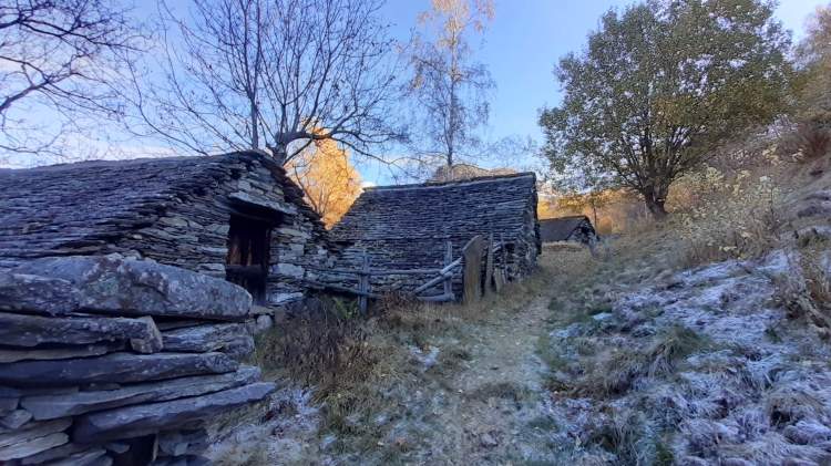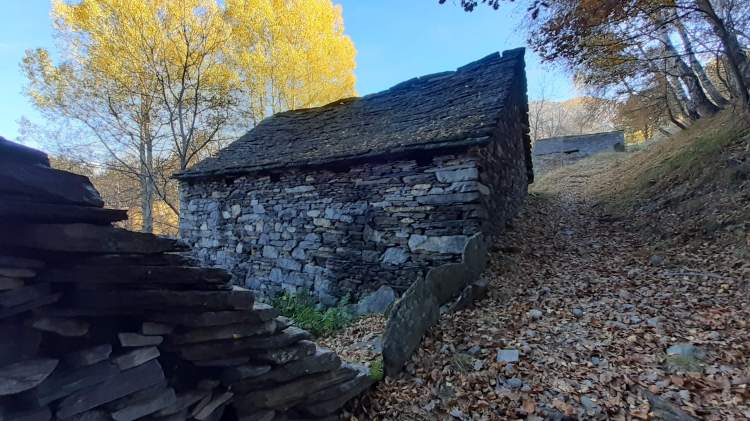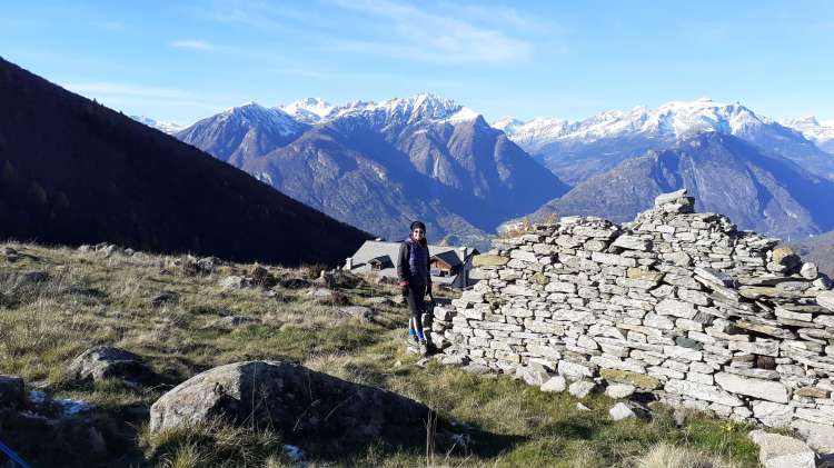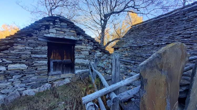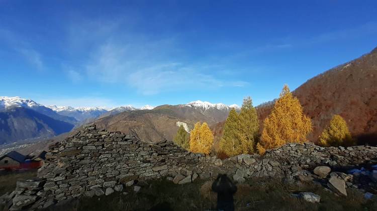 Stamattina salutiamo la Valle Antrona e ci dirigiamo in Val Vigezzo, precisamente a Trontano (500 m), dove parcheggiamo vicino alla Chiesa del paese. Da lì seguiamo i cartelli indicativi che riportano “Alpe Parpinasca/Rifugio Parpinasca” (sempre bene indicati) e decidiamo di salire lungo il percorso “Sentiero Natura” (una sorta di ‘direttissima’ che intercetta più volte i tornanti) che passa nel bosco e che ci porta all’ Alpe Faievo (980 m)… 3 o 4 ruderi abbandonati e vicino a uno di questi facciamo la nostra veloce pausa-pranzo (fa molto freddo!) Seguendo ancora le indicazioni per il Rifugio Parpinasca, passiamo accanto a una decine di baite in pietra, anch’ esse abbandonate, e da lì saliamo fino ad intercettare l’ ampio e comodo sentiero che ci porta fino all’ Alpe Parpinasca (1210/1230 m)… un bell’ alpeggio con varie baite e il Rifugio Parpinasca (chiuso). Giriamo tra le baite e scattiamo tante foto… il punto forte di questo luogo è sicuramente il panorama che spazia sulle bellissime montagne della Val d’ Ossola! Quando il sole scende dietro la linea delle montagne e il freddo si fa più pungente, ci apprestiamo a scendere. Torniamo all’ Alpe Faievo (980 m) lungo lo stesso percorso della salita e da qui decidiamo di scendere lungo i numerosi tornanti della strada ampia e comoda che si sviluppa un po’ su pietra, un po’ su sterrato e quasi tutta su asfalto. Eccoci di nuovo a Trontano (500 m) e, in poco, al nostro camper…. cenetta e poi si torna a casa, grati di questo weekend stupendo!