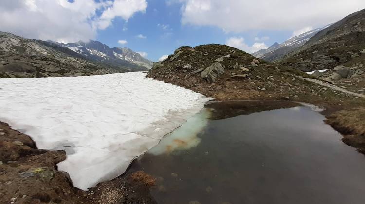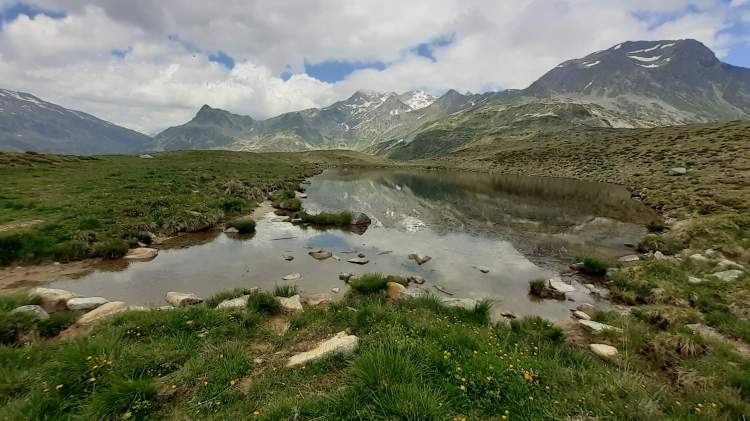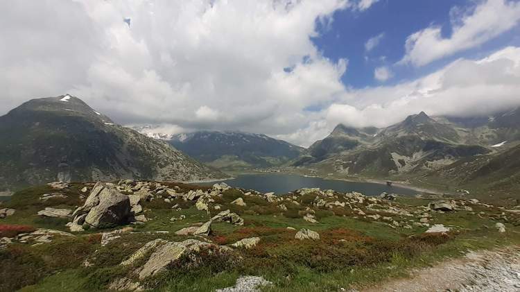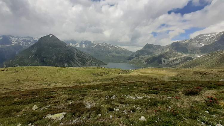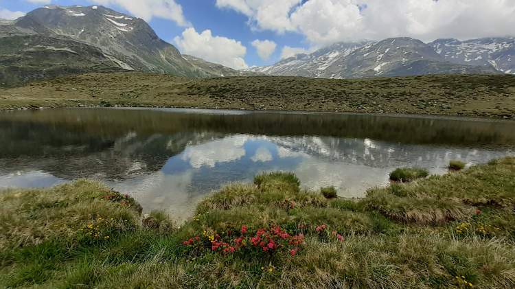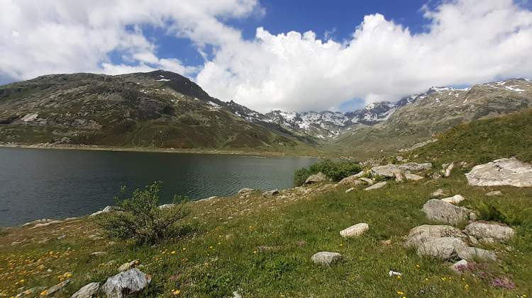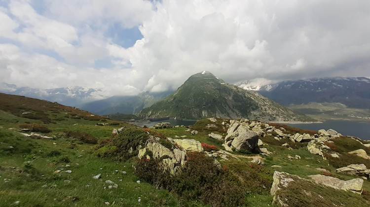 Inizia il secondo giorno a Montespluga! Oggi abbiamo in mente un percorso “tranquillo e facile” per “rilassare” e “defaticare” i muscoli delle gambe! Partiamo dal parcheggio dei camper e procediamo alla sinistra del Lago di Montespluga (1908 m); procediamo sotto il versante delle montagne, su sentiero (allontanandoci così dalla strada asfaltata). Passiamo per il torrente Suretta che scende a cascata nel lago… è davvero bellissimo! Continuiamo fino ad “intercettare” l’ ampia sterrata che sale con ampi “zig-zag”… sosta “obbligata” al “serpente di pietra” e poi si continua fino al bivio, dove prendiamo a destra e, in poco, siamo al bellissimo Laghetto degli Andossi (2070 m). Decine di foto, veloce pranzo su una roccia molto panoramica e poi proseguiamo sul vasto Altopiano degli Andossi, percorrendo un po’ la strada segnata e molto visibile e un po’ uscendo dal sentiero, camminando sulle “onde regolari” del terreno. Anche oggi si alza il vento… giacca anti-vento e si prosegue, mentre il sole e le nuvole giocano a rincorrersi. Assorbita più bellezza e più armonia possibile da questi meravigliosi luoghi, iniziamo a scendere, passando di nuovo per il torrente Suretta e poi direttamente al camper, davanti al bellissimo Lago di Montespluga (1908 m). E anche questa giornata è finita…. cena in camper e poi si torna a casa!