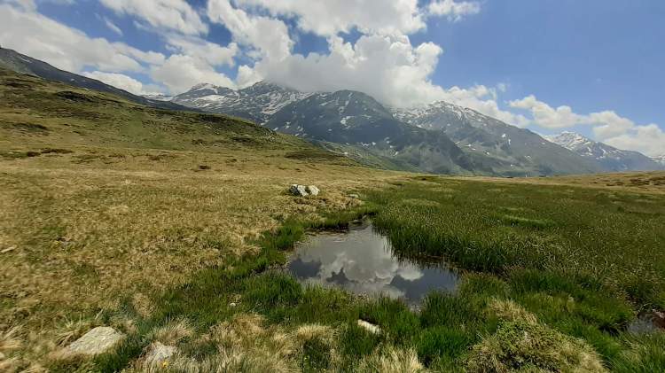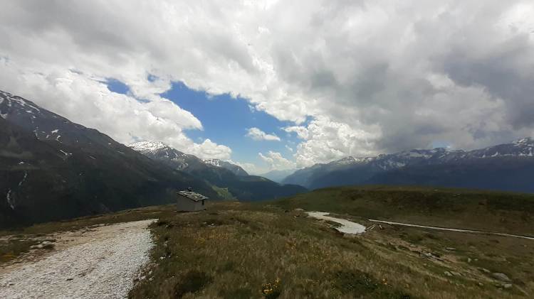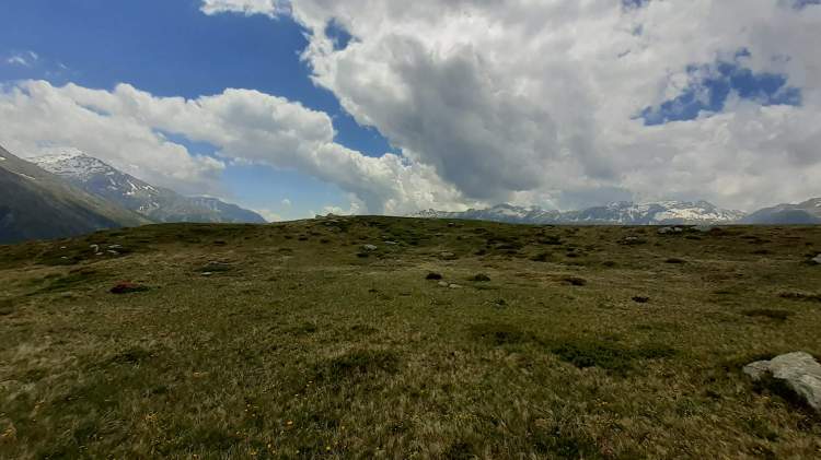 Hymer…. sei pronto? Scalda i motori!…. SI PARTE!! Questo weekend la nostra destinazione è Montespluga. Partiamo di sabato mattina presto e, arrivati a Montespluga (1908 m), parcheggiamo il camper subito dopo la diga, in un parcheggio sterrato sulla sinistra… in prossimità dell’ attacco del sentiero per il Lago di Emet. Raggiungiamo quest’ ultimo e iniziamo a salire. La prima parte è su ampia mulattiera sterrata (solo in alcuni punti franata… prestate attenzione!). In prossimità del bivio con i cartelli indicativi, prendere a sinistra e seguire la traccia del sentiero sempre visibile (il sentiero è più ristretto ma tenuto piuttosto bene… solo in pochi tratti può risultare un po’ disconnesso!) Proseguiamo fino al Lago di Emet (2145 m), che si manifesta subito in tutta la sua bellezza…. un meraviglioso specchio d’ acqua, di forma quasi circolare, al centro di montagne che, però, non si riflettono sulla superficie a causa del tempo non esattamente sereno… ma lo spettacolo è assicurato ugualmente! Foto, video… è impossibile ritirare cellulari e macchinetta fotografica negli zaini! Mangiamo nei pressi di un piccolo e vecchio alpeggio e poi saliamo lungo il sentiero che costeggia la parte sinistra del lago. Qui il percorso è più impegnativo e lo stato del terreno non sempre ottimale… proseguiamo fino ad arrivare al Passo di Niemet (2294 m)…. una sola parola… SPETTACOLO! Continuiamo anche oltre, su un tratto di cresta rocciosa, mentre si apre davanti ai nostri occhi un panorama sempre più bello e più affascinante… specchi d’ acqua, versanti rocciosi, ampi spazi di erba, vette, cime… bellissimo! Restiamo qui a fare foto e video… ma soprattutto ad ammirare tutto quello che ci circonda. Si alza ancora di più il vento e nuvoloni grigi iniziano ad avvicinarsi… meglio scendere! Raggiungiamo di nuovo il Lago di Emet (2145 m) e…. inizia a piovere!! Ci apprestiamo a scendere, mentre la pioggia accenna a smettere, per ricominciare solo durante l’ ultima parte del percorso… ma ormai siamo su comoda sterrata! Torniamo al camper e, con Hymer, ci spostiamo nell’ area sosta camper, prima dell’ abitato di Montespluga…. la giornata volge al termine.