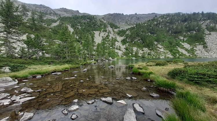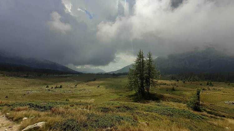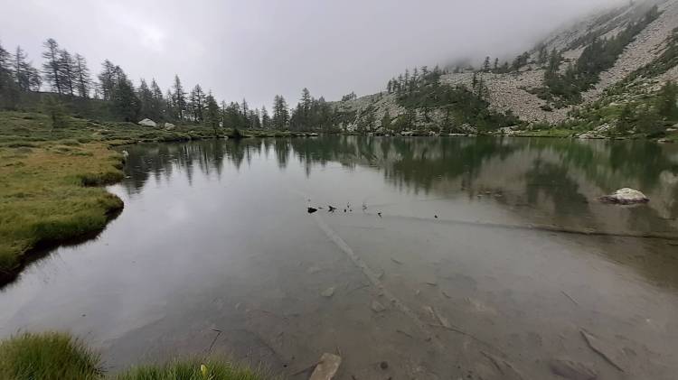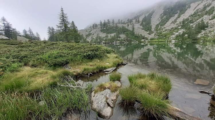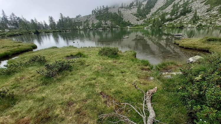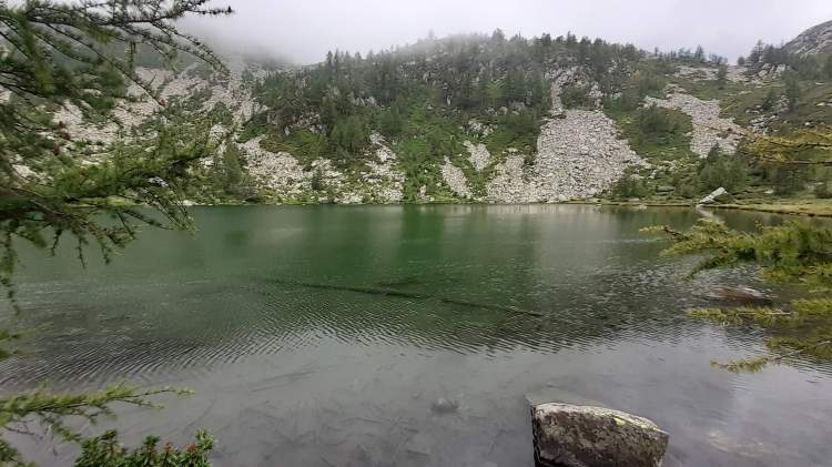 Oggi il tempo non è bellissimo… quindi scegliamo un percorso semplice, vario, con diverse tappe e che si può “modulare” in base all’ evoluzione del meteo. Andiamo in Val Bognanco! Parcheggiamo a San Bernardo (1630 m) e seguiamo le indicazioni per il Passo del Monscera. Arriviamo al ponte sul rio Rasiga e, poco dopo, saliamo a sinistra sulla “direttissima” nel bosco (si può anche procedere sui tornanti più numerosi ma più ampi e meno ripidi). Passiamo di fianco al Rifugio Il Dosso (1740 m) e continuiamo a salire lungo la gippabile sterrata che ci conduce fino a Quota 2000 (piccola montagnetta con monumento), all’ Alpe Monscera (2020 m) e poi, sempre su sterrata (a destra prosegue senza perdere quota), arriviamo al Lago del Monscera (2070 m). Non ci fermiamo subito ma proseguiamo, oltrepassato il lago, verso il Passo del Monscera (2100 m) che raggiungiamo poco dopo. Piccola pausa per le foto e poi scendiamo… il tempo mantiene ma non promette bene! Cerchiamo un posticino tranquillo al Lago del Monscera (2070 m) dove mangiamo mentre il sole, fino ad ora poco presente nel cielo, scompare quasi completamente. Ci domandiamo come continuare e decidiamo di raggiungere prima il Rifugio Gattascosa (1995 m) e poi il vicino Lago di Ragozza (1960 m). Il lago è davvero molto bello, anche se i colori non vengono esaltati a causa del brutto tempo… ma almeno non piove! Torniamo al Rifugio Gattascosa (1995 m) e poi ci fermiamo in prossimità dell’ Alpe Monscera (2020 m). Dobbiamo decidere se scendere subito o raggiungere il Lago di Agro… qualche minuto guardando il cielo coperto da nuvole e poi scegliamo di salire anche al Lago di Agro. Acceleriamo il passo su un sentiero adesso più stretto e ripido e non ci fermiamo nemmeno per le foto… meglio non allungare la salita, visto il tempo. Non ci impieghiamo molto ad arrivare al Lago di Agro (2000 m) che è stupendo… come al solito! Foto su foto e poi… si scende! Iniziano purtroppo le prime goccioline di acqua che, a poco a poco, si fanno più grosse e insistenti… fino a piovere parecchio! Giacca antipioggia e antivento… ma ad un certo punto dobbiamo aprire anche l’ ombrello! Scendiamo veloci ma stando attenti al percorso non agevole e, appena intercettata la comoda sterrata, smette di piovere e, dopo un po’, esce anche il sole! Rifugio Il Dosso (1740 m), ponte sul rio Rasiga e poi torniamo al parcheggio a San Bernardo (1630 m). Giornata non bella dal punto di vista atmosferico ma bella perché ricca delle emozioni che la montagna regala sempre.