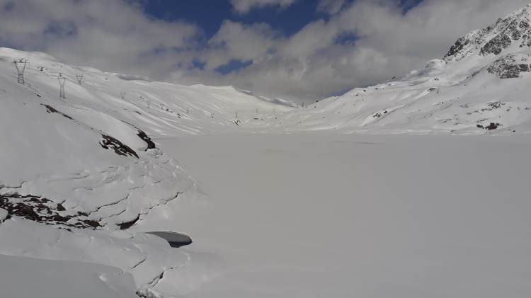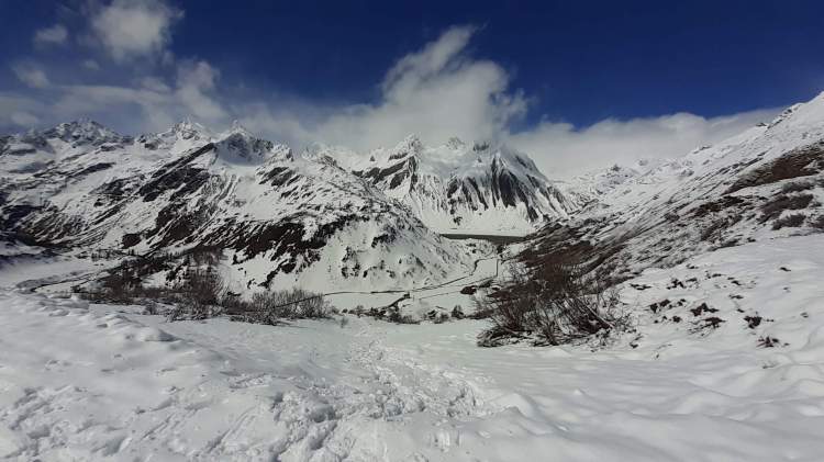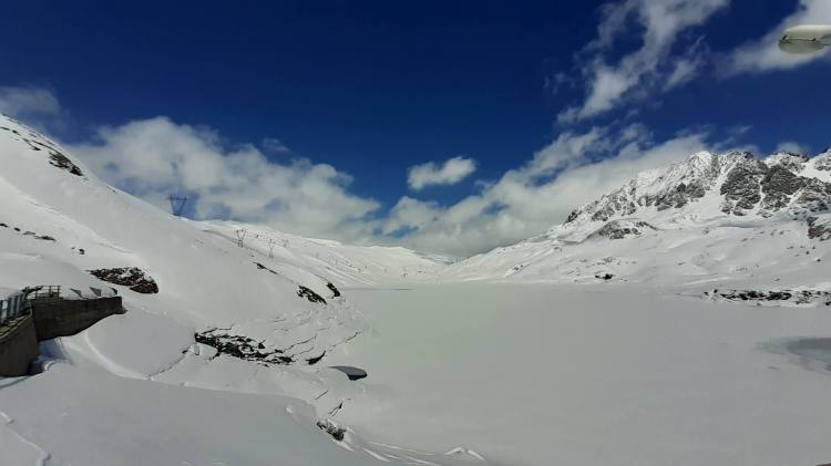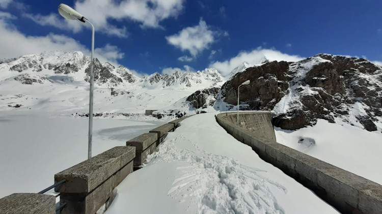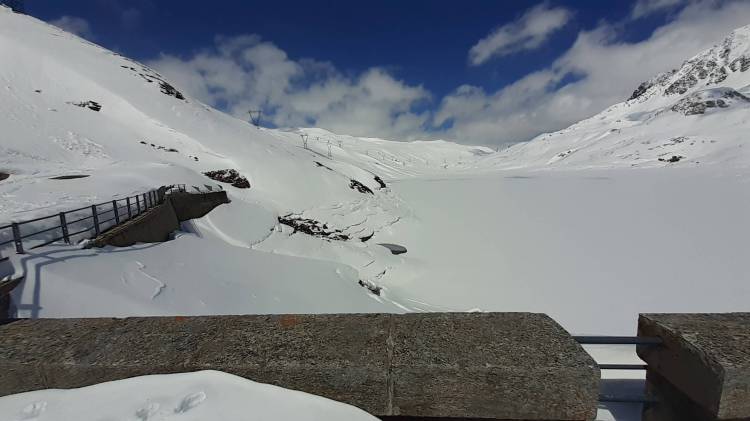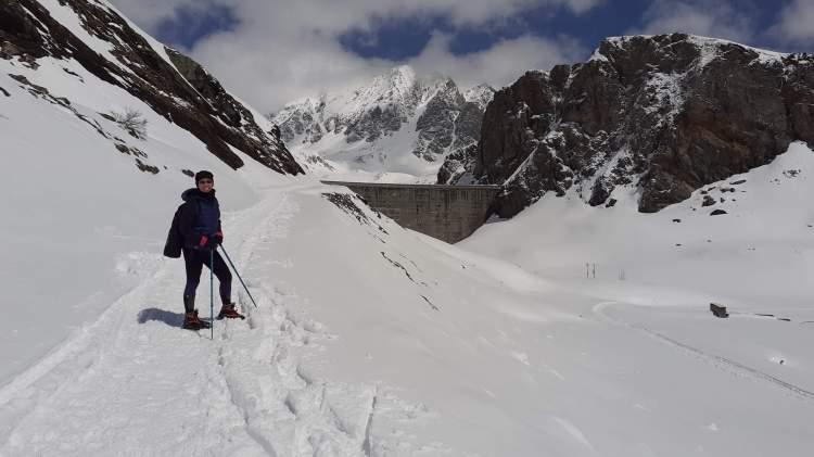 Oggi finalmente possiamo tornare in Piemonte! (la Lombardia e il Piemonte sono tornati in zona gialla e ci si può spostare anche fuori regione). La scelta cade sulla Val Formazza, partenza da Riale verso il Lago Toggia e il Lago Kastel. Parcheggiamo prima del piccolo borgo di Riale (1720 m) (con tanta neve i parcheggi sono meno numerosi e non sempre agibili). Raggiungiamo l’ attacco del percorso che, seguendo numerosi e ampi tornanti, porta al Rifugio Maria Luisa (indicato bene). Decidiamo di salire lungo la ‘direttissima’ che taglia i primi lunghi tornanti (tenete presente che è abbastanza ripida e non sempre segnata; io l’ ho percorsa dopo avere infilato i ramponi). Diverse soste di ammirazione… il panorama è sempre bellissimo… ogni volta! Scattiamo tantissime foto e poi raggiungiamo l’ ampio percorso, pieno di neve ma battuto bene, che ci porta prima al Rifugio Maria Luisa (2150 m) e poi sulla Diga del Lago Toggia (2190 m). Qui ci fermiamo a mangiare, mentre continua a soffiare a tratti il vento che ci ha accompagnato fin qui. Foto su foto al bellissimo Lago Toggia, ancora tutto bianco ma con un principio di scongelamento; poi, passando di nuovo davanti al Rifugio Maria Luisa, ci dirigiamo verso il Lago Kastel (bene indicato). La salita è abbastanza impegnativa, perché la neve è davvero tanta, fresca e intatta… si sprofonda fino a metà gamba quasi ad ogni passo! (qui le ciaspole sarebbero servite di sicuro molto di più dei ramponi!) Arriviamo finalmente alla Diga del Lago Kastel (2230 m)! Anche il Lago Kastel si presenta ai nostri occhi coperto di bianchissima neve… stupendo! Proseguiamo solo per alcune decine di metri lungo il versante a destra della Diga, facendoci ancora strada su tantissima neve intatta! Ultime foto al panorama e poi scendiamo, seguendo però tutti i tornanti ampi e comodi. Diverse soste per altre foto e poi ci avviciniamo al bellissimo borgo di Riale (1720 m) e, infine, raggiungiamo la nostra macchina. Siamo tornati in Val Formazza… siamo tornati sulle montagne del Piemonte!