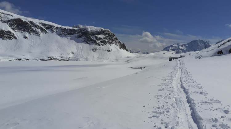 CONSIGLI come tutti i percorsi in montagna anche questo va affrontato con il giusto allenamento fisico e con la giusta attenzione. Questo percorso non presenta particolari difficoltà; tenete presente che la ‘direttissima’ che da Riale porta al Rifugio Maria Luisa è abbastanza ripida e la presenza di neve la rende più impegnativa (io l’ ho percorsa con i ramponi), ma si possono seguire tranquillamente i tornanti che, anche se più lunghi, sono più ampi e più comodi e in alcuni tratti non presentano più neve (io li ho percorsi in discesa). Il percorso per salire al Lago Kastel presenta ancora parecchia neve, anche fresca, che fa sprofondare quasi ad ogni passo fino a metà gamba! (in questo caso sarebbero servite molto di più le ciaspole).