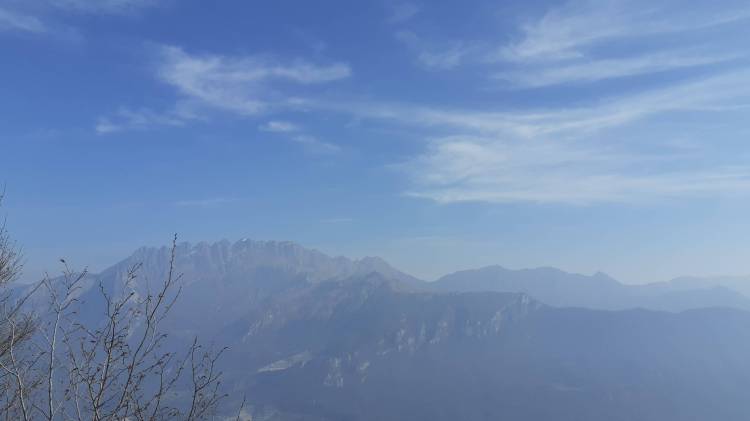 Oggi torniamo nel Triangolo Lariano, precisamente nel Parco Naturale del Monte Barro… abbiamo in programma un percorso costituito da varie tappe, tutte interessanti e differenti tra loro. Arriviamo al parcheggio in prossimità della Baita degli Alpini (630 m) e, seguendo per alcuni tornanti la strada asfaltata, arriviamo all’ Eremo del Monte Barro (720). Prendiamo il sentiero dietro l’ Eremo e saliamo, mantenendo sempre la vetta del Monte Barro davanti ai nostri occhi. Raggiungiamo la Sella dei Trovanti (780 m); la prima parte del percorso è su sentiero sterrato, poi iniziano i passaggi su roccette, ma mai eccessivamente esposti o difficili. Arriviamo così alla vetta del Monte Barro (922 m) e il panorama comincia ad aprirsi al nostro sguardo… Le Grigne, il Monte Resegone, i Corni di Canzo, il Monte Cornizzolo, il Lago di Como e i Laghi più piccoli della Brianza. Mangiamo su una roccia e poi ci apprestiamo a percorrere la spettacolare Cresta (la Via delle Creste) che unisce il Monte Barro al Monte San Michele. La prima discesa verso il Primo Corno (820 m) è piuttosto impegnativa (in un paio di passaggi abbastanza verticali, senza corde e con pochi appigli abbiamo dovuto improvvisare!… ma ce l’ abbiamo fatta!) Così continuiamo verso il Secondo Corno (790 m), il Terzo Corno (720 m) e, continuando con i saliscendi, raggiungiamo anche la vetta del Monte San Michele (820 m). Il panorama che ci ha accompagnati fin qui ha dell’ incredibile : cime, vette, spuntoni di roccia, guglie, laghi… l’ unica cosa che lo annebbia è la “perenne foschia” quasi sempre presente! Ma nemmeno la foschia riesce ad oscurare la bellezza di questo luogo meraviglioso. E poi torniamo indietro… ma il nostro programma non è ancora finito! Passiamo di nuovo per il Terzo Corno, il Secondo Corno e, al bivio, prendiamo il sentiero diretto per la Sella dei Trovanti e poi per l’ Eremo del Monte Barro. Da qui seguiamo le indicazioni per le Torri Gote e, in poco, siamo al principio del Sentiero delle Torri (ovvero il muro lungo oltre 1 km (definito ‘muraioo’) che costituiva la linea di difesa del versante sud del Monte Barro intervallato da 3 torri, delle quali oggi ne sono visibili 2 – l’ ultima Torre, la Torre 3, si trova a 680 m di altitudine). Lo percorriamo tutto, facendo tappa alle due Torri Gote, dalle quali il panorama sui laghi è superlativo! In seguito torniamo all’ Eremo del Monte Barro e ci concediamo una lunga pausa sulla terrazza panoramica, aspettando il tramonto. Con lo sguardo pieno di immagini bellissime torniamo alla macchina, pronti per rientrare a casa.