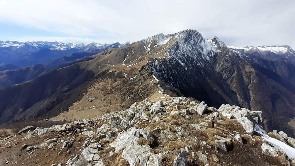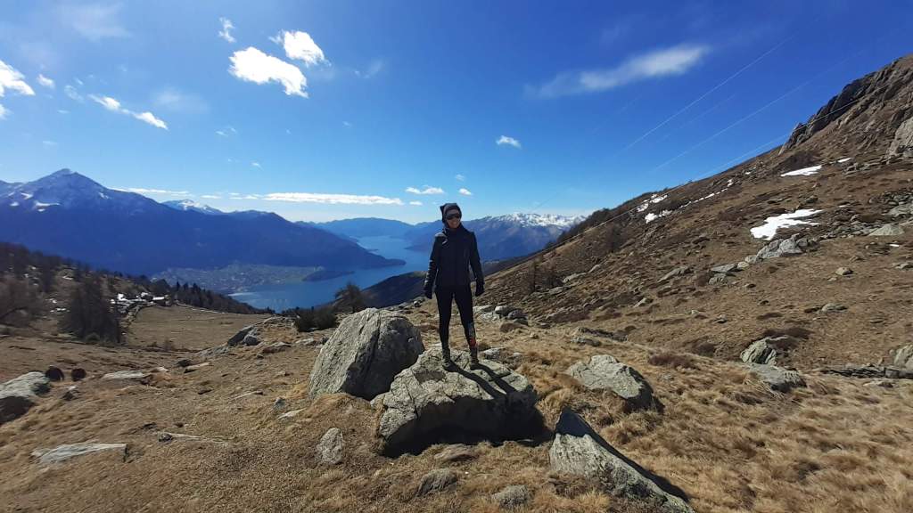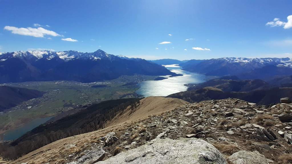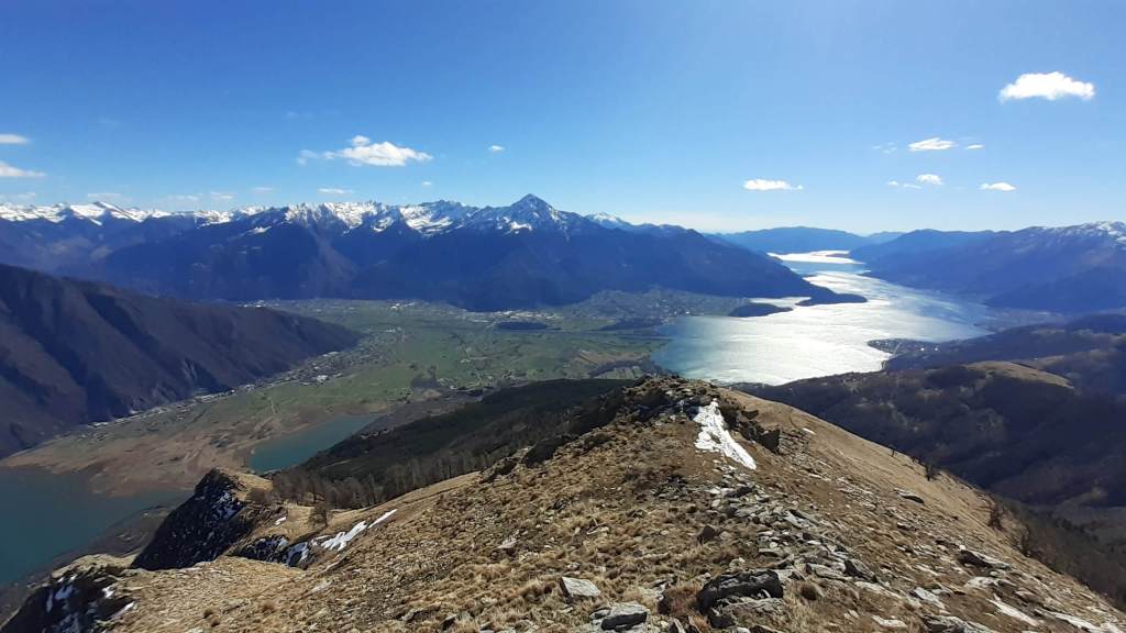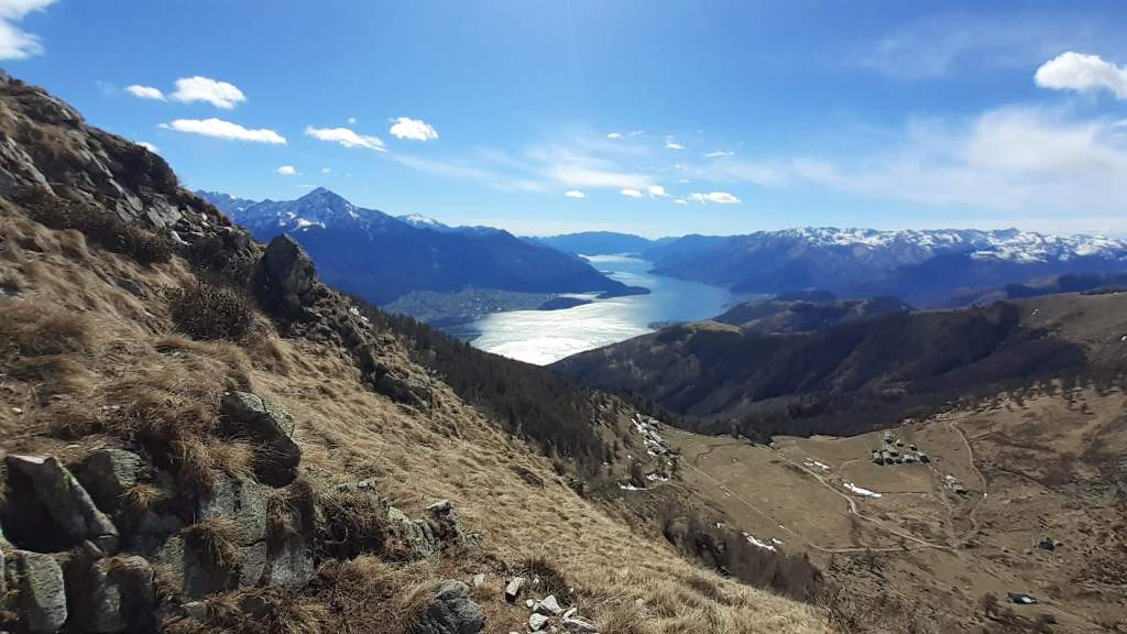 Oggi straordinario trekking “lago e monti”. Partiamo da Bugiallo (620 m) e, su comodo percorso, raggiungiamo San Bartolomeo (1030 m). Da qui proseguiamo fino all’ Alpe Predapiatta (1440 m) e poi all’ Alpe di Mezzo (1540 m). I panorami sono già molto belli! Piccola sosta fotografica a questo caratteristico alpeggio e poi saliamo ancora fino alla Bocchetta di Chiaro (1670 m), dove si trova anche un’ altalena gigante stupenda e da qui il panorama è eccezionale! Pausa panino e poi iniziamo a percorrere la cresta ovest per la vetta del Monte Berlinghera… percorso non semplice, ripido, disconnesso e presenta tratti di neve e ghiaccio. Passando per un’ anticima con una croce, arriviamo sulla Vetta del Monte Berlinghera (1930 m)! Spettacolare! Sosta foto e di ammirazione all’ immenso panorama che abbiamo intorno a noi! Per scendere decidiamo di percorrere la cresta sud (un po’ meno impegnativa, ma con alcuni tratti non semplici) fino all’ Alpe Pescedo (1550 m) e poi all’ Alpe di Mezzo (1540 m). Da qui scendiamo lungo lo stesso percorso della salita fino a tornare a Bugiallo (620 m). Giornata favolosa lungo un percorso entusiasmante in ambienti davvero spettacolari!