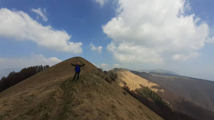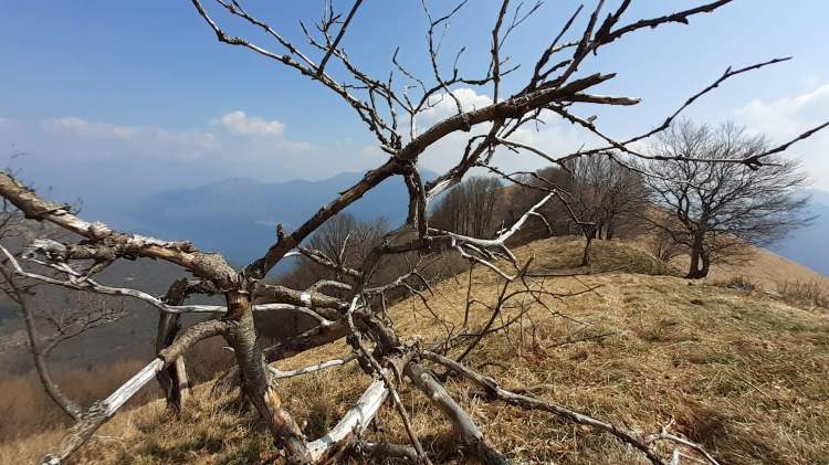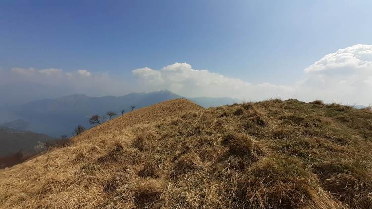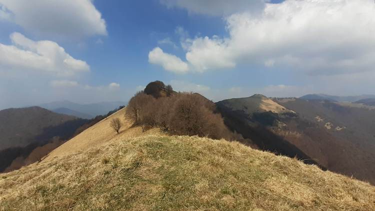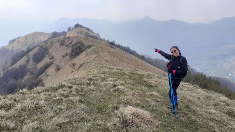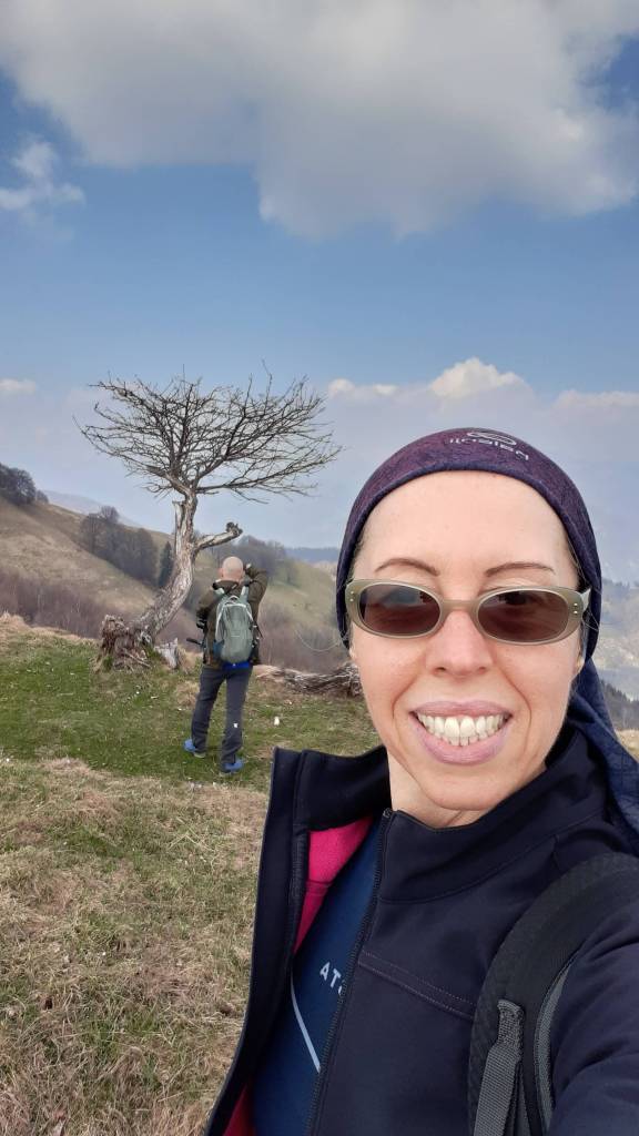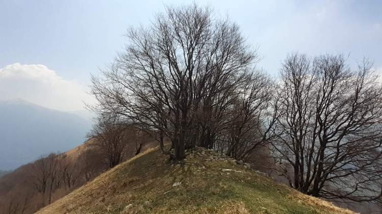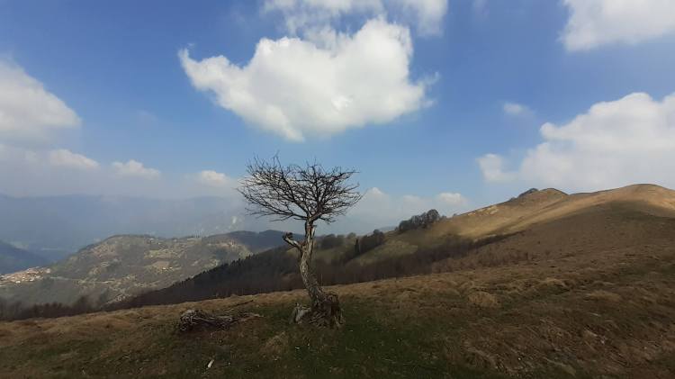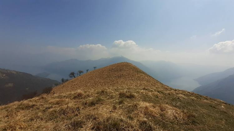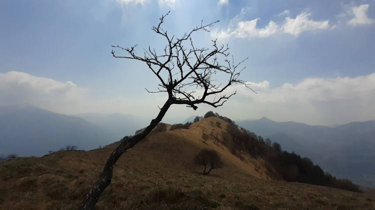 Oggi scegliamo un percorso semplice, ma molto bello e panoramico… e per noi nuovo!! Raggiungiamo la Valle Intelvi, precisamente la cittadina di Pigra e poi il Rifugio Alpe Colonno, dove parcheggiamo alla Bocchetta di Colonno, in prossimità delle 2 bolle (1324 m). Da lì parte subito il percorso, ovvero si inizia a salire verso la grande croce già molto visibile, sopra all’ Alpe Colonno. In poco raggiungiamo la vetta di questa piccola montagnetta con la croce (la chiamo io così perché non ha un nome) (1360 m). Lasciamo la croce alle nostre spalle e prendiamo il sentiero che “introduce” la cresta erbosa che toccherà le nostre 3 vette (già molto visibili anche da lì). Con alcuni piccoli saliscendi raggiungiamo il Monte Costone (1441 m), formato da due alture una vicina all’ altra, tra le quali è posta una panca in legno. Il panorama si apre in modo stupendo e quella che pensavamo fosse una salita “tranquilla” e dai modesti panorami si sta rivelando una salita molto bella, divertente, interessante e dai panorami splendidi!!… qui di modesta c’è solo l’ altitudine!! Proseguiamo e, dopo una perdita di quota di circa 120 m (che andrà poi riguadagnata), raggiungiamo il Monte Sertore (1393 m) con una piccola croce molto caratteristica e abbellita da piccoli tasselli colorati. Foto su foto e poi si prosegue… ci sono alcuni passaggi tra radici, alberi e “tronchi solitari” che, oltre a conferire unicità ad un ambiente già molto bello, risultano decisamente fotogenici! Superati questi tratti, eccoci in prossimità della bandiera e della croce… e siamo sul Monte Pasquella (1331m)! Sosta un po’ più lunga, consumiamo il nostro spuntino e poi si torna indietro. Proseguiamo tranquillamente lungo lo stesso percorso dell’ andata, assaporando il silenzio e la pace assoluta… ci siamo solo noi! Quindi… Monte Sertore (1393 m), poi di nuovo sul Monte Costone (1441 m) e poi sulla piccola montagnetta con la croce (1360 m). Ultima breve discesa ed eccoci alla Bocchetta di Colonno (1324 m) e alla nostra macchina. Un’ altra giornata splendida in compagnia delle montagne… lungo un percorso che ci ha sorpreso piacevolmente e che ha superato ogni nostra aspettativa!