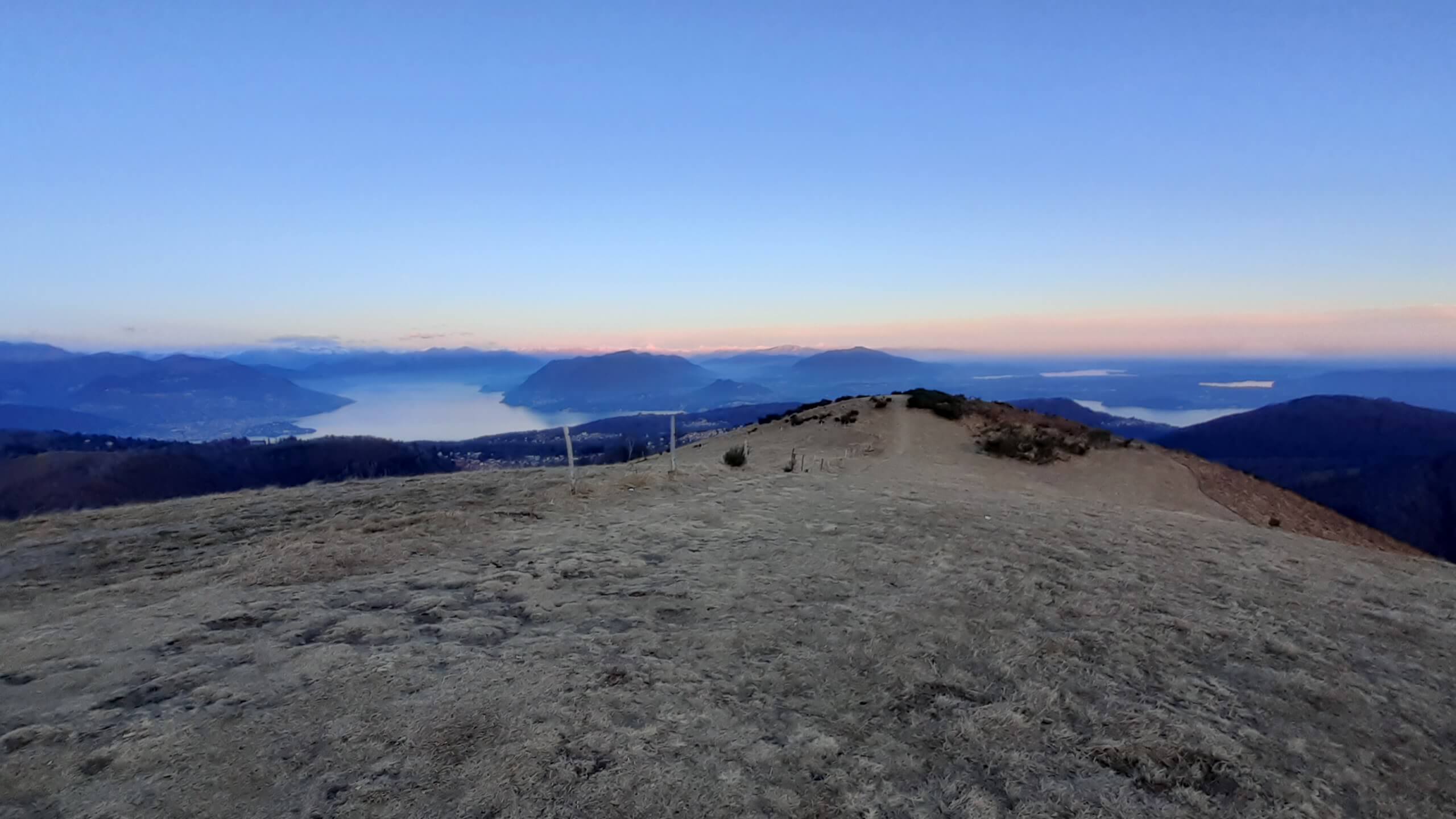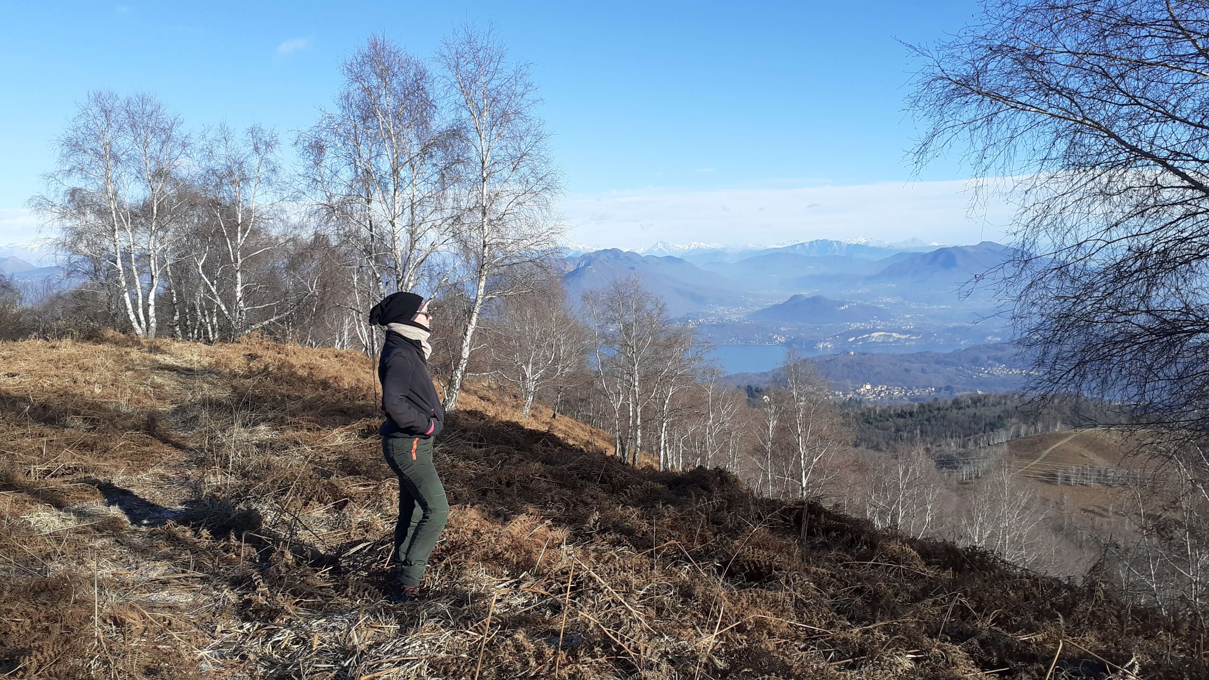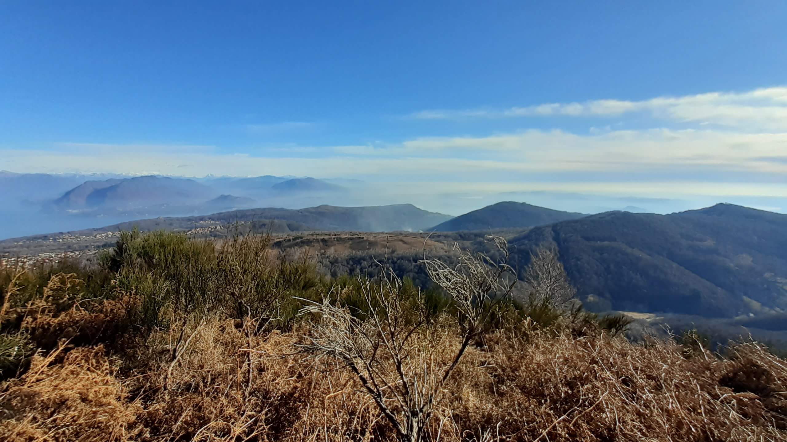 Oggi ci manteniamo a quota un po’ più bassa per evitare di prendere il “vento a raffiche”! Andiamo nella zona tra il Lago Maggiore e il Lago d’ Orta, nel “Gruppo del Mergozzolo”, vicino al Mottarone. Arriviamo a Coiromonte e parcheggiamo all’ ingresso del paesino, prima della chiesa (800 m). Da qui, guardando verso la chiesa, giriamo a destra e proseguiamo su asfalto per qualche centinaio di metri, fino ai cartelli che indicano il Monte Falò (Le Tre Montagnette). La salita è piuttosto tranquilla e semplice, il dislivello è contenuto e sempre costante fino “ai piedi del Monte Falò” dove un cartello ci indica la vetta, costituita da una anticima e 3 piccole vette arrotondate con grande panorama sul Lago Maggiore e sulle montagne circostanti (Mottarone compreso). Raggiungiamo tutte le vette del Monte Falò (Le Tre Montagnette vanno dai 1065 m ai 1085 m) e poi torniamo “ai piedi del Monte Falò”, dove prendiamo a destra, verso il lato del Mottarone. Arriviamo al bivio con le panchine (a sinistra si sale al Mottarone, a destra al Motton Salé) e seguiamo il percorso che va a destra fino all’ Alpe Nuovo (946 m) e poi, superando un piccolo ponte venuto giù (si guada senza problemi un po’ più in là… attenzione alle foglie che nascondono il guado!) e poi proseguiamo fino ad un bivio che prende il nome de Il Termine (1002 m). Qui il sentiero per il Motton Salé è coperto dalle foglie e non ben visibile… bisogna tenere la destra e salire mantenendosi all’ interno del bosco fino a quando si esce dal bosco e ci si trova “ai piedi del Motton Salé”. Non esiste un vero e proprio percorso per la sua vetta… solo alcune deboli tracce di erba “calpestata” che indica la strada, tra foglie ed erba secca, a volte alta oltre un metro. Arriviamo finalmente alla vetta del Motton Salé (1090 m) e qui ci fermiamo a mangiare. Il panorama è ampio… sul lago, sulle montagne e anche su tutta la “cresta delle Tre Montagnette del Monte Falò” davanti a noi. Scendiamo poi lungo lo stesso percorso… bivio Il Termine (1002 m), Alpe Nuovo (946 m), bivio con le panchine e di nuovo “ai piedi del Monte Falò”. Non è tardi ma il tramonto è alle porte, quindi decidiamo di salire nuovamente sul Monte Falò, fino alla Seconda delle Tre Montagnette (1085 m) per ammirare il tramonto. Purtroppo il vento, che è stato quasi assente per tutta la giornata, comincia con raffiche piuttosto forti, potenti e sempre più insistenti; indossiamo altri strati di abbigliamento per coprirci, ma ci fermiamo solo il tempo del principio del tramonto per scattare diverse foto e poi scendiamo molto velocemente. “Ai piedi del Monte Falò” il vento smette perché entriamo nel bosco e, quindi, siamo al riparo dalle raffiche; così scendiamo molto tranquillamente e semplicemente fino a a tornare a Coiromonte (800 m). Percorso lungo ma giornata all’ insegna della natura (a volte anche un po’ wild!) e della bellezza delle montagne!
