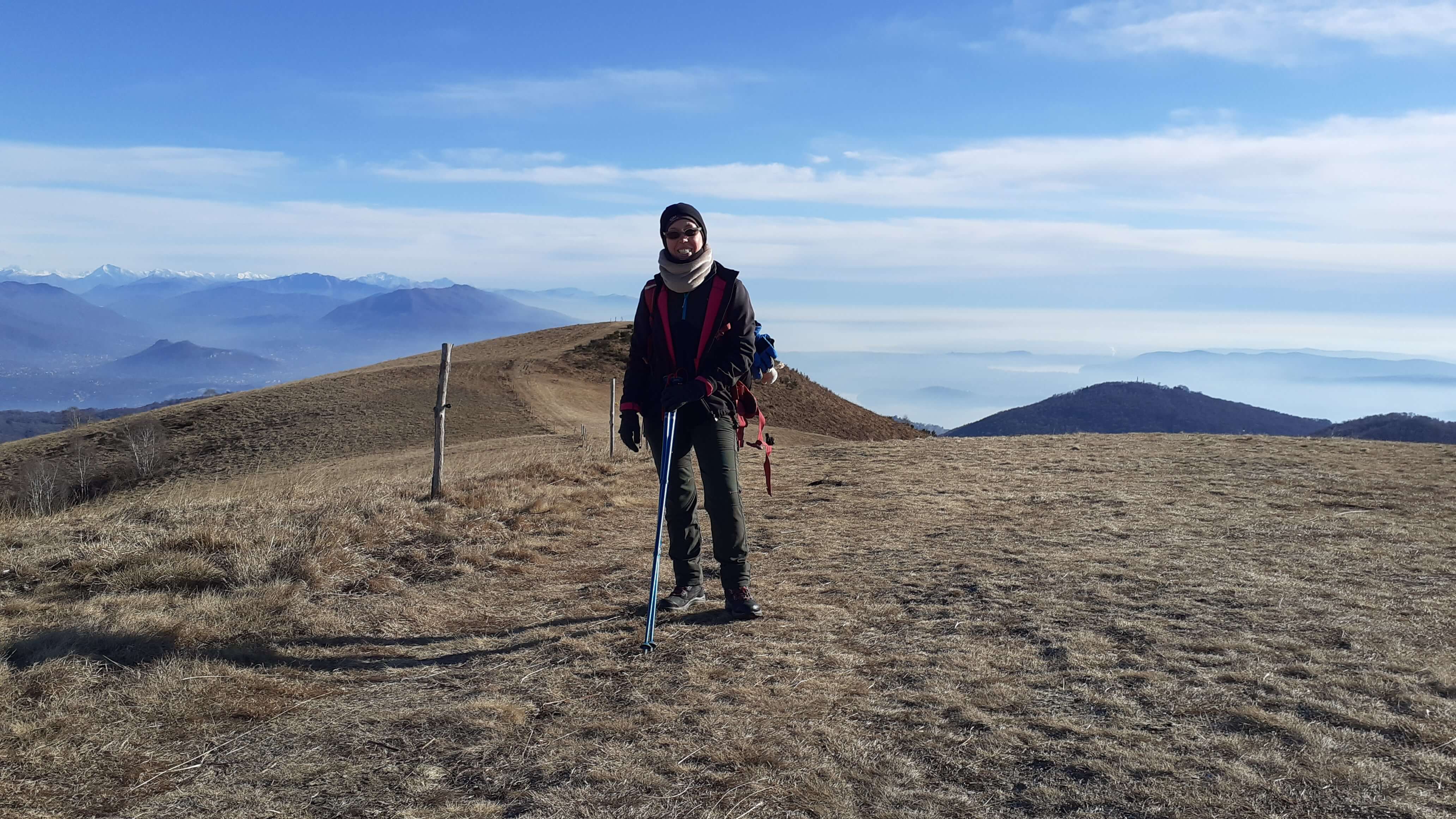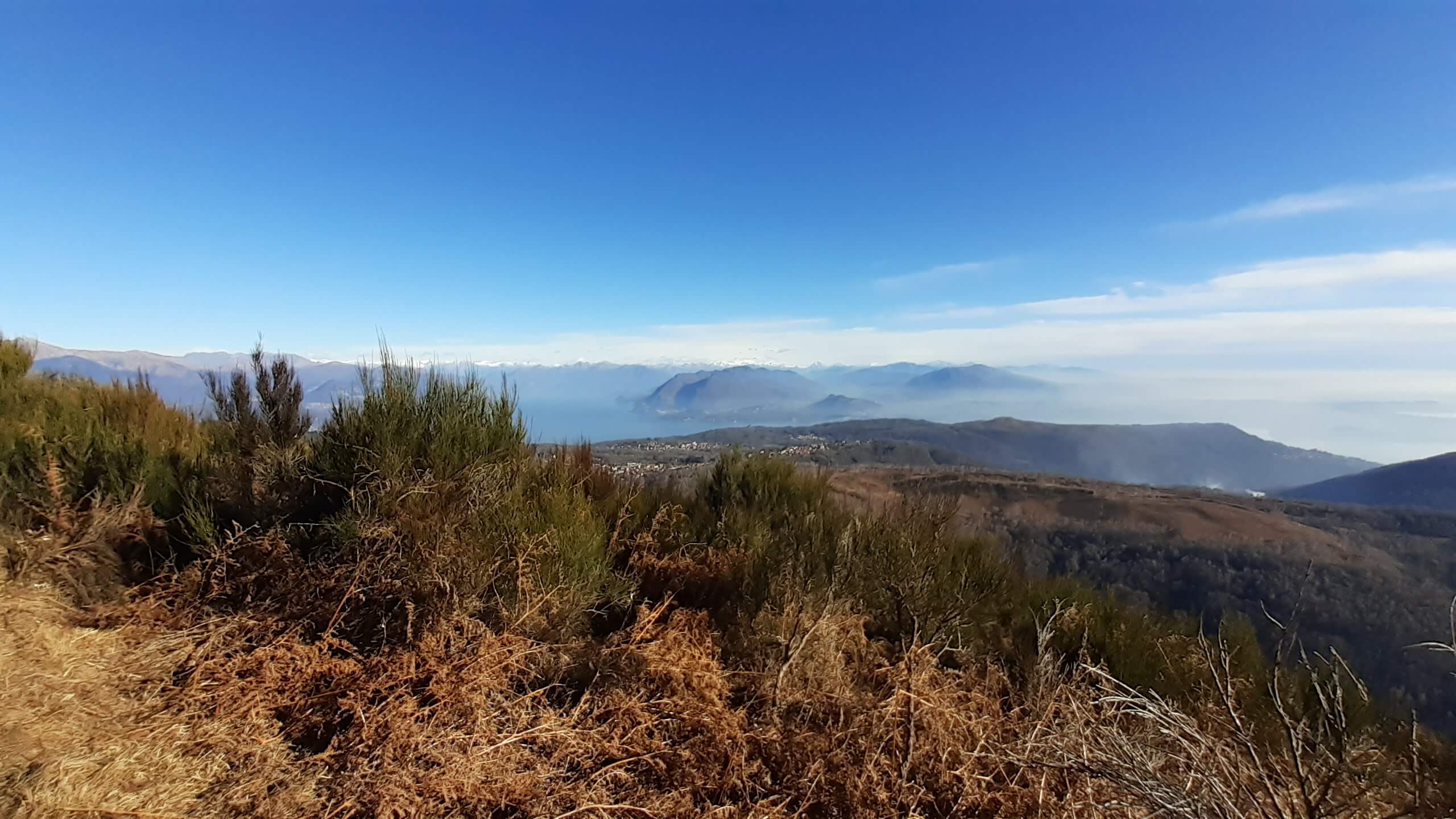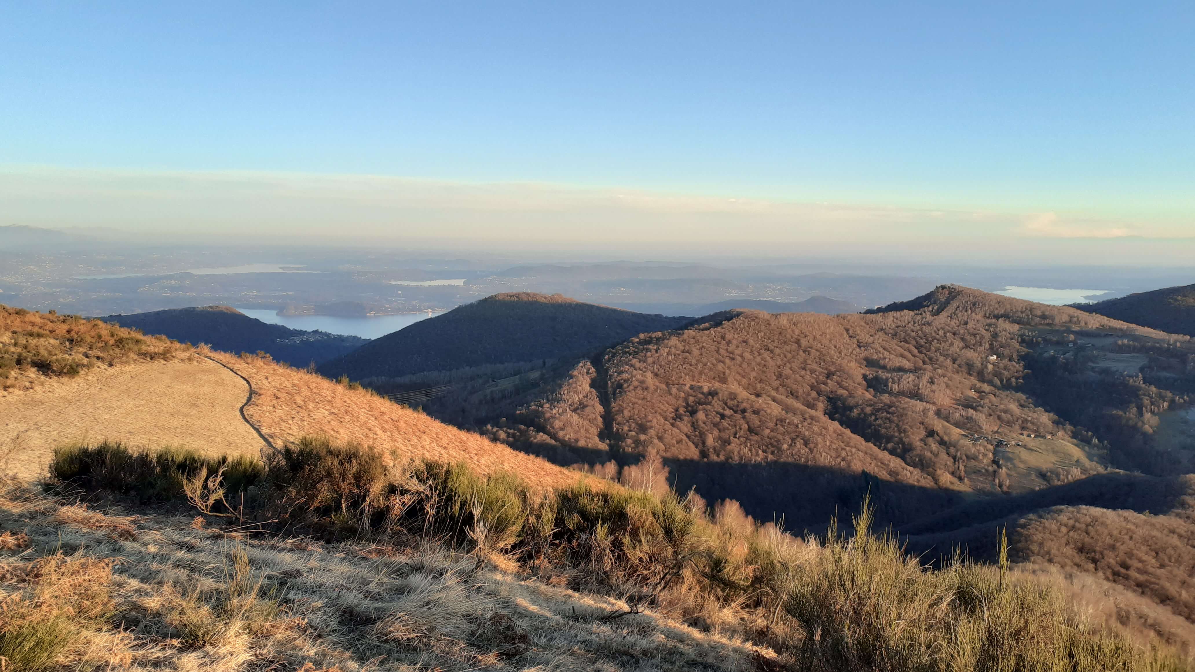 Oggi ci manteniamo a quota un po’ più bassa per evitare di prendere il “vento a raffiche”! Andiamo nella zona tra il Lago Maggiore e il Lago d’ Orta, nel “Gruppo del Mergozzolo”, vicino al Mottarone. Arriviamo a Coiromonte e parcheggiamo all’ ingresso del paesino, prima della chiesa (800 m). Da qui, guardando verso la chiesa, giriamo a destra e proseguiamo su asfalto per qualche centinaio di metri, fino ai cartelli che indicano il Monte Falò (Le Tre Montagnette). La salita è piuttosto tranquilla e semplice, il dislivello è contenuto e sempre costante fino “ai piedi del Monte Falò” dove un cartello ci indica la vetta, costituita da una anticima e 3 piccole vette arrotondate con grande panorama sul Lago Maggiore e sulle montagne circostanti (Mottarone compreso). Raggiungiamo tutte le vette del Monte Falò (Le Tre Montagnette vanno dai 1065 m ai 1085 m) e poi torniamo “ai piedi del Monte Falò”, dove prendiamo a destra, verso il lato del Mottarone. Arriviamo al bivio con le panchine (a sinistra si sale al Mottarone, a destra al Motton Salé) e seguiamo il percorso che va a destra fino all’ Alpe Nuovo (946 m) e poi, superando un piccolo ponte venuto giù (si guada senza problemi un po’ più in là… attenzione alle foglie che nascondono il guado!) e poi proseguiamo fino ad un bivio che prende il nome de Il Termine (1002 m). Qui il sentiero per il Motton Salé è coperto dalle foglie e non ben visibile… bisogna tenere la destra e salire mantenendosi all’ interno del bosco fino a quando si esce dal bosco e ci si trova “ai piedi del Motton Salé”. Non esiste un vero e proprio percorso per la sua vetta… solo alcune deboli tracce di erba “calpestata” che indica la strada, tra foglie ed erba secca, a volte alta oltre un metro. Arriviamo finalmente alla vetta del Motton Salé (1090 m) e qui ci fermiamo a mangiare. Il panorama è ampio… sul lago, sulle montagne e anche su tutta la “cresta delle Tre Montagnette del Monte Falò” davanti a noi. Scendiamo poi lungo lo stesso percorso… bivio Il Termine (1002 m), Alpe Nuovo (946 m), bivio con le panchine e di nuovo “ai piedi del Monte Falò”. Non è tardi ma il tramonto è alle porte, quindi decidiamo di salire nuovamente sul Monte Falò, fino alla Seconda delle Tre Montagnette (1085 m) per ammirare il tramonto. Purtroppo il vento, che è stato quasi assente per tutta la giornata, comincia con raffiche piuttosto forti, potenti e sempre più insistenti; indossiamo altri strati di abbigliamento per coprirci, ma ci fermiamo solo il tempo del principio del tramonto per scattare diverse foto e poi scendiamo molto velocemente. “Ai piedi del Monte Falò” il vento smette perché entriamo nel bosco e, quindi, siamo al riparo dalle raffiche; così scendiamo molto tranquillamente e semplicemente fino a a tornare a Coiromonte (800 m). Percorso lungo ma giornata all’ insegna della natura (a volte anche un po’ wild!) e della bellezza delle montagne!
