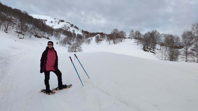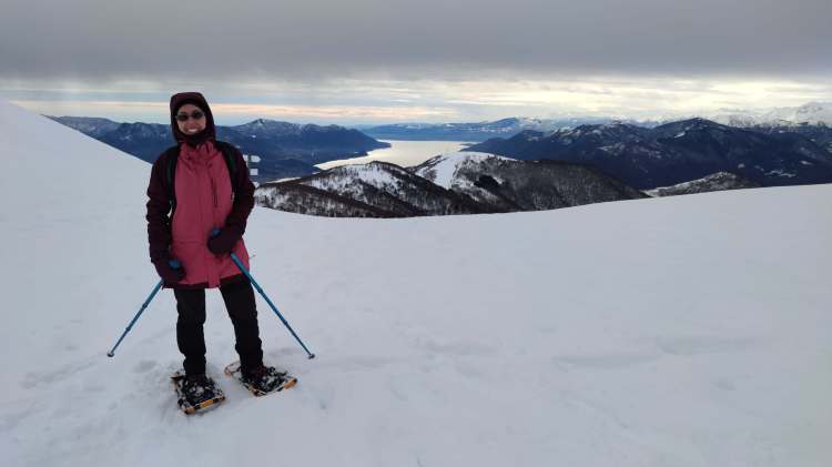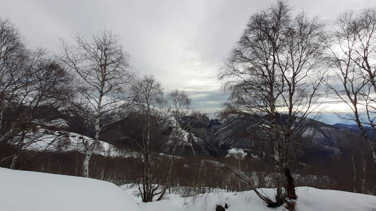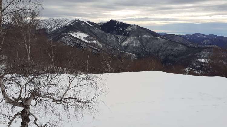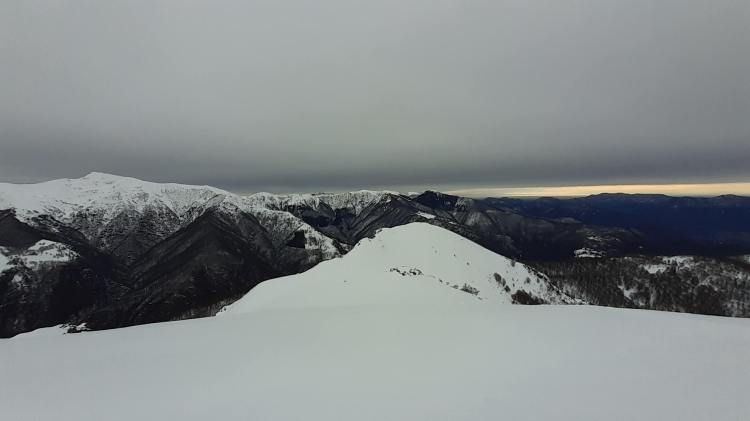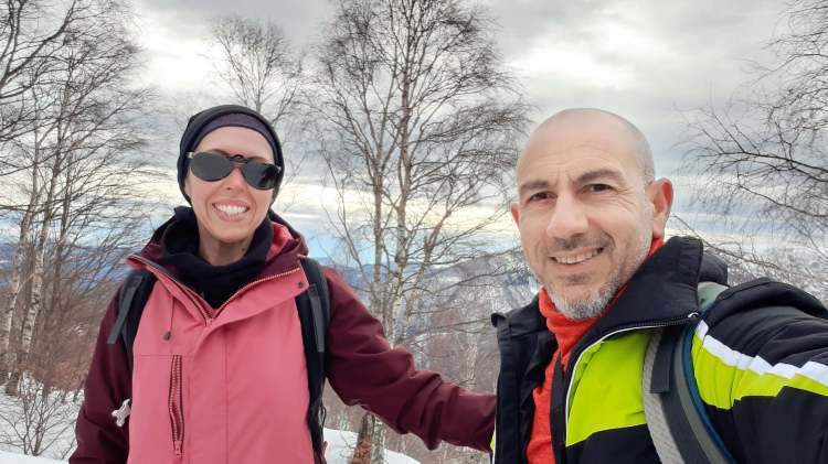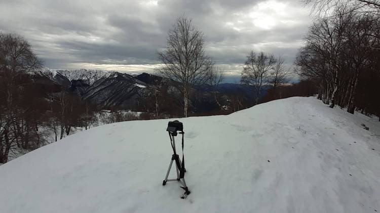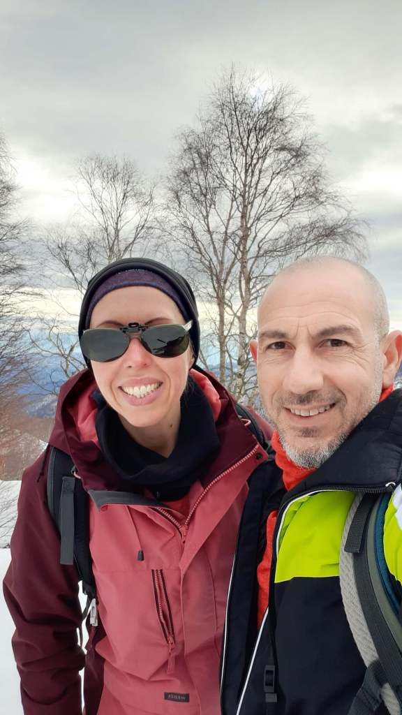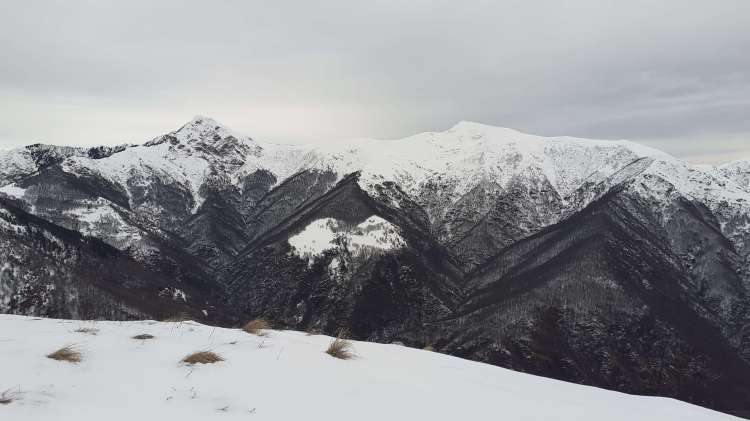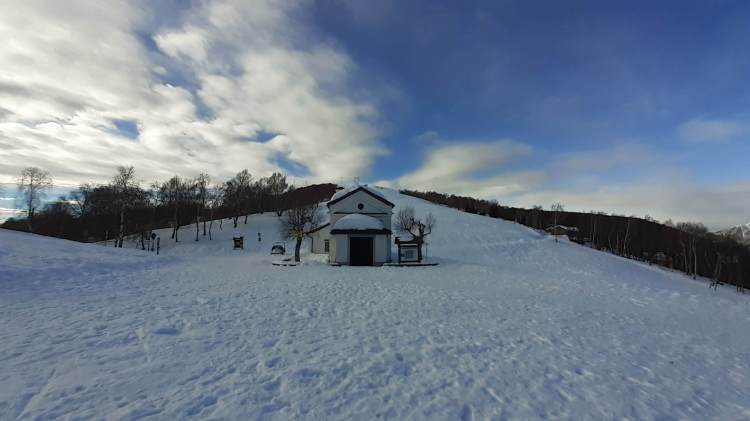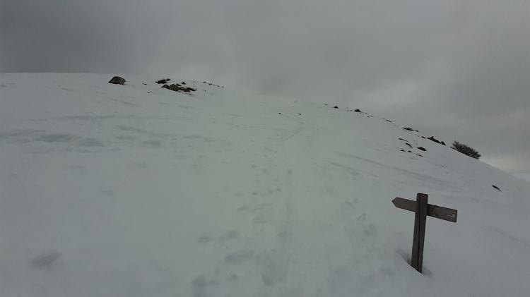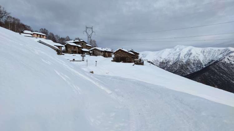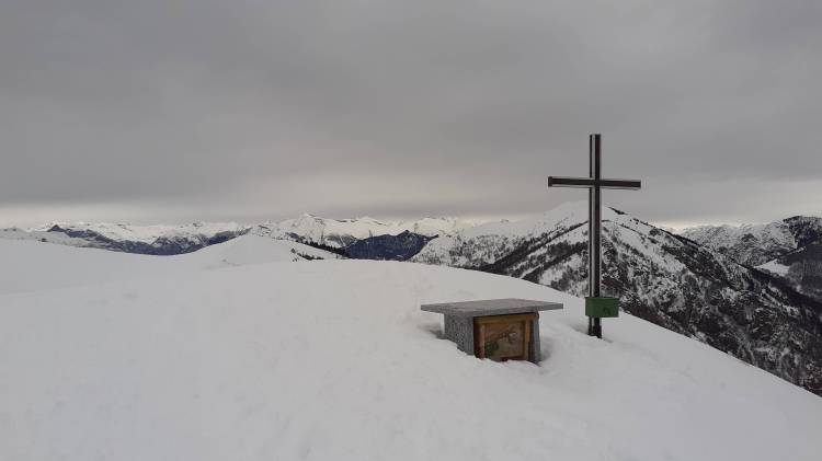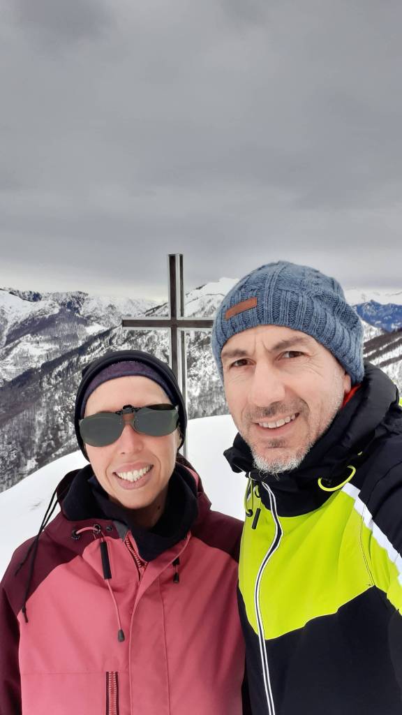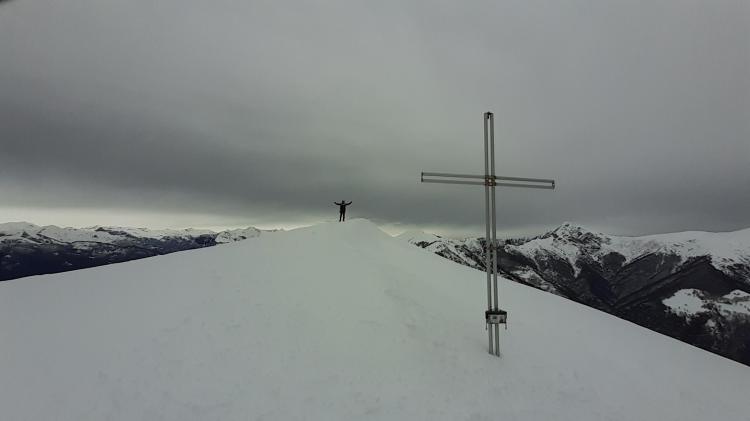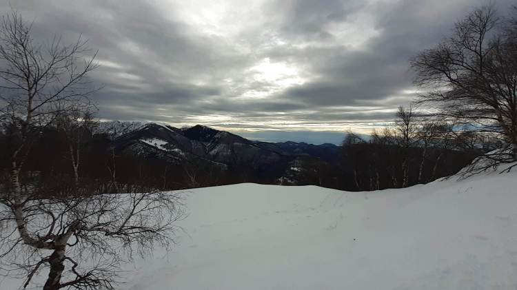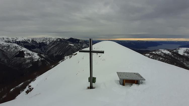 Dopo diverse settimane di “stop forzato”… torniamo in montagna! Dovendo rimanere in regione (Lombardia) decidiamo di raggiungere una valle che abbiamo frequentato poco… la Val Veddasca. Arriviamo al Passo della Forcora, dove parcheggiamo la macchina e raggiungiamo la piccola chiesetta del Passo della Forcora (1190 m). Tenendo la chiesetta alle spalle, si deve salire sul pendio di destra. Quasi subito il percorso si fa abbastanza ripido, ma mai eccessivamente e la neve è della consistenza giusta per procedere tranquillamente con le ciaspole. Mantenendo sempre la ripidità costante, si arriva così alla prima vetta di oggi, il Monte Sirti (1340 m), dal quale si ha un bellissimo panorama. Piccola sosta per le foto e poi si riprende. Il percorso è a tratti ancora ripido e a tratti più pianeggiante, fino ad arrivare al Passo Fontanarossa (1394 m)… da qui si intravede il piccolo abitato di Monterecchio, da quale passeremo al ritorno. Invece adesso proseguiamo dritti verso il Monte Corbaro (o Sasso Corbaro). Il percorso diventa piuttosto ripido e, in alcuni tratti, bisogna procedere a zig-zag, cercando anche di seguire la traccia, che a volte risulta debole o coperta dalla neve più fresca… attenzione soprattutto ai tratti più esposti! Arriviamo così alla seconda vetta di oggi… il Monte Corbaro (o Sasso Corbaro) (1545 m) con la sua bellissima croce di vetta. Il panorama, anche se coperto da un tempo in peggioramento, si manifesta subito in tutta la sua bellezza… un’ alternanza di cime, vette, pendii e una visuale stupenda sul Lago Maggiore! Comincia a tirare anche il vento… veloce pausa pranzo e poi ci dirigiamo anche verso il Monte Covreto. Una prima discesa e una successiva salita (meno ripida di quello che sembrava!) ci portano sulla terza vetta di oggi, il Monte Covreto (1595 m), dove rimaniamo molto poco perché il forte vento non permette di prolungare la permanenza… il tempo di scattare qualche foto e poi giù, di nuovo verso la vetta del Monte Corbaro (1545 m). Salutiamo anche il Monte Corbaro e scendiamo, sempre sullo stesso ripido versante, fino al Passo Fontanarossa (1394 m). Qui prendiamo a sinistra in direzione “Monterecchio” dove arriviamo in poco tempo. Monterecchio (1350 m) è un piccolo e grazioso abitato di poche case che “emergono” dalla neve… davvero bellissimo! Piccola sosta fotografica; mangiamo anche una barretta e poi, su comoda e ampia mulattiera, scendiamo e arriviamo, in circa 40 minuti, fino alla chiesetta del Passo della Forcora (1190 m). Un percorso ad anello stupendo, panoramico e molto soddisfacente… un grandioso ritorno in montagna!