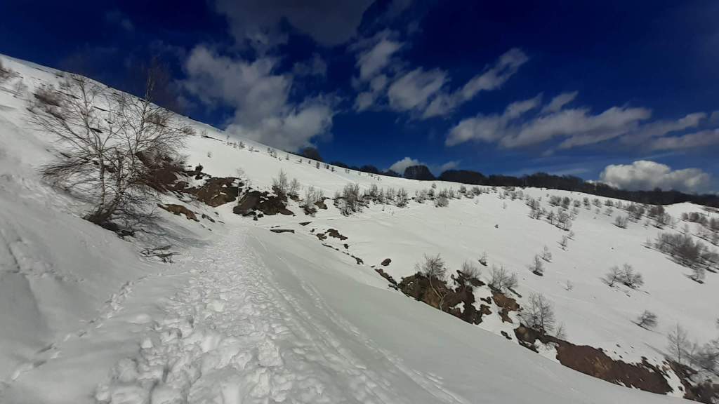 CONSIGLI come tutti i percorsi in montagna anche questo va affrontato con il giusto allenamento fisico e con la giusta attenzione. Questo percorso, di per sè, è semplice e non presenta difficoltà; ma la presenza della neve lo ha reso a tratti difficile e impegnativo : primo tratto con neve acquosa; secondo tratto con neve abbondante in cui si sprofonda; alcuni tratti dei tornanti (sempre su neve) risultano un po’ esposti.