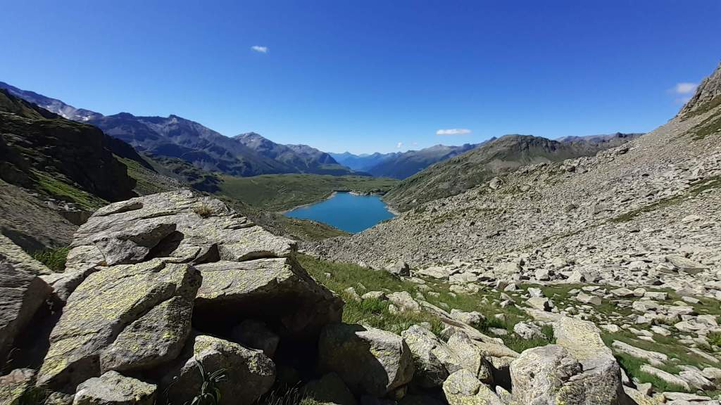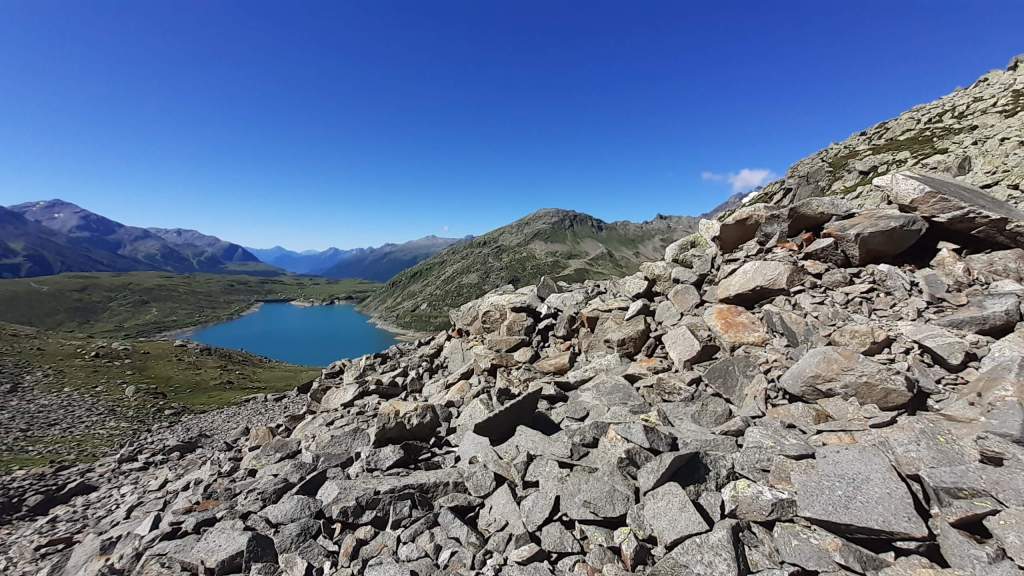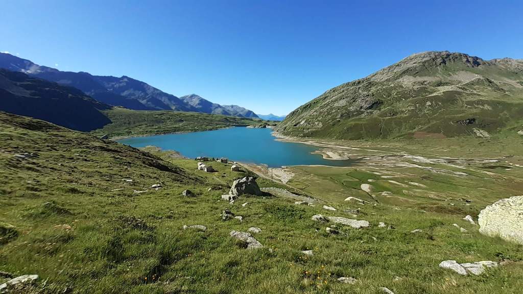 Quarta tappa : discesa al Lago Azzurro, al Lago Bergseeli, al Passo dello Spluga e ritorno a Montespluga