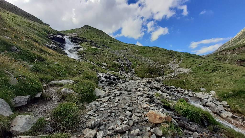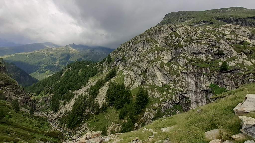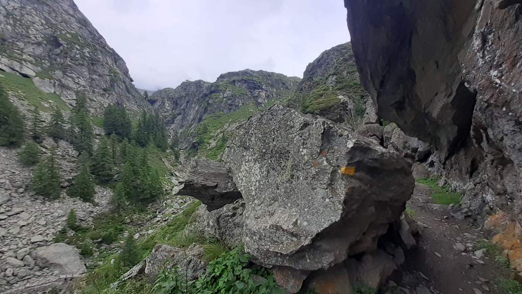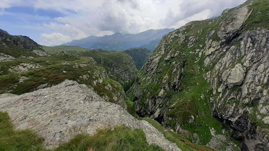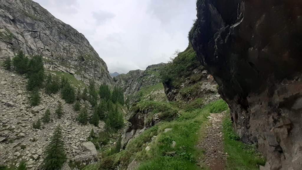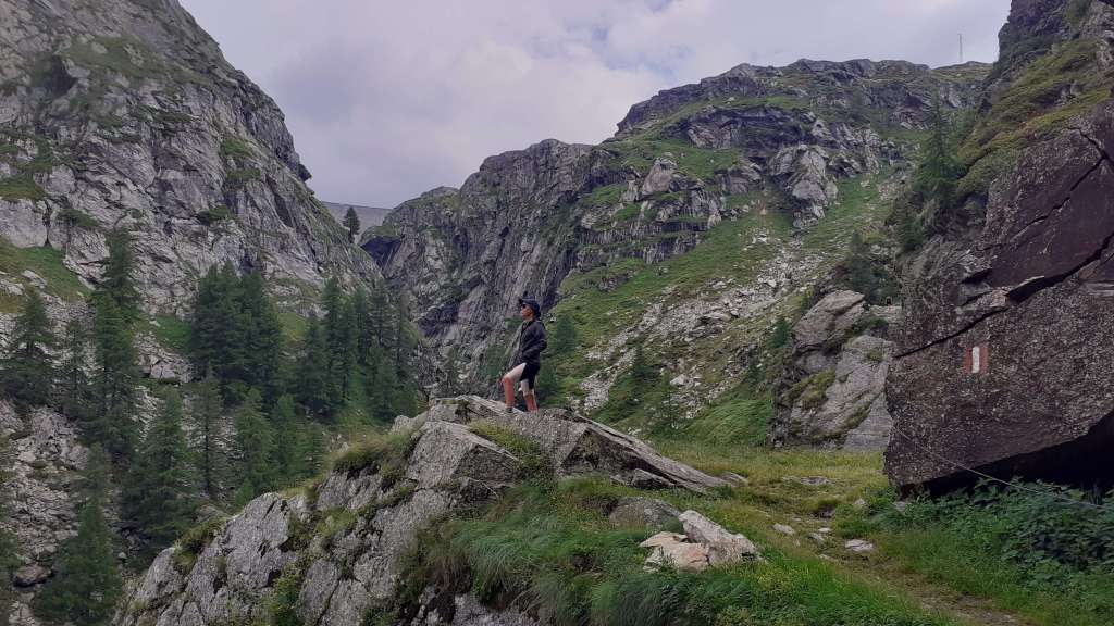 Stamattina il tempo non è molto bello, quindi organizziamo un percorso non particolarmente impegnativo ma interessante e suggestivo! Partiamo poco prima della Diga di Montespluga (1910 m) e raggiungiamo anche la seconda diga. Da qui, precisamente scendendo a sinistra (indicato da una targa in pietra) parte il Sentiero del Cardinello, un tratto molto suggestivo della Via Spluga, itinerario storico-naturalistico di grande interesse. Partendo da Montespluga, questo percorso prevede di scendere di quota all’ andata e di salire di quota al ritorno. Proseguiamo sul percorso che “costeggia” la Gola del Cardinello con le sue pareti di roccia verticali e solcate, molto in fondo, dal torrente Liro. Il percorso non è particolarmente impegnativo ma non è da sottovalutare, per i tratti ripidi e i passaggi su pietre lisce, bagnate e scivolose… e tutto il percorso è senza protezione. Raggiungiamo un piccolo ponte (1610 m) che oltrepassiamo e continuiamo all’ interno del bosco. Quando il panorama si apre, ci troviamo in una splendida vallata dove è posta la località “Soste”, un piccolo alpeggio dismesso (1540 m). L’ ambiente è davvero stupendo, a dir poco “bucolico”… con le sue due cascate che lo abbelliscono, la Cascata del Torrente Valle Schisarolo e la Cascata del Torrente Valle del Do, che confluiscono nel Liro. Qui ci concediamo una lunga pausa… panino, un po’ di sole e tanto relax! Torniamo poi sui nostri passi, ripercorrendo lo stesso itinerario dell’ andata ma adesso in salita fino a tornare alla seconda Diga di Montespluga (1910 m). Non è tardi, quindi decidiamo di fare un altro piccolo percorso. Attraversiamo la seconda diga e, salendo a sinistra, seguiamo le indicazioni per l’ Alpe Mede, incontrando un piccolo e grazioso laghetto effimero e ammirando un ampio e bellissimo panorama. (ATTENZIONE : il percorso presenta diversi tratti esposti, alcuni tratti franati e risulta pericoloso; c’ è anche un cartello, all’ inizio, che ne indica la pericolosità). Noi lo abbiamo percorso solo per una parte, superando qualche tratto franato ma, prima di arrivare all’ Alpe Mede, siamo tornati indietro a causa di un tratto franato, franoso e troppo pericoloso per procedere! Torniamo quindi alla Seconda e poi alla Prima Diga di Montespluga e, infine, al parcheggio. Un’ altra bellissima giornata lungo un percorso storico, culturale e naturalistico molto suggestivo che chiude un grandioso weekend!