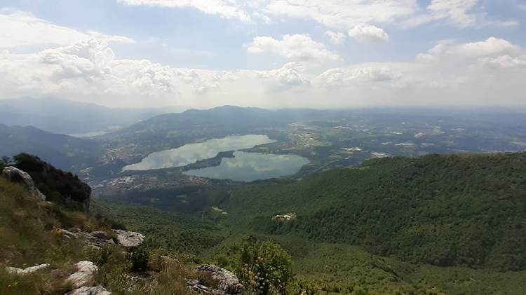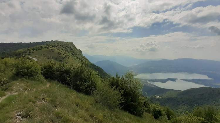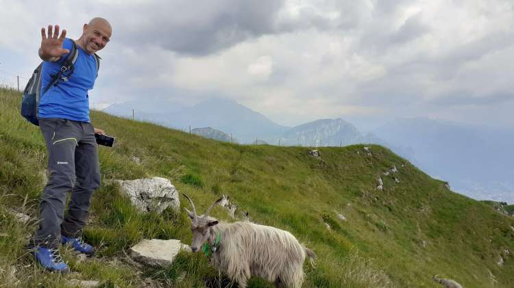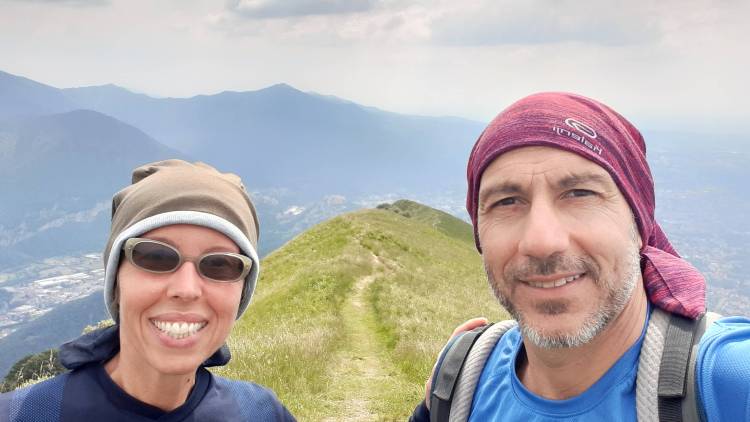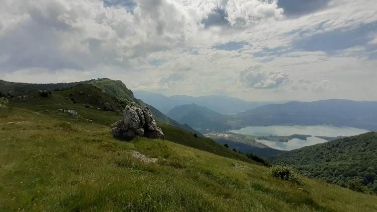 Inizia una nuova giornata in montagna!!! Direzione… Triangolo Lariano. Oggi torniamo in una zona che conosciamo già, molto bella e molto panoramica! Sveglia presto e… eccoci qui a parcheggiare l’ auto prima dell’ Alpe Carella (640 m). Cominciamo la prima parte del percorso che si sviluppa su asfalto, ma in vari punti prendiamo le “direttissime” (indicate quasi sempre dai segni colorati su roccia) che procedono all’ interno del bosco. Arriviamo al Rifugio S.E.C. (Rifugio Marisa Consigliere) (1070 m) e, dopo brevi soste a fotografare lo stupendo panorama che emerge dalle nuvole, continuiamo verso la prima vetta di oggi… il Monte Rai (1259 m). Qui il panorama si allarga e gli occhi si impegnano ad ammirare più meraviglie possibili… laghi, montagne, dorsali, pareti rocciose! Incrociamo anche una capretta che sembra ci voglia seguire!! Proseguiamo poi oltre la vetta e camminiamo in una bellissima e piccola “sella erbosa” dove la fotocamera del cellulare inizia a fare gli straordinari! Il panorama è sempre più bello… e questo nonostante le nuvole! Arriviamo così all’ attacco della cresta rocciosa che porta al Corno Birone… lo si intravede già da qui. La cresta non è particolarmente difficile, ma alcuni tratti sono piuttosto esposti e impervi… proseguiamo con attenzione e cautela. Raggiungiamo la bellissima croce, posta esattamente in vetta al Corno Birone (1116 m) dove la vista è superlativa! Straordinarie bellezze dappertutto : i Corni di Canzo, le Grigne e il Monte Resegone da una parte, mentre i Laghi Briantei si succedono dalla parte opposta. Cerchiamo una roccia dove mangiare con questo spettacolo a tenerci compagnia, ma si alza il vento a ricordarci che il percorso è ancora lungo… quindi… in cammino! Sul percorso ritroviamo anche la capretta di poco prima… quasta volta insieme a tutta la “famigliola!” Torniamo al Monte Rai (1259 m), al Rifugio S.E.C. (1070 m) e ci dirigiamo anche verso la vetta del Monte Cornizzolo (1241 m) con una bellissima e grande croce, distinguibile anche da lontano! Ci fermiamo qualche minuto a scattare le foto e poi decidiamo di raggiungere anche il Monte Pesora (1190 m), dalla parte opposta al Rifugio S.E.C. e collegato al Monte Cornizzolo da una bella cresta erbosa. Lo raggiungiamo… pausa barretta e… giù! La nostra previsione ottimistica di riuscire a scendere su una bella cresta erbosa fino alla strada asfaltata non risulta “esattamente da programma”! Infatti quasi subito la cresta erbosa e ampia si trasforma in un sentiero abbastanza ripido e su fondo terroso, dove bisogna stare attenti a non scivolare! Anche in questo tratto il panorama è molto generoso e le foto non mancano! Ed eccoci all’ attacco della strada asfaltata (ne abbiamo evitata un po’ più della metà rispetto all’ andata) e, dopo diversi tornanti, ci ritroviamo all’ Alpe Carella (640 m) e alla nostra auto… bellissima e soddisfacente giornata in un luogo sempre pieno di meravigliose sorprese e dai panorami incredibilmente splendidi!