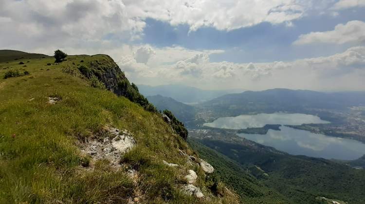 … e il panorama, tra le nuvole, ci accompagna anche in discesa.