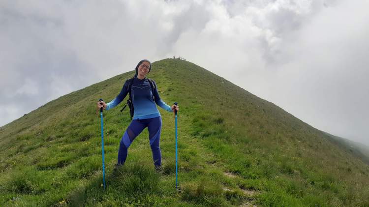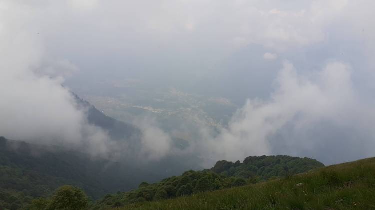 Oggi, dopo 2 mesi e mezzo di “interruzione”, finalmente RITORNO IN MONTAGNA! L’ emozione è immensa e, per ricominciare, scegliamo un percorso in Lombardia non molto impegnativo ma decisamente bello e interessante! La nostra destinazione è la Valle Intelvi, che conosciamo piuttosto bene. Di solito parcheggiamo al Rifugio Boffalora, ma oggi, complice il tempo non esattamente bellissimo, decidiamo di raggiungere in macchina il successivo Rifugio Venini (1576 m) e da qui… SI PARTE!! Percorriamo il sentiero militare, del quale rimangono le mura difensive, le trincee e alcuni resti di gallerie scavate nella roccia. Ci dirigiamo poi verso la prima delle 3 vette in programma oggi : il Monte di Tremezzo (1700 m) con la sua piccola e bellissima statua. Il cielo è coperto di nuvole e il panorama, di solito superlativo, non si esprime in tutta la sua bellezza… ma va bene lo stesso. Scendiamo e raggiungiamo l’ Alpe di Tremezzo (1600 m)… ruderi molto ben conservati di un vecchio alpeggio, che conferiscono una dose di fascino al luogo e, non so spiegarmi il motivo, ma qui le nuvole non stonano affatto con l’ ambiente! Proseguiamo fino al Monte Crocione (1641 m)… qui invece il panorama è praticamente assente e non possiamo godere della vista da quella che io chiamo “balconata su Bellagio e su tutto il Lago di Como”. Cerchiamo un posticino isolato dove mangiare e poi scendiamo ripercorrendo la stessa strada dell’ andata fino al Rifugio Venini (1576 m). Ma la giornata non è ancora finita! Quindi… in cammino! Saliamo sulla terza vetta di oggi : il Monte Galbiga (1698 m). Ci sono 2 possibilità per salire : seguire il sentiero ben visibile sulla sinistra o intraprendere la “direttissima” dietro al Rifugio Venini, un po’ più corta ma più ripida. Scegliamo la seconda e in poco siamo in vetta. La cima è meravigliosa… sembra un piccolo altare creato sopra le nuvole, con la sua grande croce, il suo leggìo, le sue “panche” in pietra sistemate “ad anfiteatro” … essere qui mi emoziona sempre tantissimo! Anche il sole decide di “fare visita” a questo incredibile luogo e la luce ci permette di ammirare meglio il luogo e… di scattare parecchie foto! Tranquillamente scendiamo giù, sempre per la “direttissima” e torniamo alla macchina, in prossimità del Rifugio Venini (1576 m). Ma ancora non finisce qui… ci concediamo ben 3 “soste fotografiche” all’ Alpe di Lenno, nei pressi del Rifugio Boffalora e, infine, vicino all’ Alpe di Colonno. Le ultime foto della giornata, mentre il vento si alza e le nuvole accennano a trasformarsi in “nuvoloni” grigi!… ma le prime gocce di acqua iniziano solamente quando siamo in macchina da un po’, diretti ormai già a casa! Giornata bellissima e soddisfacente, nonostante il cielo coperto da nuvole… perché l’ importante è ESSERE TORNATA IN MONTAGNA!!!