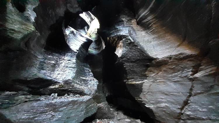 Oggi ho pensato a una giornata diversa e molto… molto particolare! La nostra destinazione sono gli Orridi di Uriezzo e le Marmitte dei Giganti… precisamente “un tuffo nella preistoria”! Arriviamo a Baceno e parcheggiamo nei pressi della bellissima Chiesa di San Gaudenzio (655 m). Iniziamo il nostro percorso passando sotto il piccolo arco a sinistra della chiesa e seguiamo le indicazioni (sempre molto chiare) per l’ Orrido Sud. Arriviamo così all’ ingresso dell’ Orrido Sud (610 m), che appare subito grandioso e non solo per le dimensioni. Ci affacciamo per prima cosa a destra e ammiriamo le prime cascate di acqua; poi continuiamo verso la “prima grotta” piuttosto illuminata; a questa ne seguono altre e ad ognuna la luce diventa sempre più debole… aumentando la sensazione di trovarsi in un posto “fuori dalla realtà”… un deciso salto indietro nel tempo! Prestiamo attenzione alle pietre scivolose, mentre ammiriamo le pareti verticali, le “nicchie” scavate nella roccia e le fessure che si “abbandonano” alla luce che riesce a penetrare… una meraviglia! Lo percorriamo fino in fondo e poi torniamo all’ ingresso… direzione Marmitte dei Giganti di Maiesso (550 m)(sempre indicate). In poco siamo davanti ad un altro spettacolo della natura : la potenza dell’ acqua, della quale se ne avverte l’ assordante rumore, ha scavato la roccia, scolpendola fino a farle assumere una forma unica… cunette di ‘finto marmo bianco’ tra i vortici di acqua, che riflettono la luce del sole. Rimaniamo qui a mangiare, su uno dei punti più alti che ci regalano così un panorama mozzafiato. Poi torniamo all’ ingresso dell’ Orrido Sud, lo superiamo e ci dirigiamo verso gli ‘altri orridi’ (anch’ essi ben segnalati). Una piccola sosta al Ponte di Balmasurda (626 m) con vista sul suo orrido e poi raggiungiamo l’ Orrido Nord Est (660 m), alla sinistra della lunga strada sterrata. E’ più piccolo del primo, ma è molto caratteristico. Decidiamo poi di raggiungere anche l’ Orrido Ovest (680 m) che prevede il passaggio su un sentiero esposto attrezzato con una fune d’ acciaio. Questo orrido è ancora più piccolo dei primi due ma suggestivo… termina con una piccola e divertente “scala dai pioli di ferro”. Usciti da qui seguiamo per la ‘Scalinata ad Zanin’ (780 m al termine) che “sbuca” esattamente sulla strada asfaltata che viene su da Baceno e va verso Premia. Piccola sosta in alto e poi… si torna giù! Grazie a qualche “piccola scorciatoia”, che però non varia di molto il percorso fatto all’ andata, torniamo alla Chiesa di San Gaudenzio a Baceno… entusiasti e soddisfatti di questo incredibile ‘tuffo nella preistoria’ all’ interno di un vero e proprio ‘parco glaciale’.
