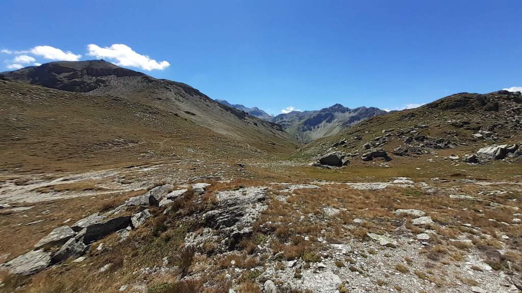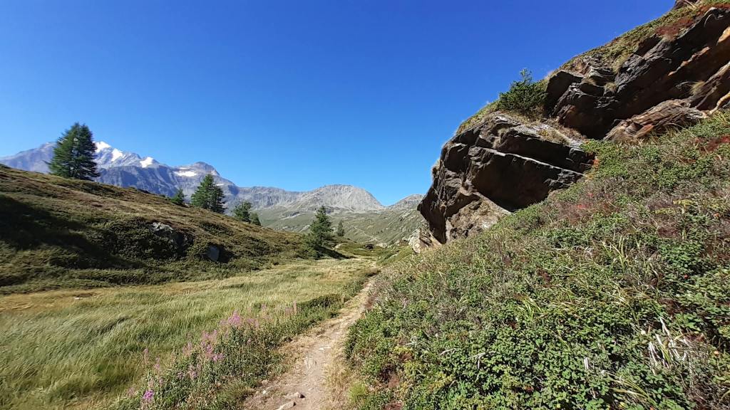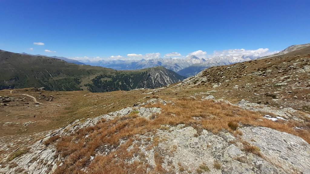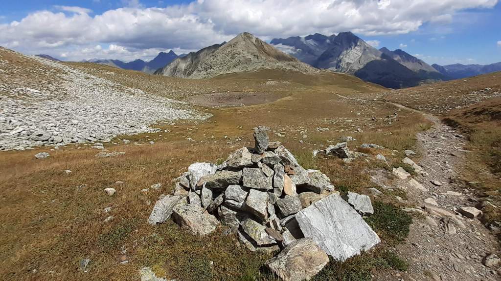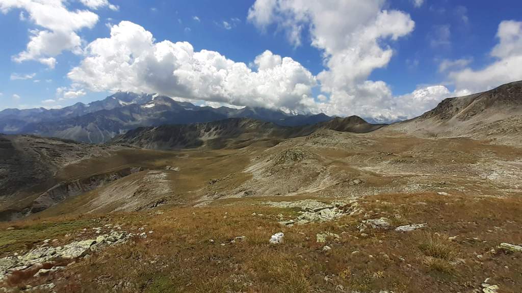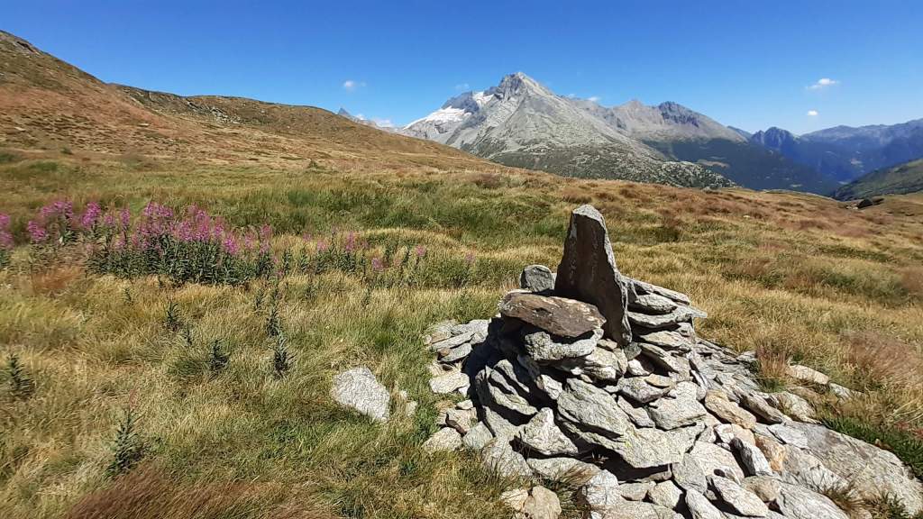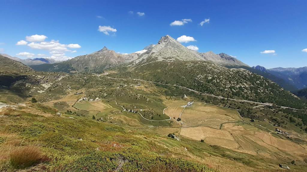 Stamattina partiamo per un nuovo percorso; scegliamo un percorso un po’ lungo ma non particolarmente impegnativo… salita al Bistinepass. Partiamo dal Passo del Sempione (2005 m) e, prima di arrivare a Hopsche, prendiamo a sinistra e ci dirigiamo verso Gampisch e Niederalp. Nei pressi di un piccolo alpeggio prima di Gampisch saliamo a destra andando ad intercettare il lungo traverso marcato e visibile già dal Passo del Sempione. Lo percorriamo tutto e raggiungiamo una immensa e bellissima vallata che attraversiamo, accompagnati da splendide montagne. Un ultimo strappo un po’ più ripido ed eccoci al Bistinepass (2415 m). E’ un passo molto ampio e vario… erba, roccia, pietre, grossi massi, un monumento e anche un piccolo laghetto (in carenza di acqua!). Oggi ci concediamo una pausa pranzo e relax piuttosto lunga e poi iniziamo a scendere, lungo lo stesso percorso della salita che ci riporta al Passo del Sempione (2005 m). Un’ altra bellissima giornata in montagna… con panorami stupendi… lungo un percorso tranquillo… e anche tanta pace, serenità e silenzio.
