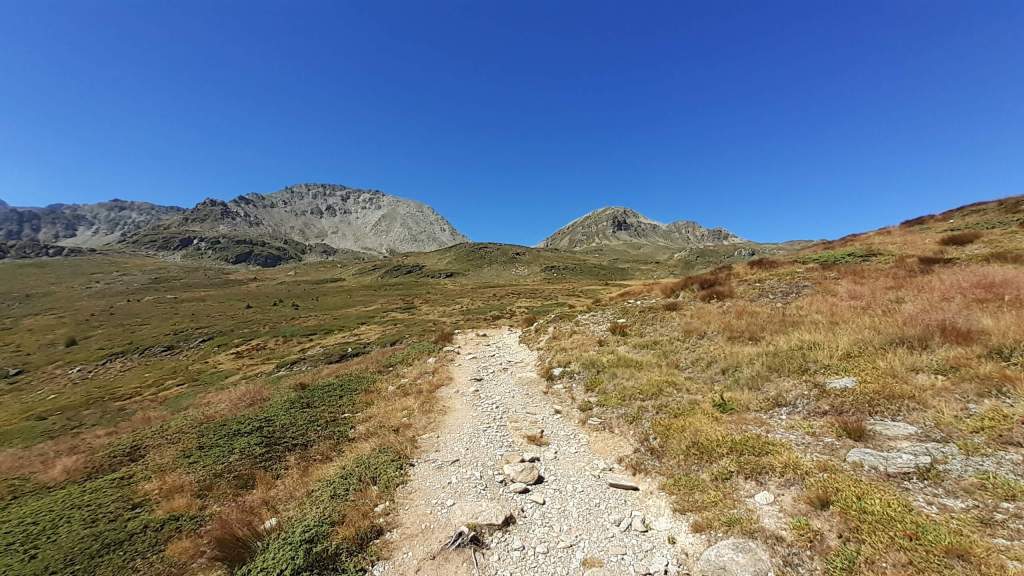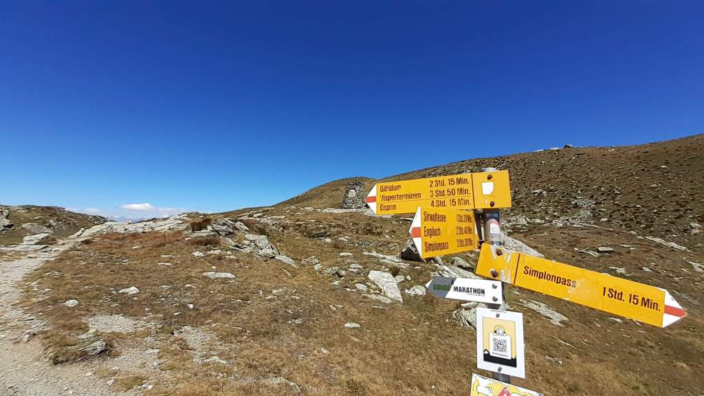 ALTITUDINE DI PARTENZA 2005 m (Passo del Sempione) ALTITUDINE MASSIMA 2415 m (Bistinepass) DISLIVELLO 600 m (solo in salita e contando le perdite di quota) DIFFICOLTA’ facile (media per la lunghezza) LUNGHEZZA DEL PERCORSO 15 km circa (tenete presente che i pedometri “perdono un po’” in salita e in discesa; io aggiungo il 10% circa al conteggio finale)